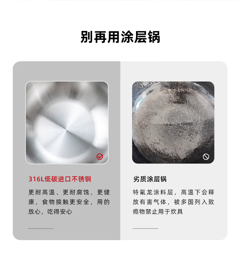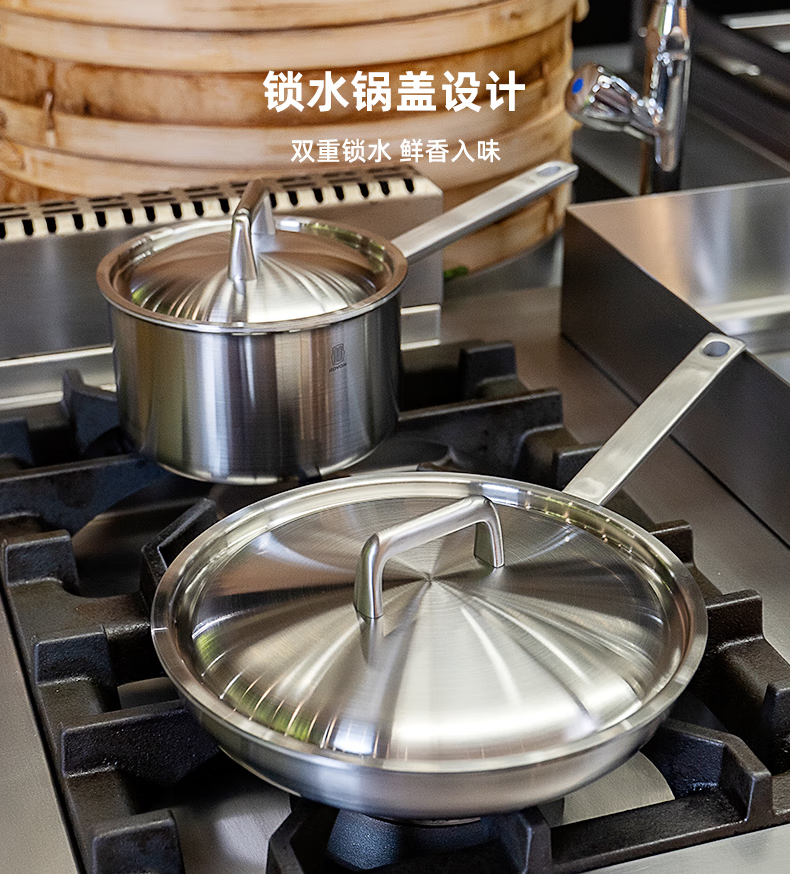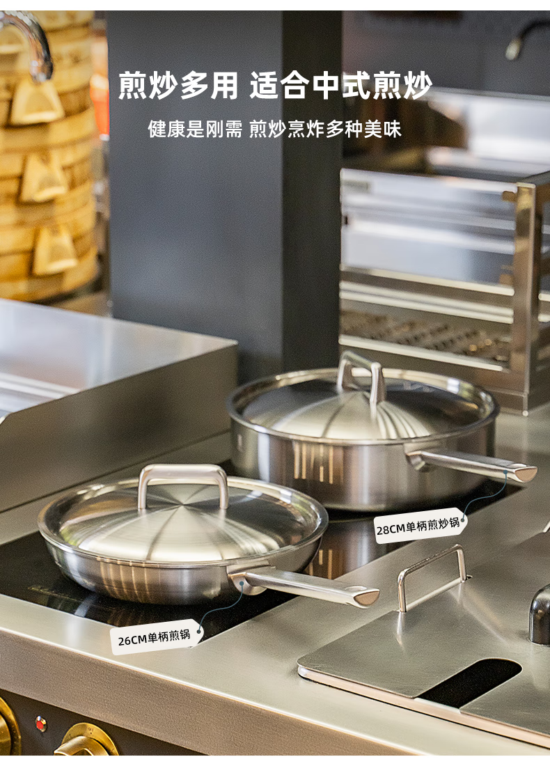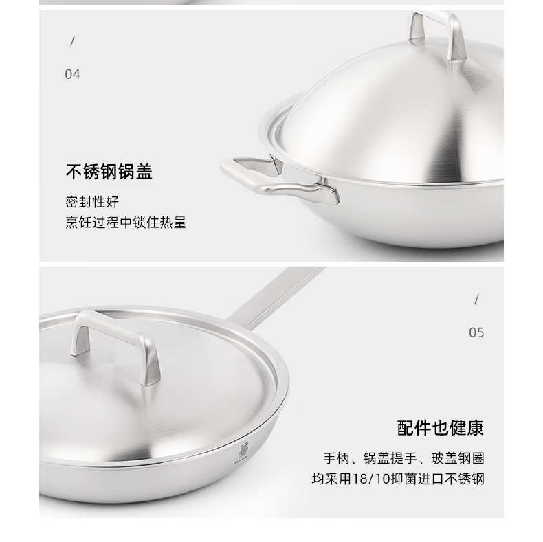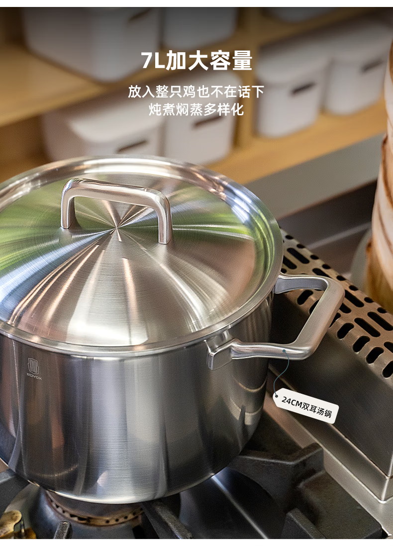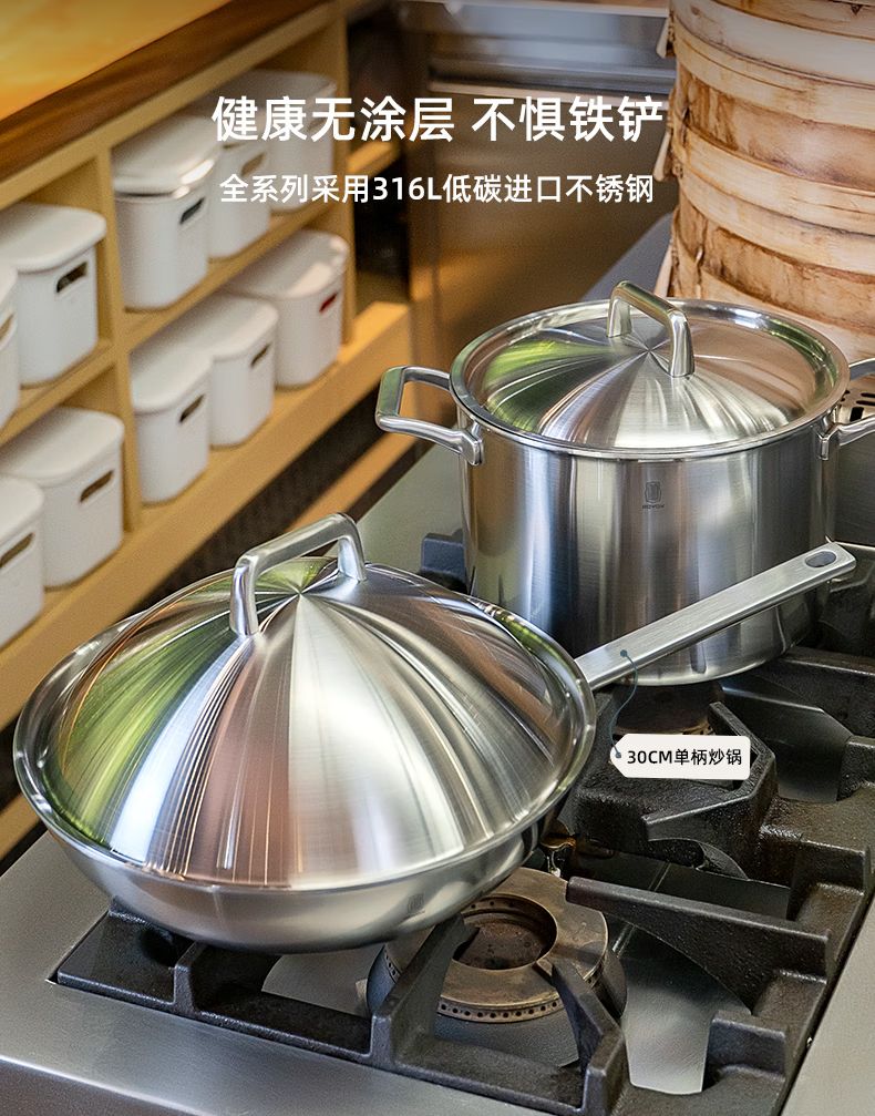 Ledes (ROYDX) Ledes 316L stainless steel wok, thickened and less oily smoke, household wok, uncoated, multifunctional, gas induction, 24cm double-ear soup pot, single piece