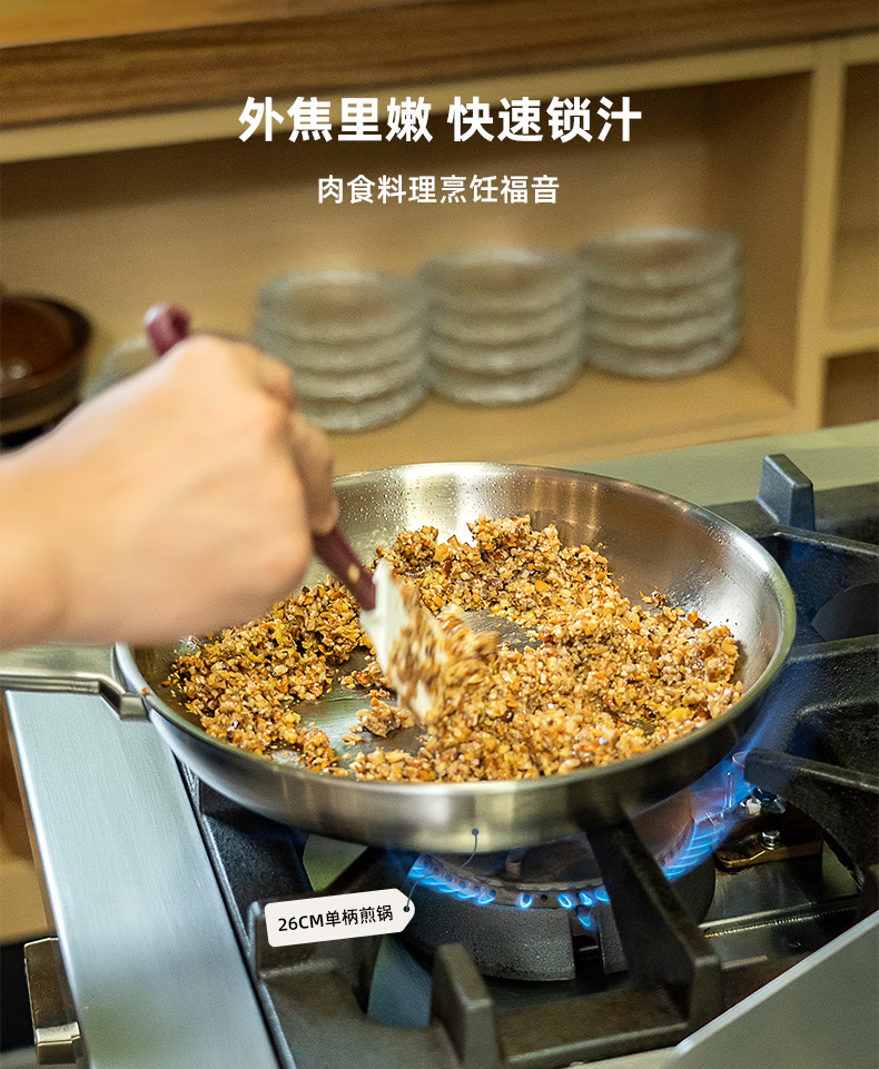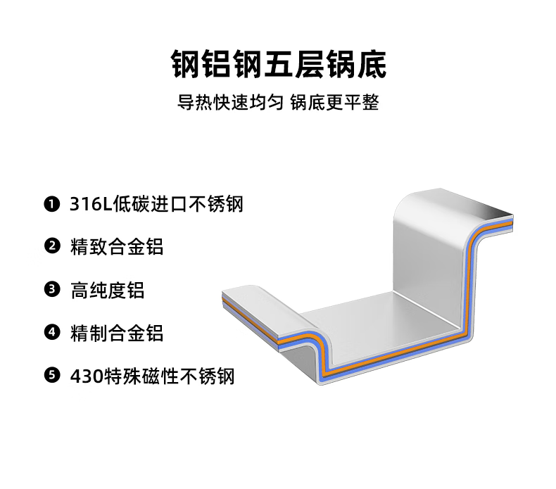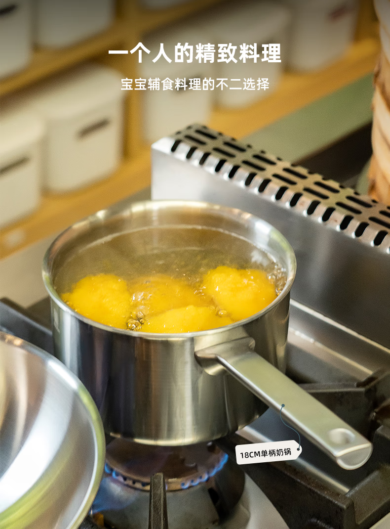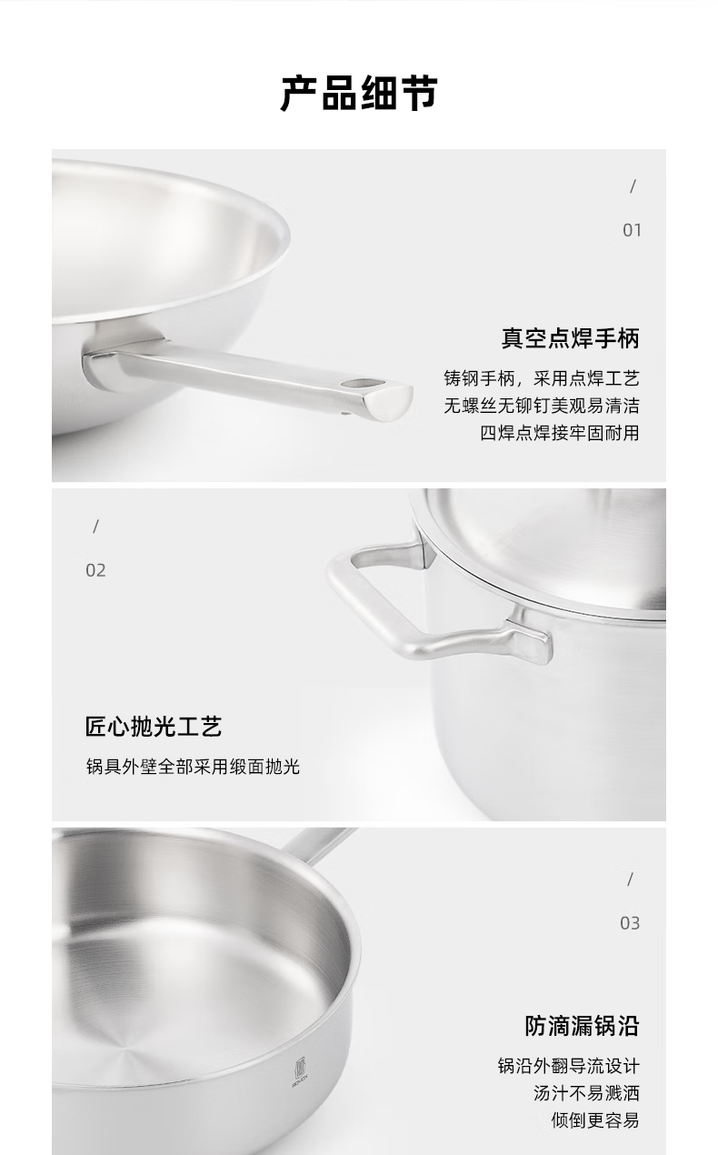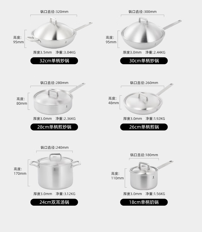 Ledes (ROYDX) Ledes 316L stainless steel wok, thickened and less oily smoke, household wok, uncoated, multifunctional, gas induction, 24cm double-ear soup pot, single piece