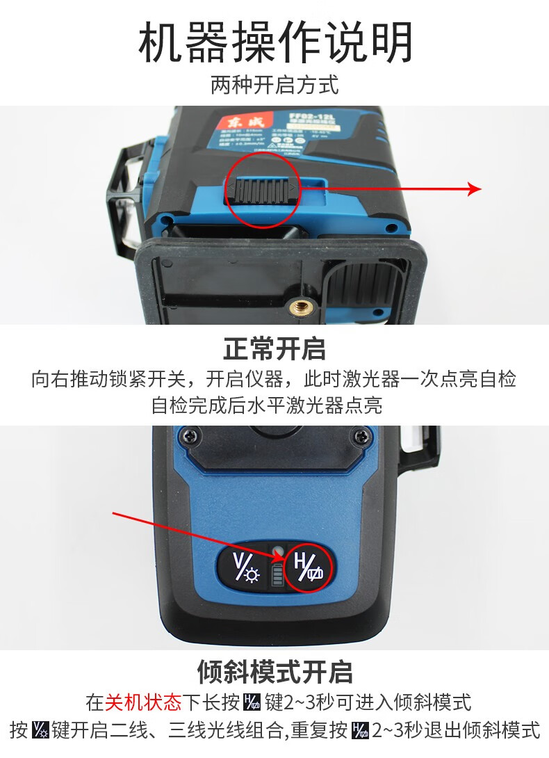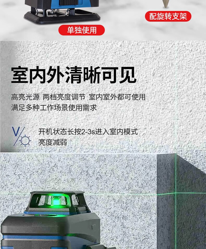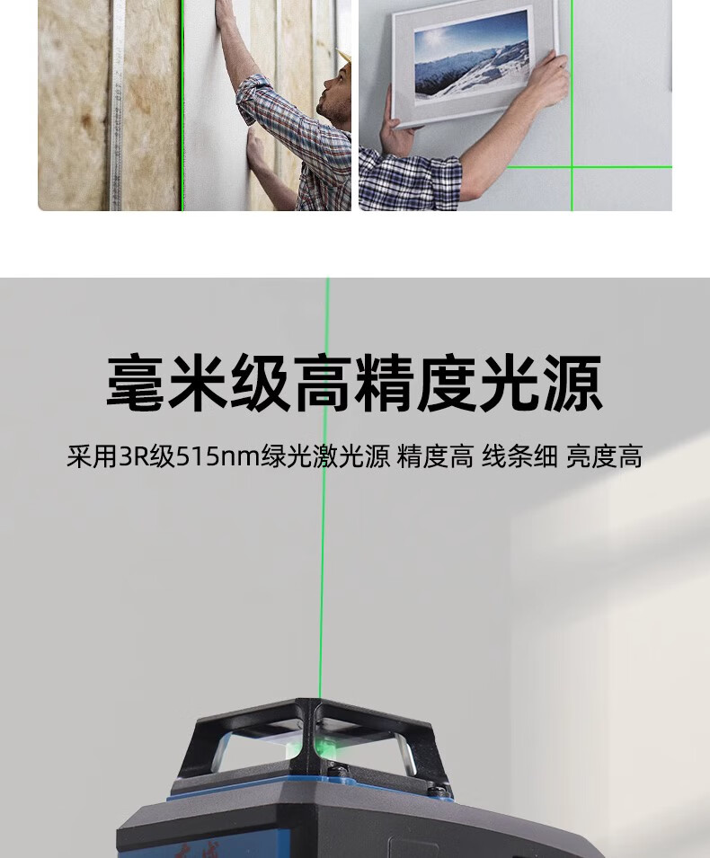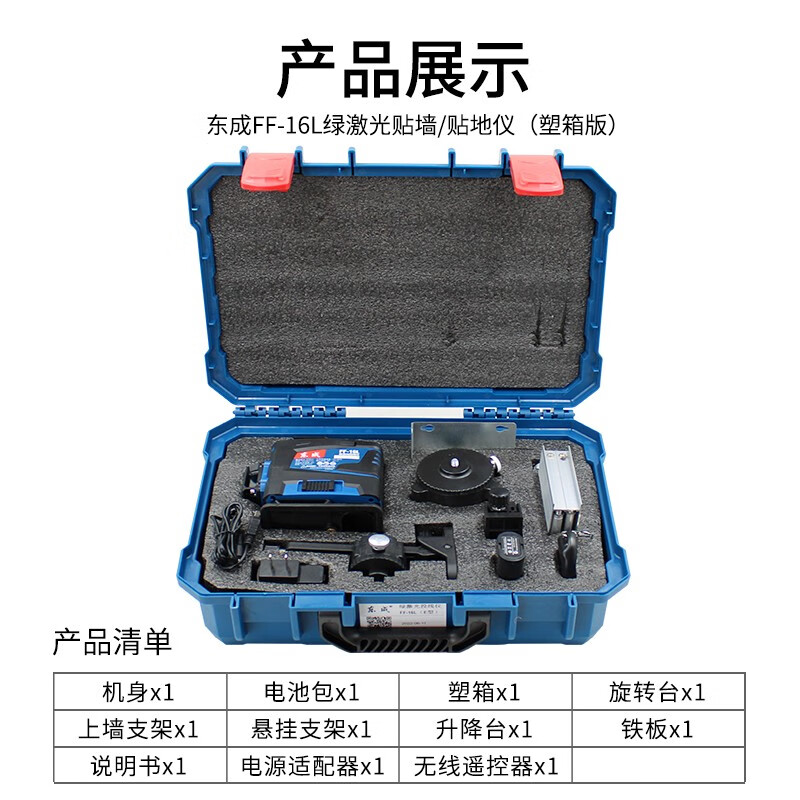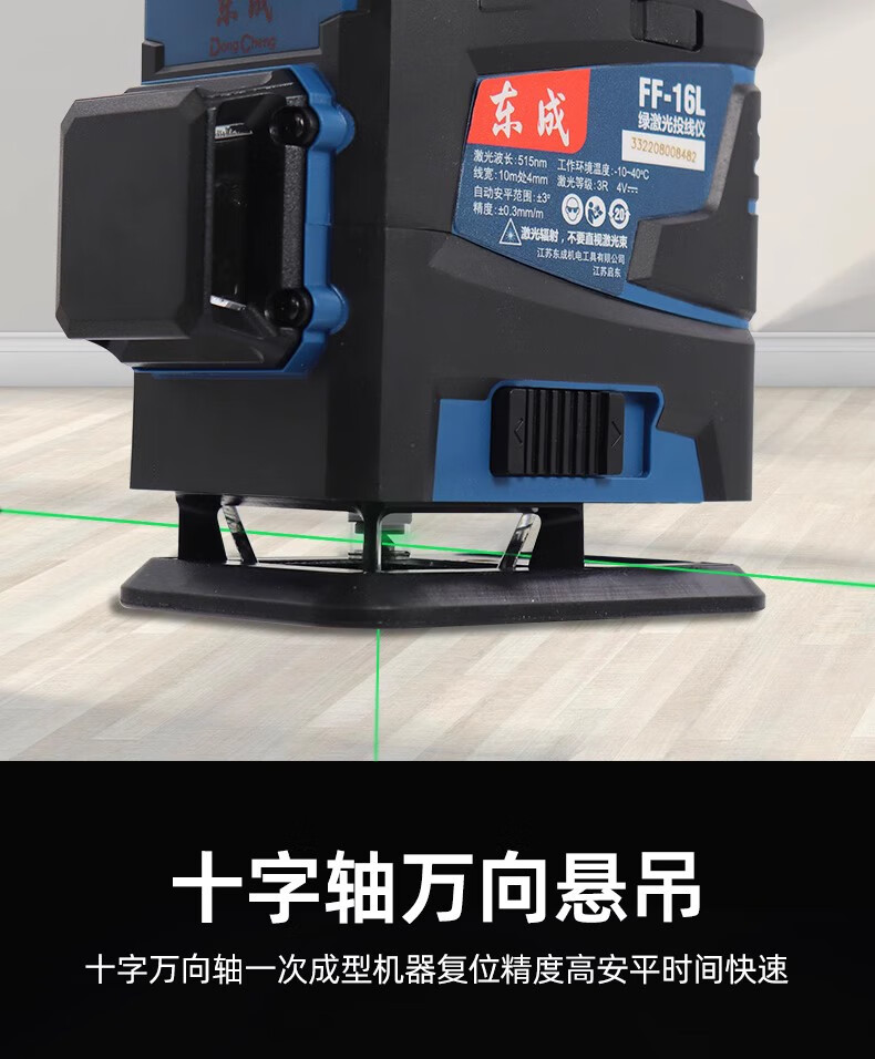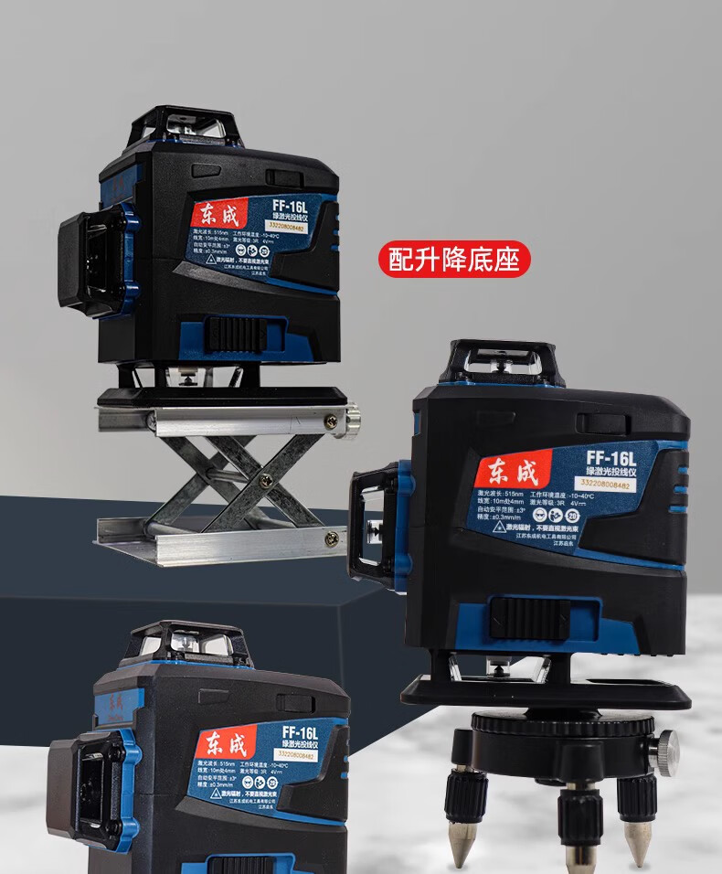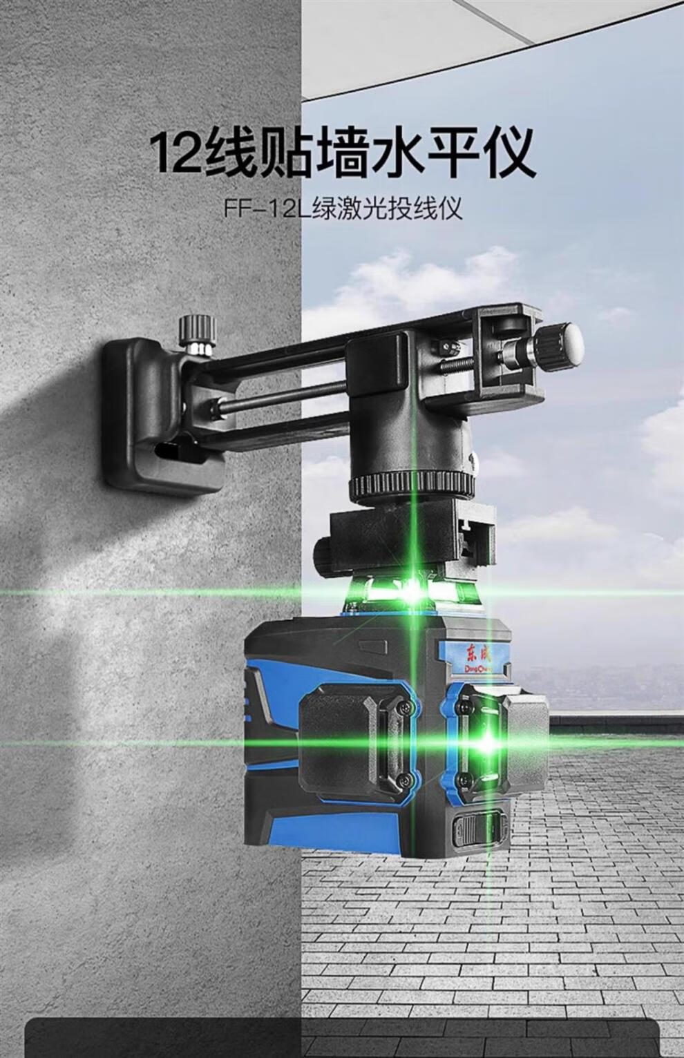 Dongcheng 12-line 16-line green light level meter wall-mounted and floor-mounted high-precision strong light thin line laser level meter Dongcheng lower level 12 green light_dual battery + external charging line_
