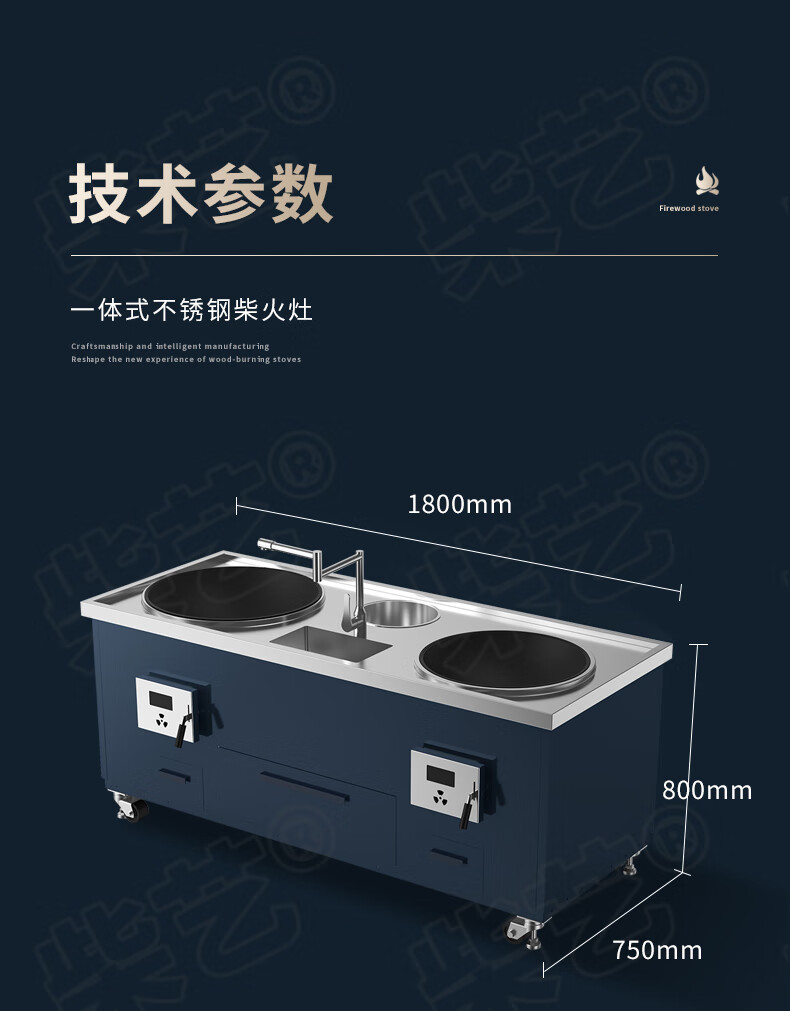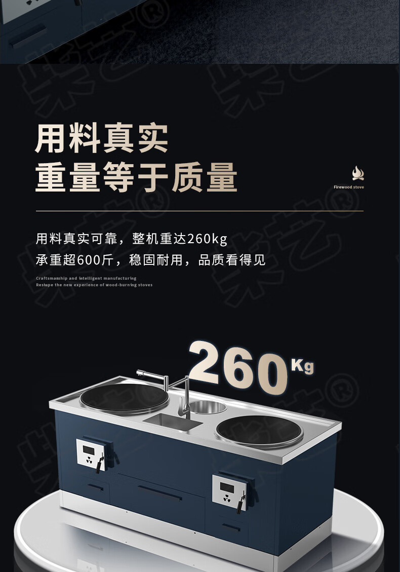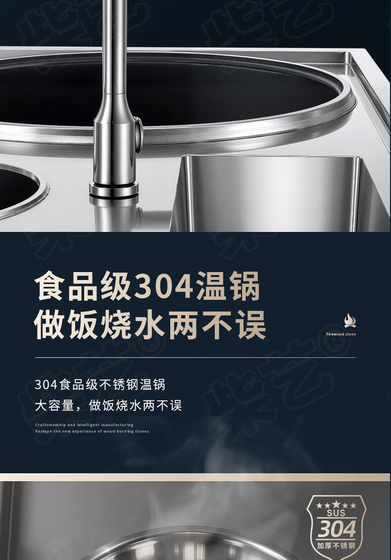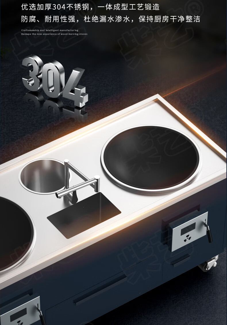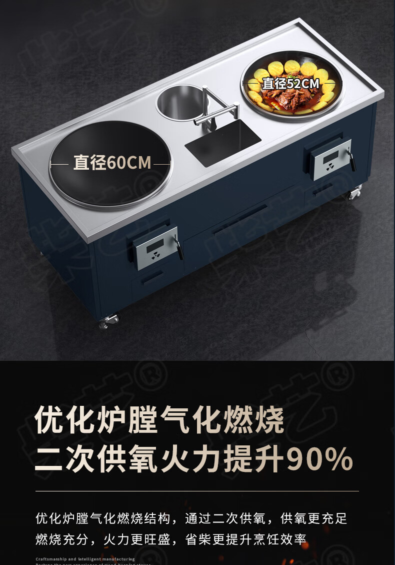 Firewood smokeless gasification firewood stove fierce fire stove removable 304 stainless steel farmhouse new rural villa new large pot stove range hood range hood earth stove smoke stove combination smoke stove combination 1.8m firewood stove + 1.8m 2000W hood