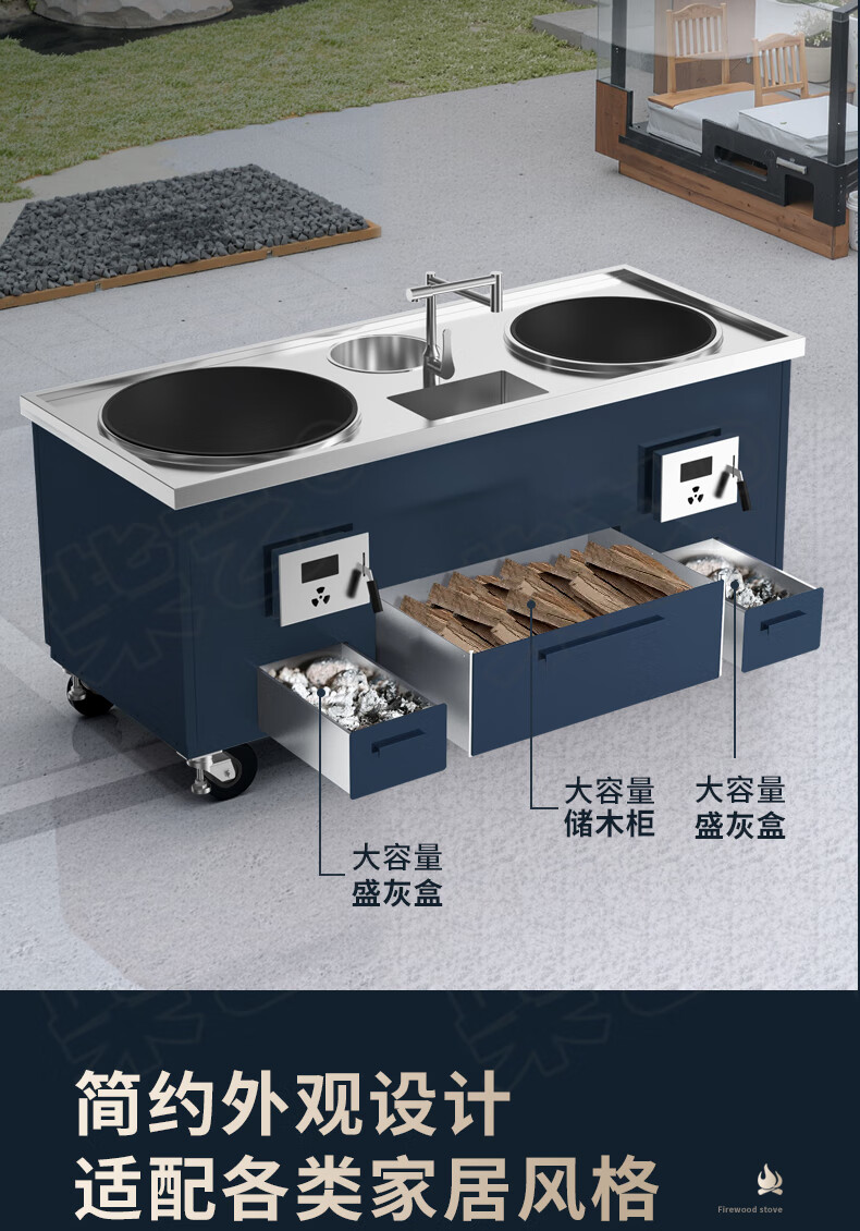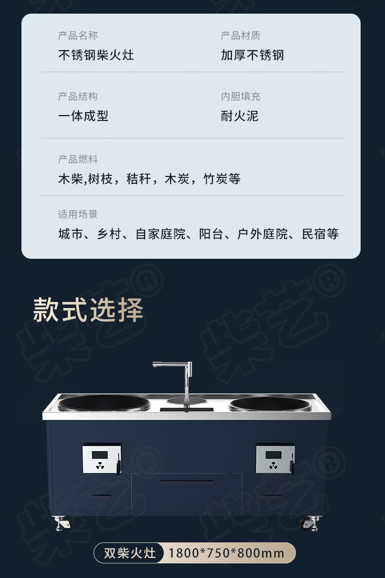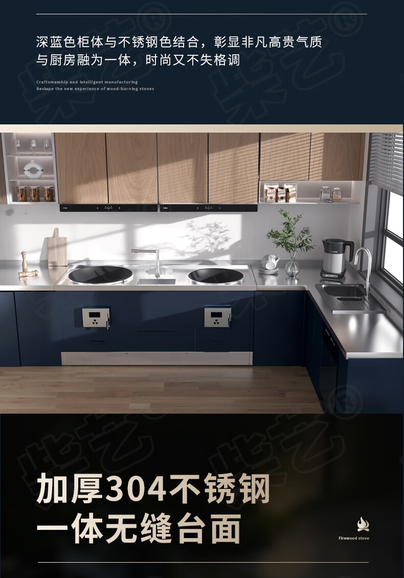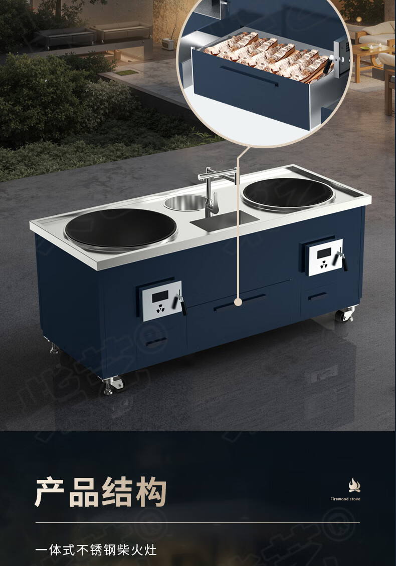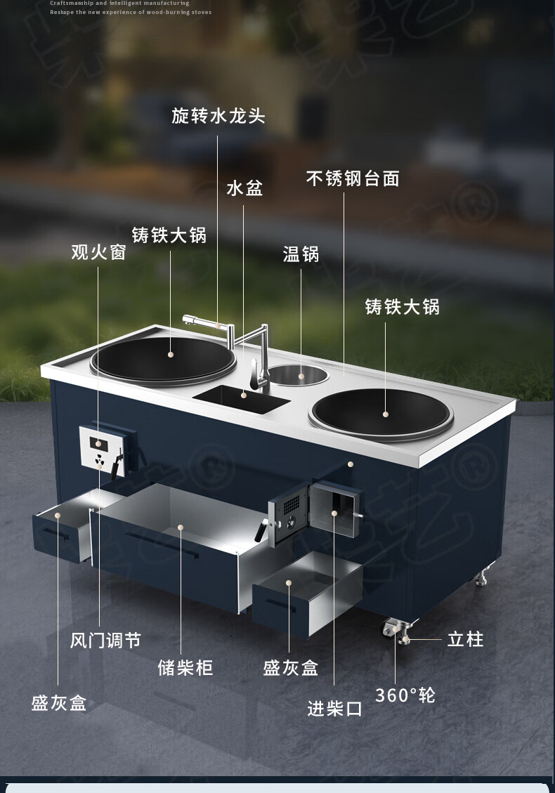 Firewood smokeless gasification firewood stove fierce fire stove removable 304 stainless steel farmhouse new rural villa new large pot stove range hood range hood earth stove smoke stove combination smoke stove combination 1.8m firewood stove + 1.8m 2000W hood