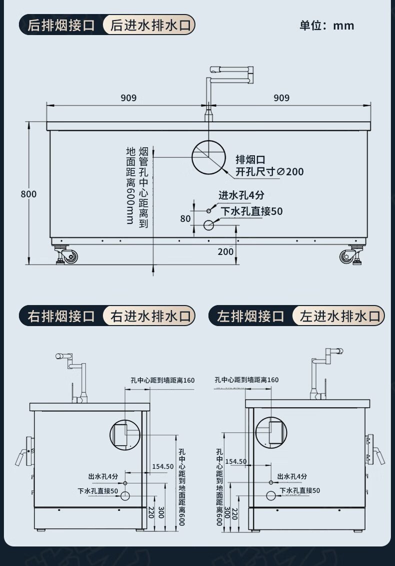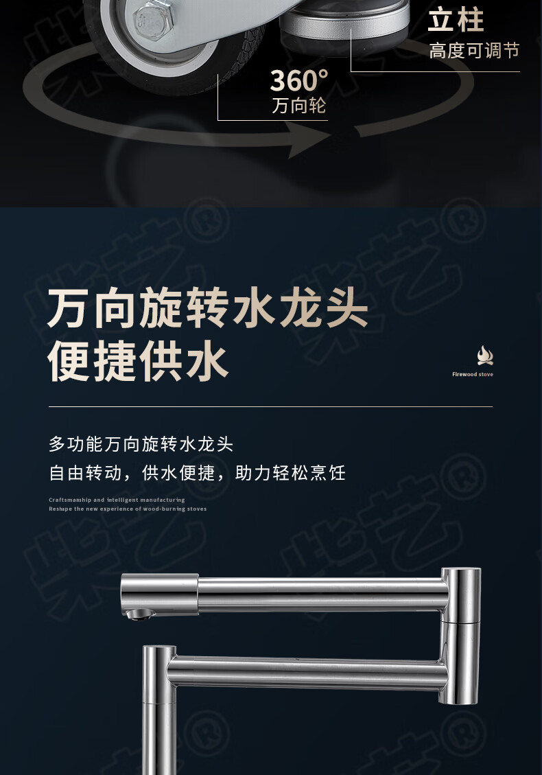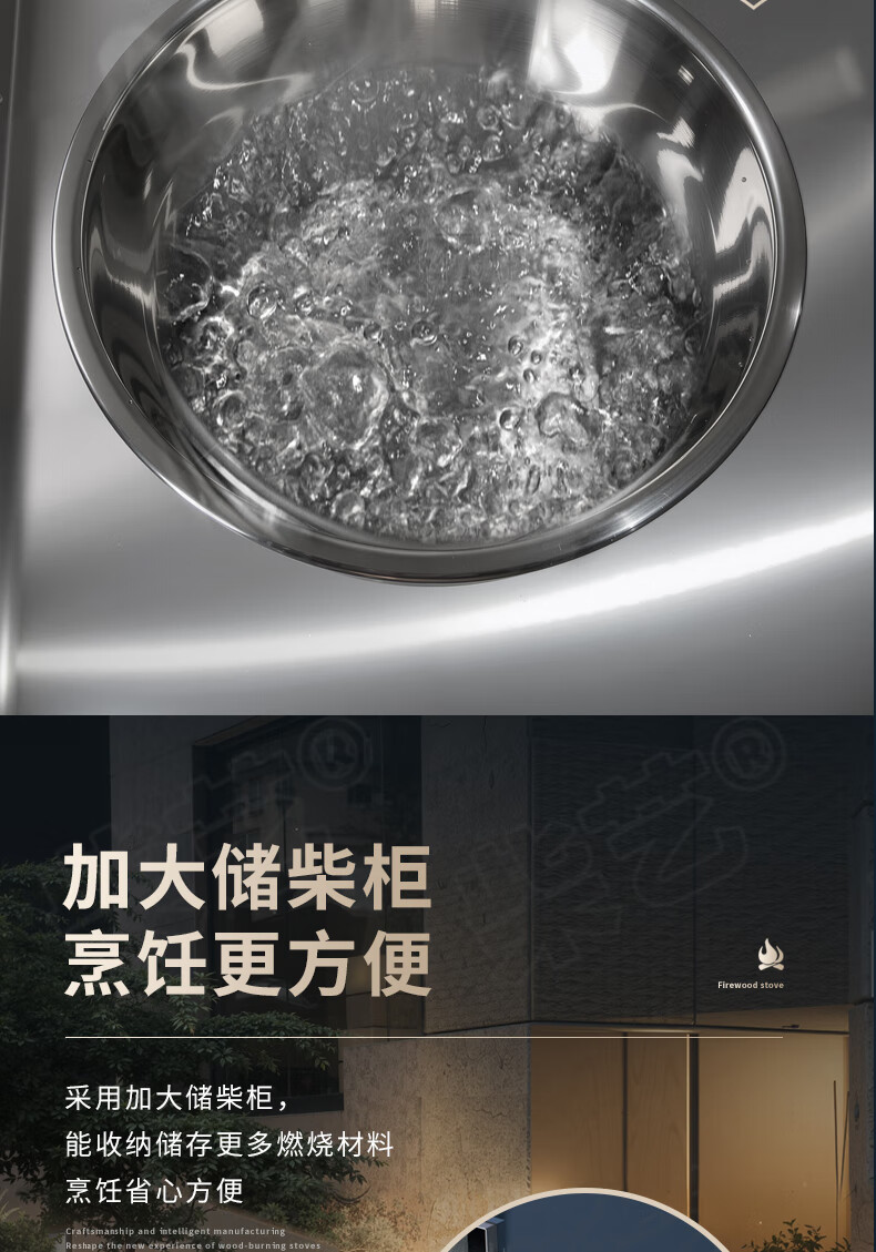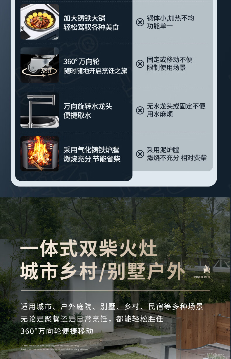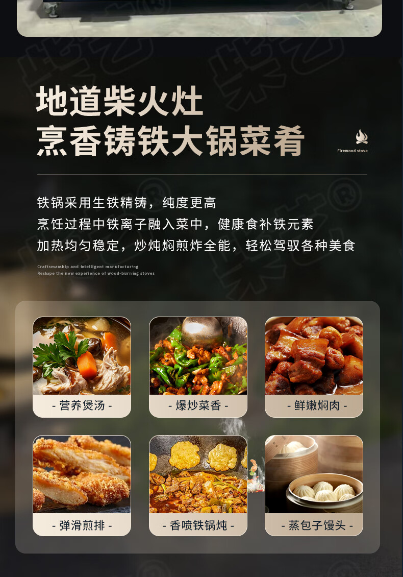 Firewood smokeless gasification firewood stove fierce fire stove removable 304 stainless steel farmhouse new rural villa new large pot stove range hood range hood earth stove smoke stove combination smoke stove combination 1.8m firewood stove + 1.8m 2000W hood