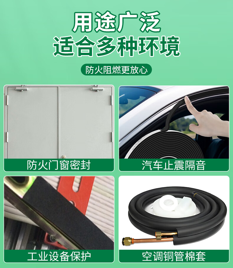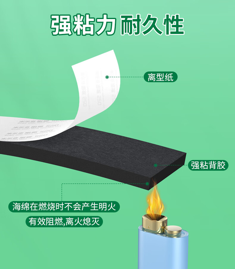 High temperature resistant seal strip eva fire retardant heat insulation cotton gasket single-sided tape distribution box fire door fire door seal strip industrial foam foam board sponge strip self-adhesive strip Upgraded model - 10mm thick black 30mm wide * 3m long