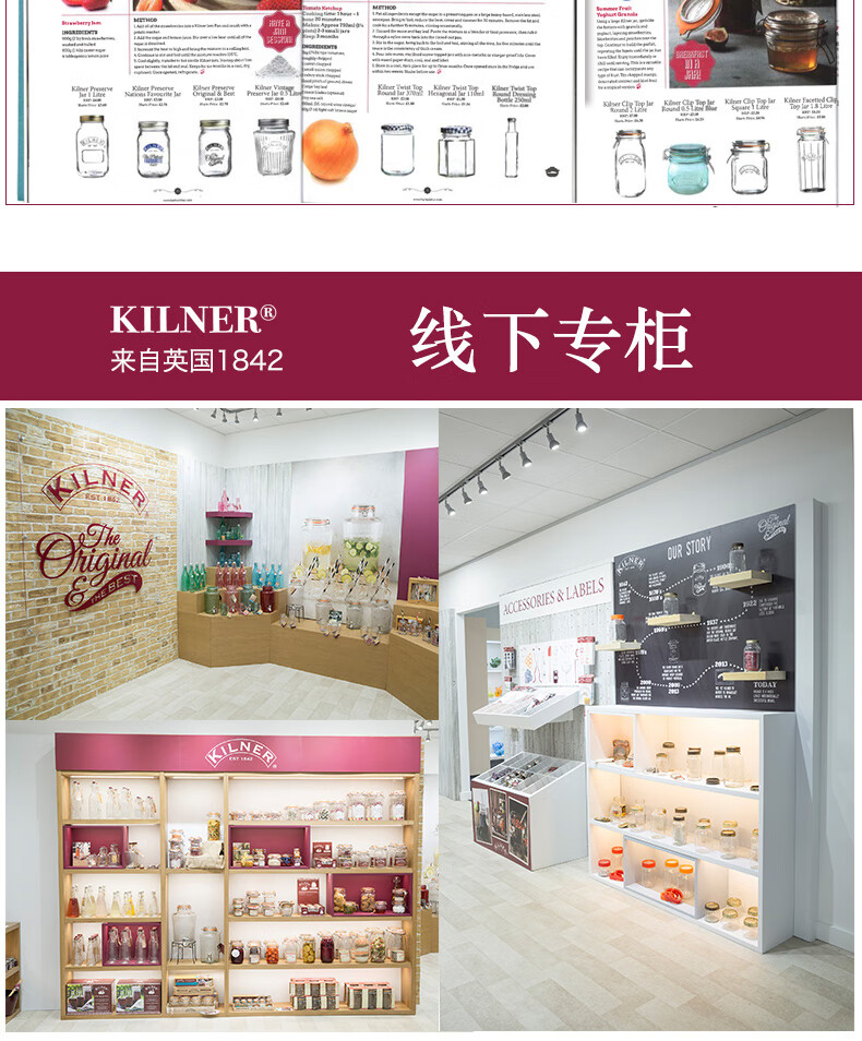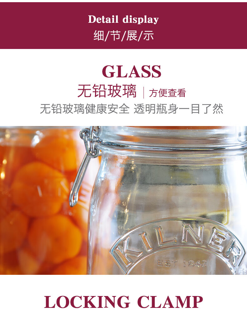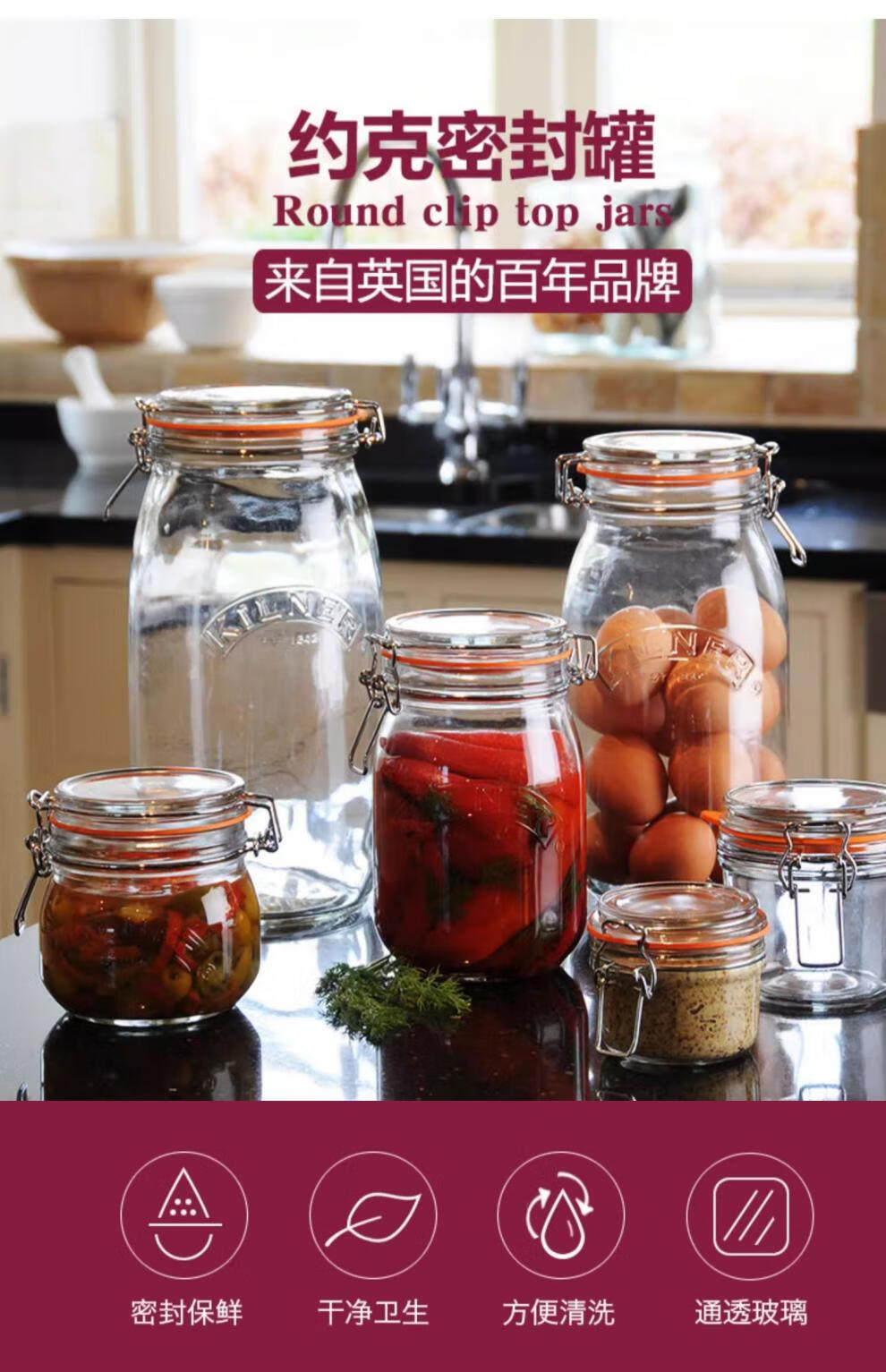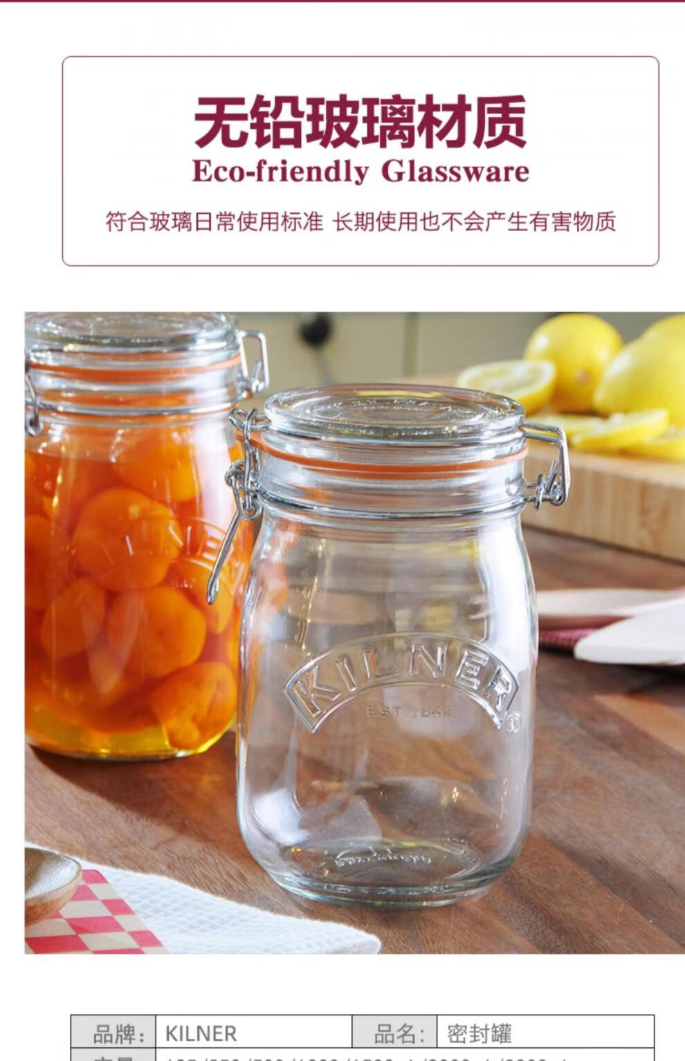 Food grade pickled vegetables honey lemon passion fruit green plum wine jar British Kilner seal Top series square sealed jar-1000ml
