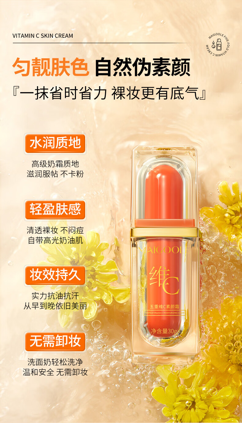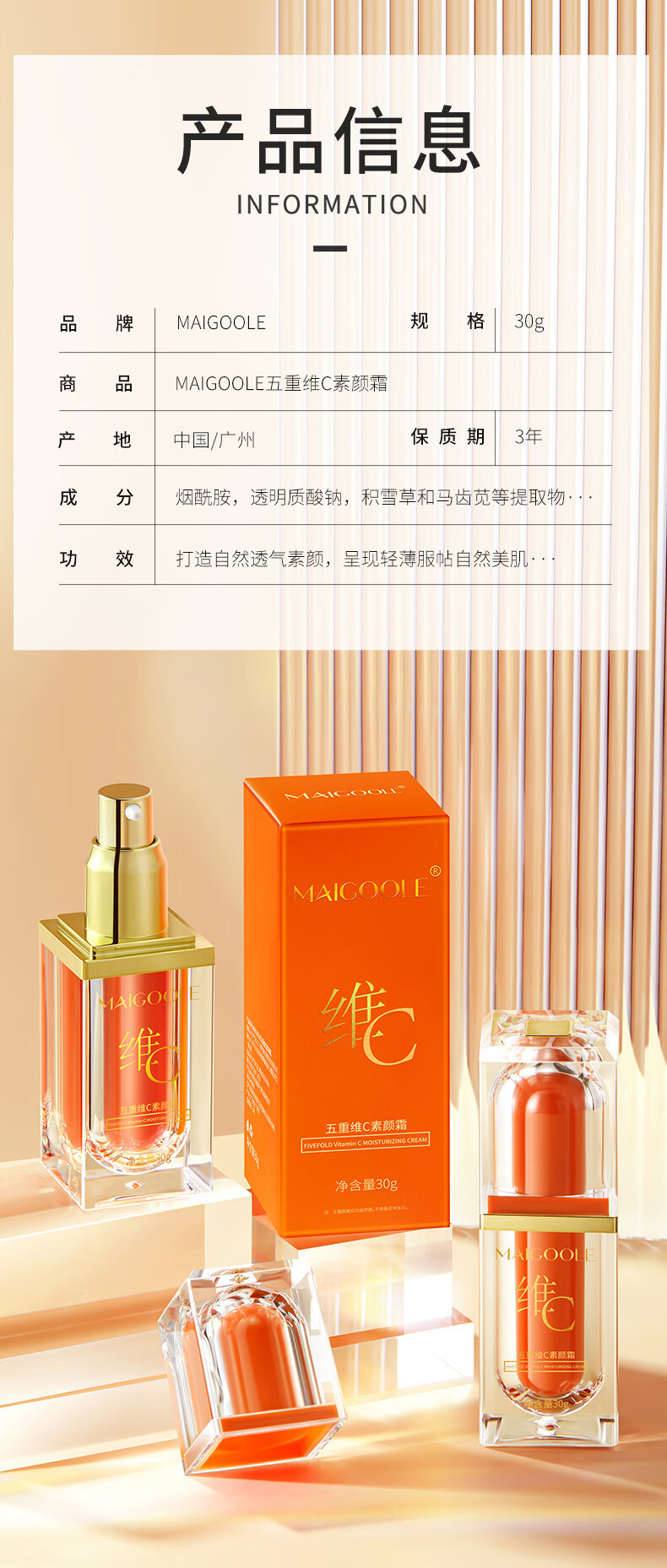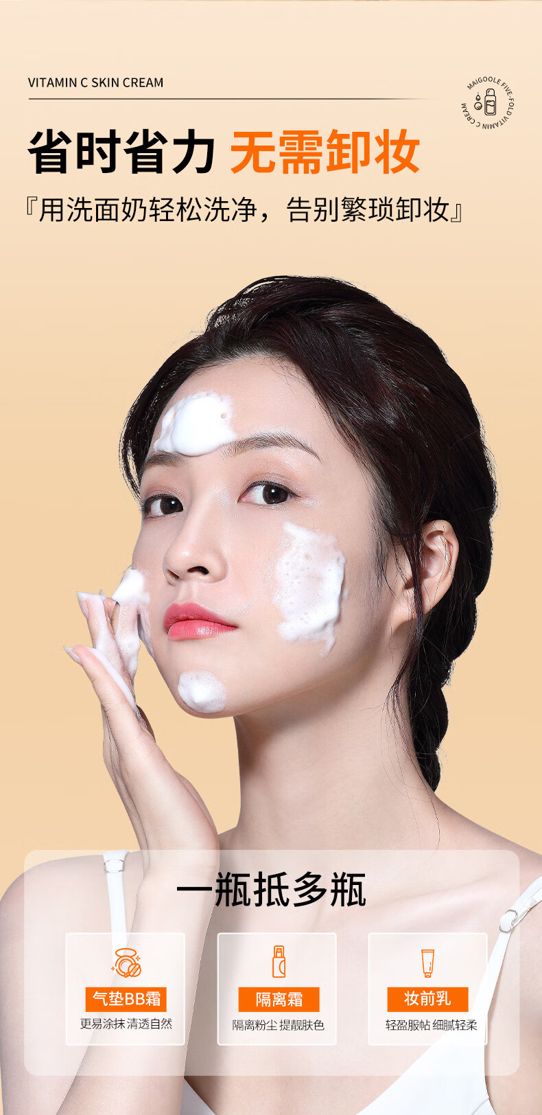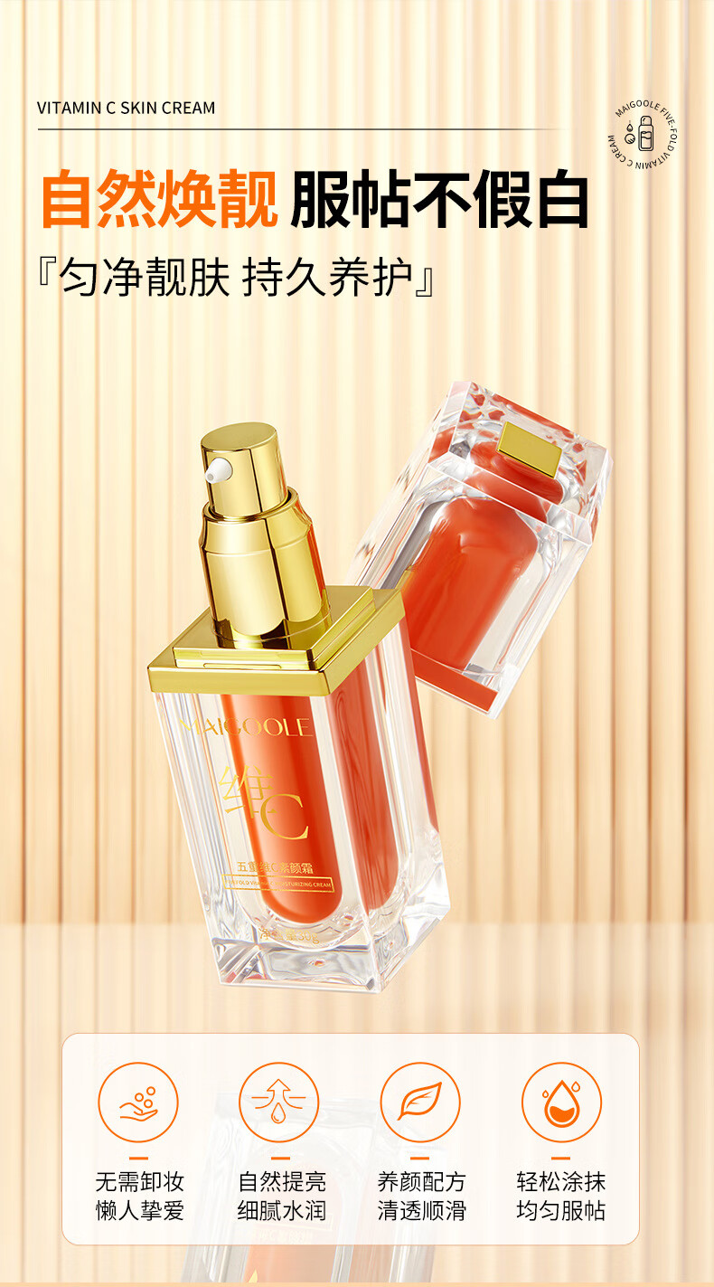 Five-fold Vitamin C Cream to brighten skin, moisturize the skin, naturally fit, light-weight, no-removal cream, Five-fold Vitamin C Cream*3, 3 bottles
