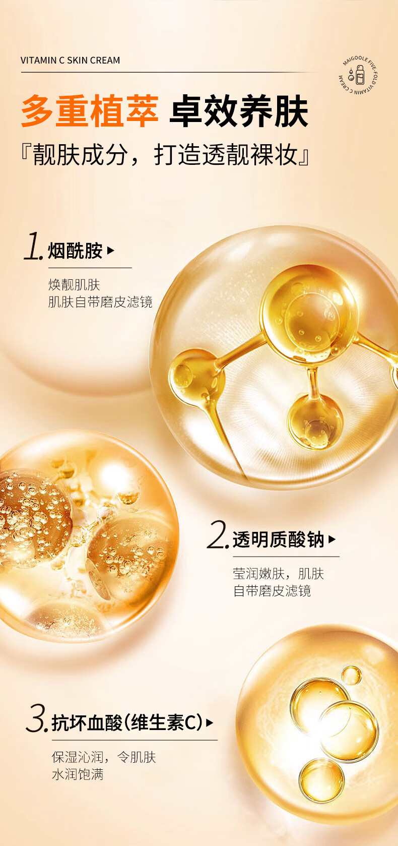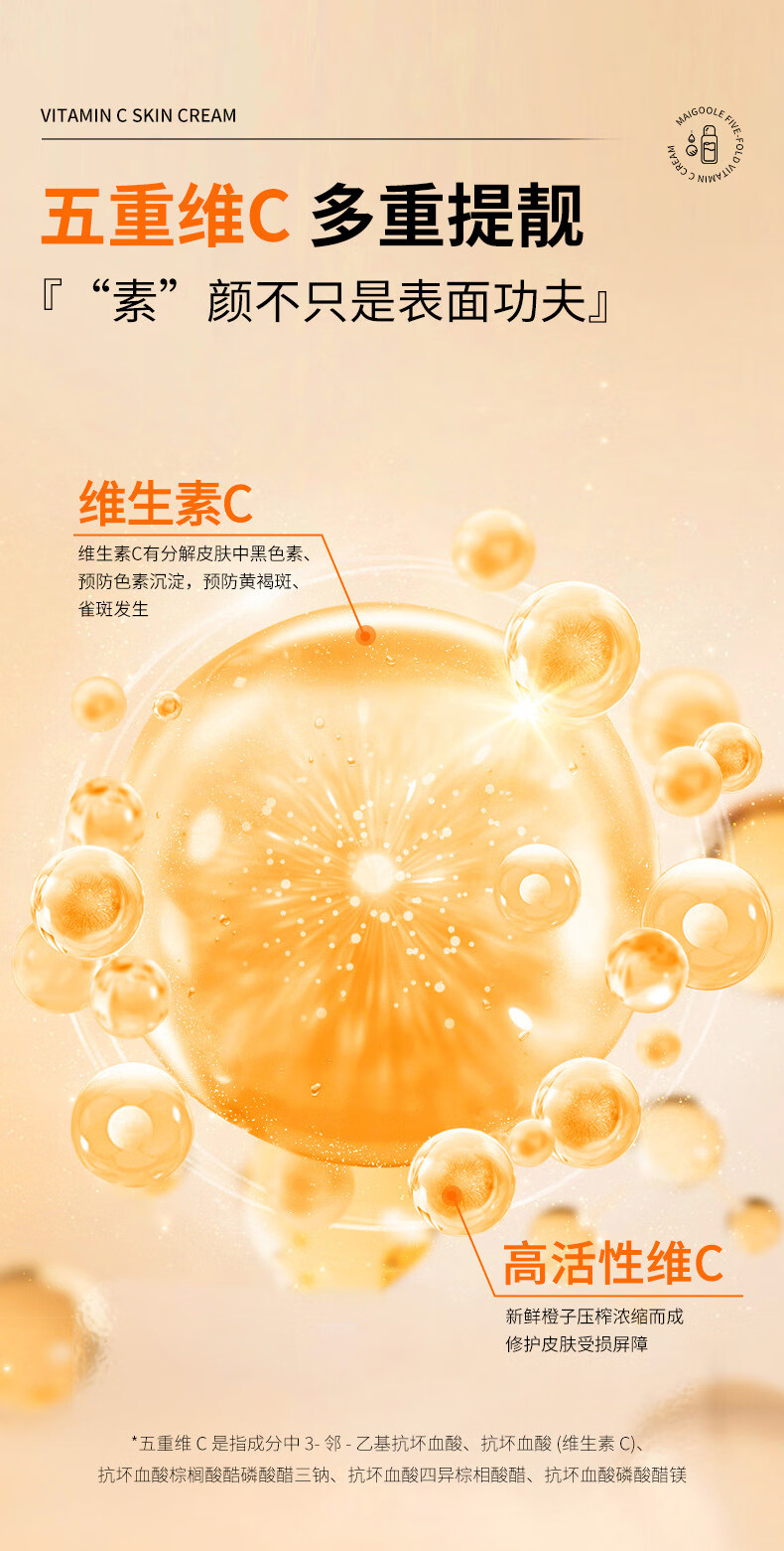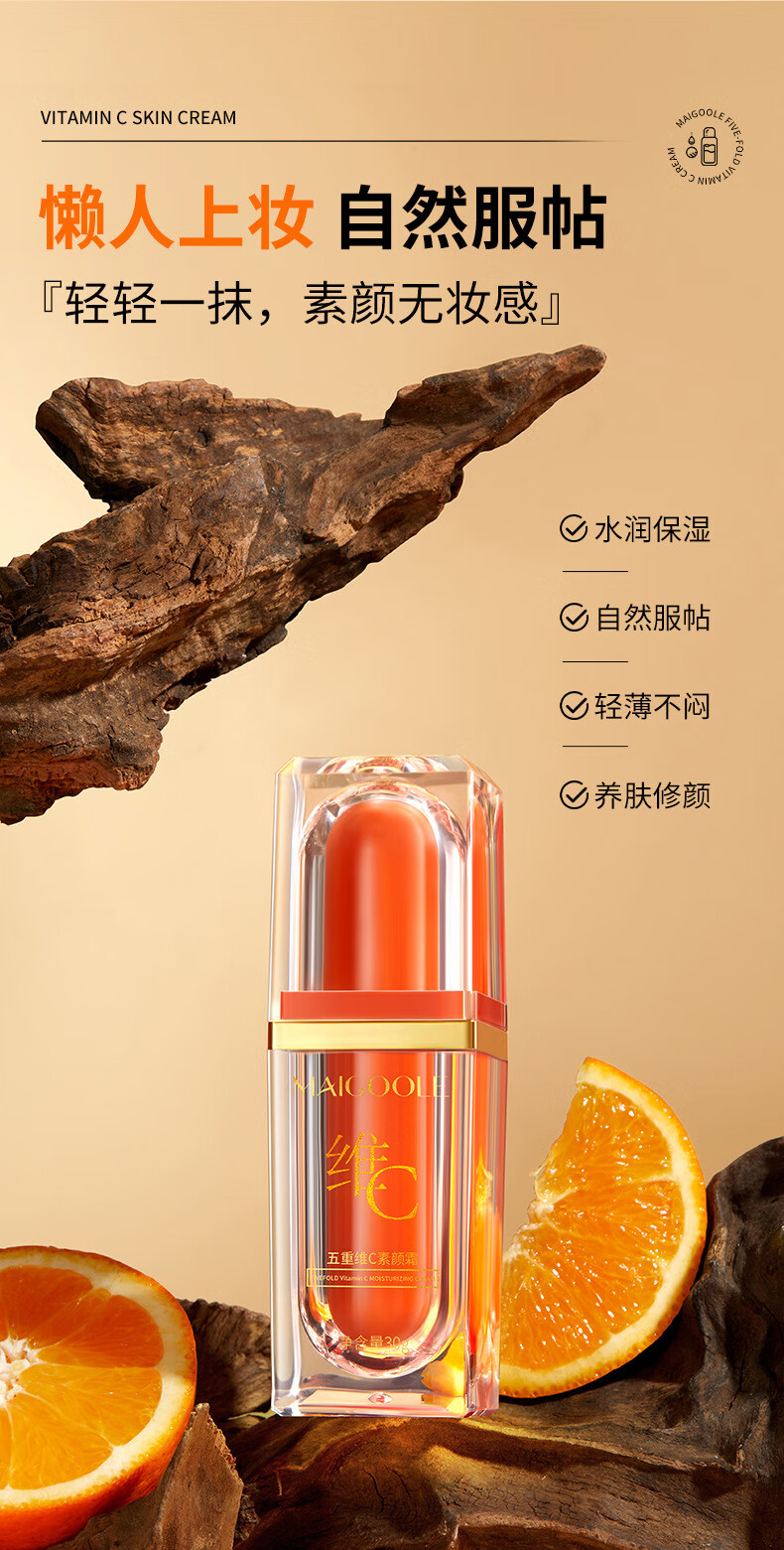 Five-fold Vitamin C Cream to brighten skin, moisturize the skin, naturally fit, light-weight, no-removal cream, Five-fold Vitamin C Cream*3, 3 bottles