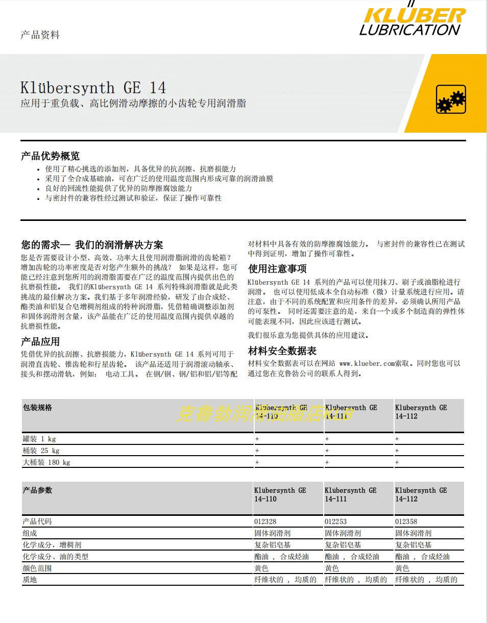 Kluber GE14-110 111 112 151 GE11-680 heavy-duty pinion grease 50g packaging *Remarks model