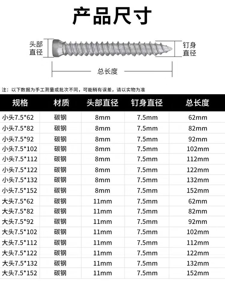 Bun Peng self-cutting screws for doors and windows, German-style concrete broken bridge installation nails, plum blossom self-tapping road rust treasure, German-style galvanized big head 7.5*72, No. 5 pack, 200 pieces + two plum blossom bits + two electric hammer drill bits