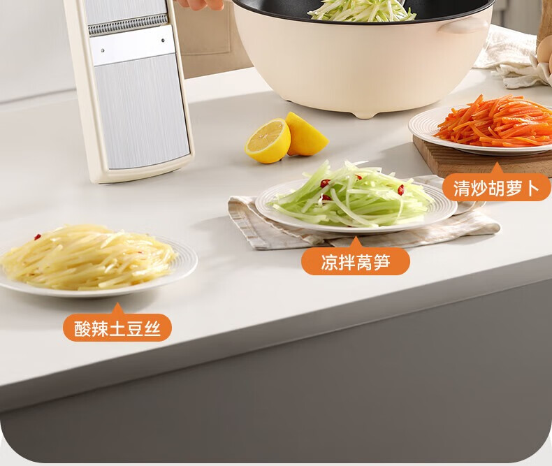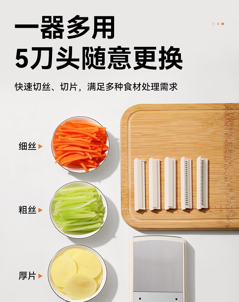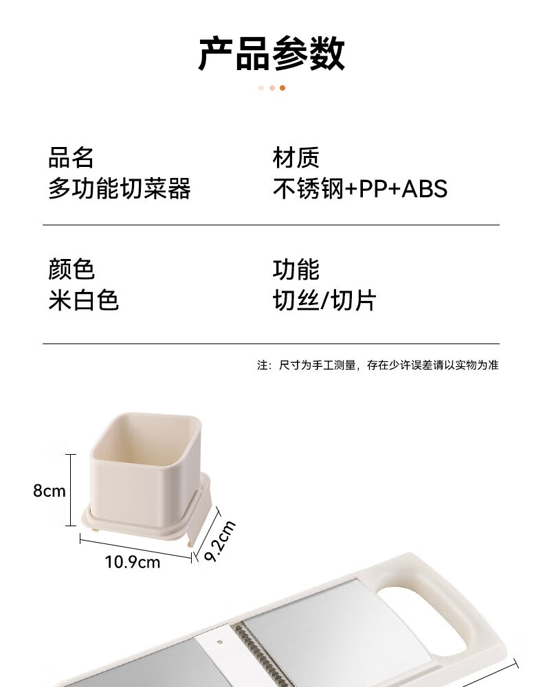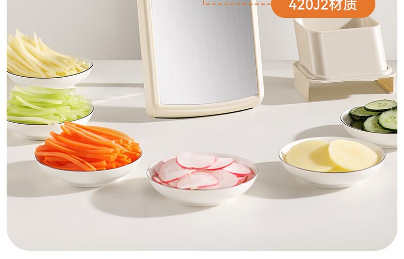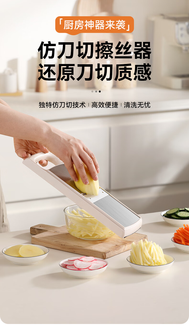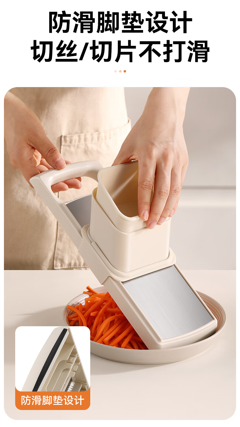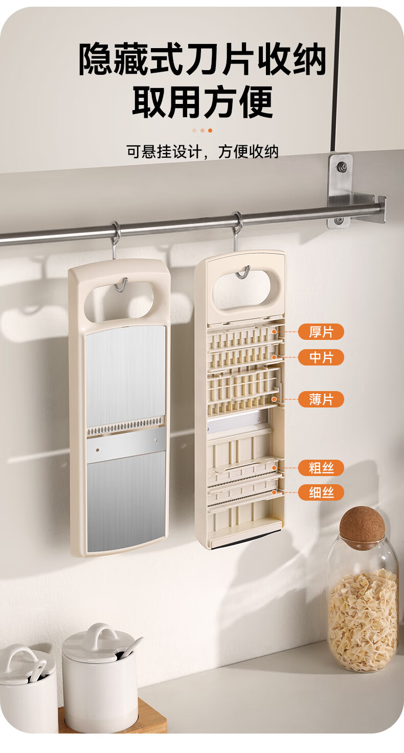 Jingyan vegetable cutter, stainless steel grater, multi-functional grater, potato shred brush, shredder scraper, hand guard, 2 knives, filaments + flakes, multi-purpose in one, uniform thickness and no lag