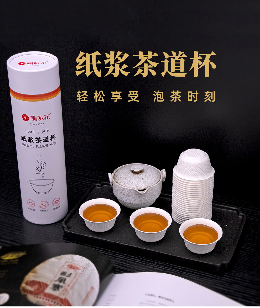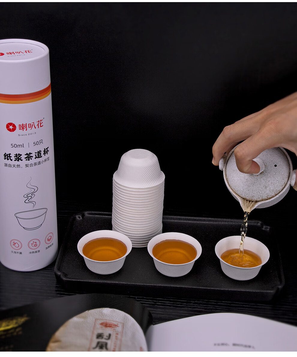 Morning glory disposable tea cup Kung Fu tea cup sugar cane pulp tea ceremony cup tasting tea cup drinking tea cup 50ml sugar cane pulp tea ceremony cup 50 paper cups