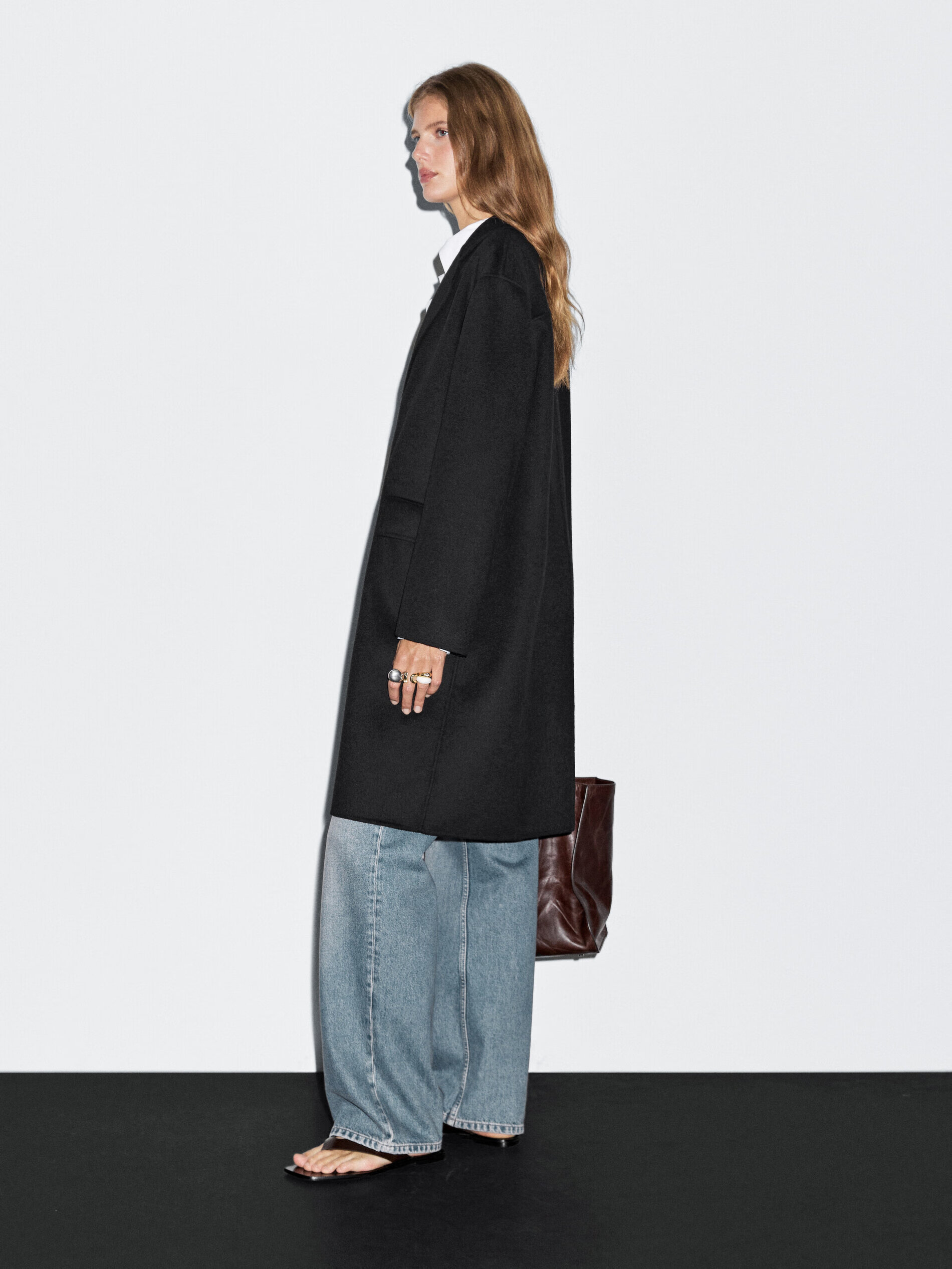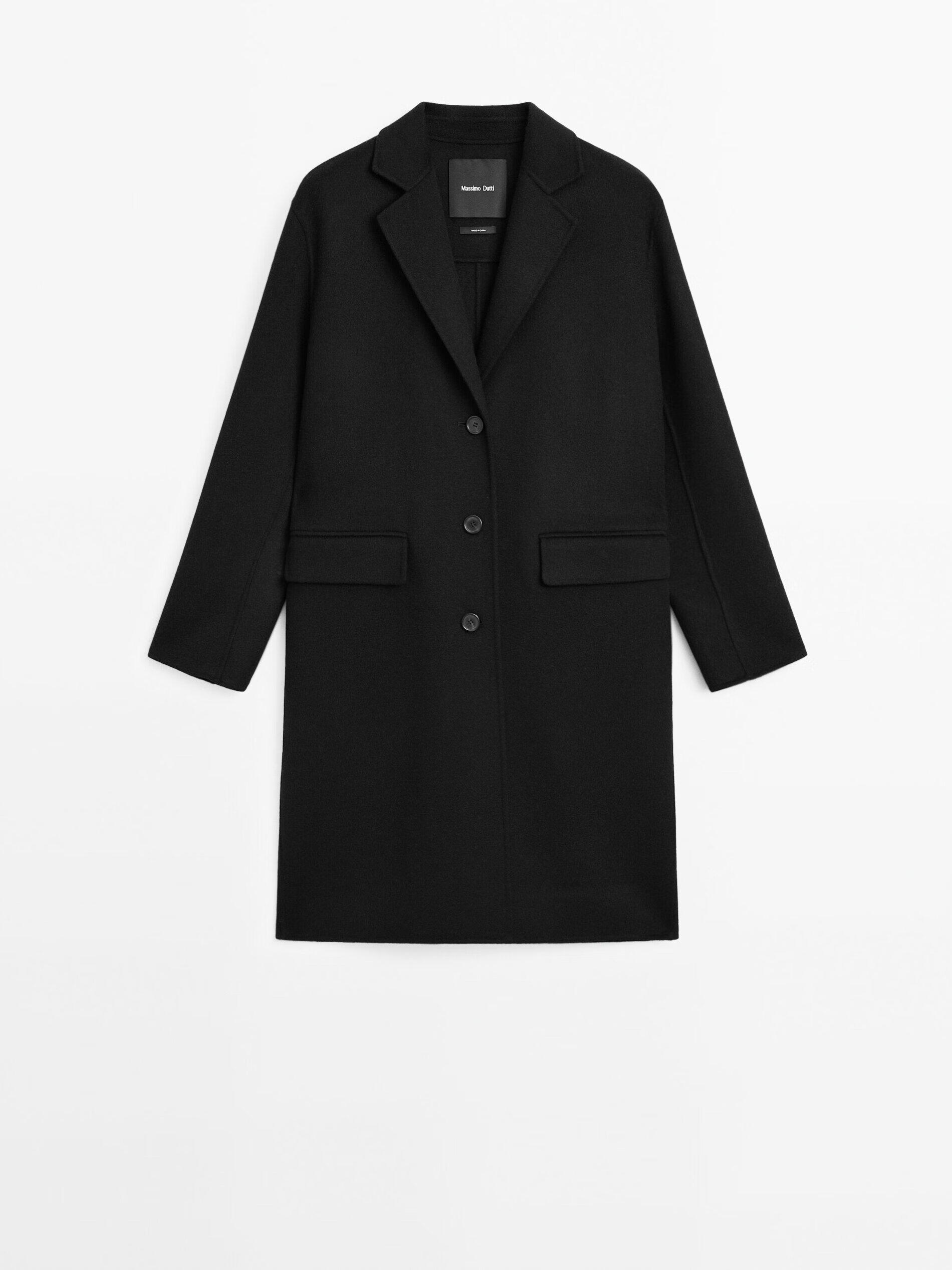 Massimo Dutti discount season 2025 women's clothing elegant and quiet luxury style long wool blend coat jacket 06413964 black M (170/92A)