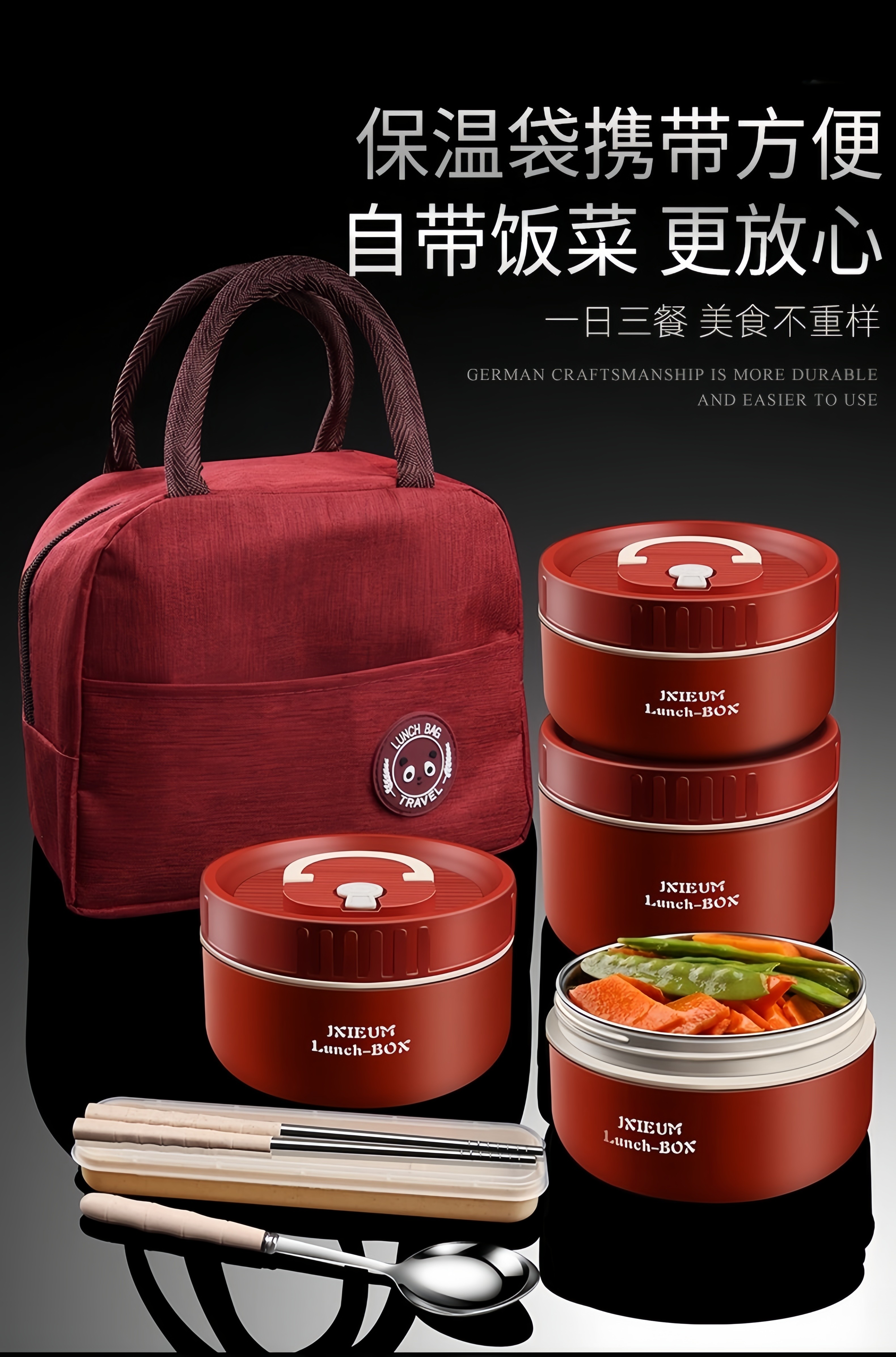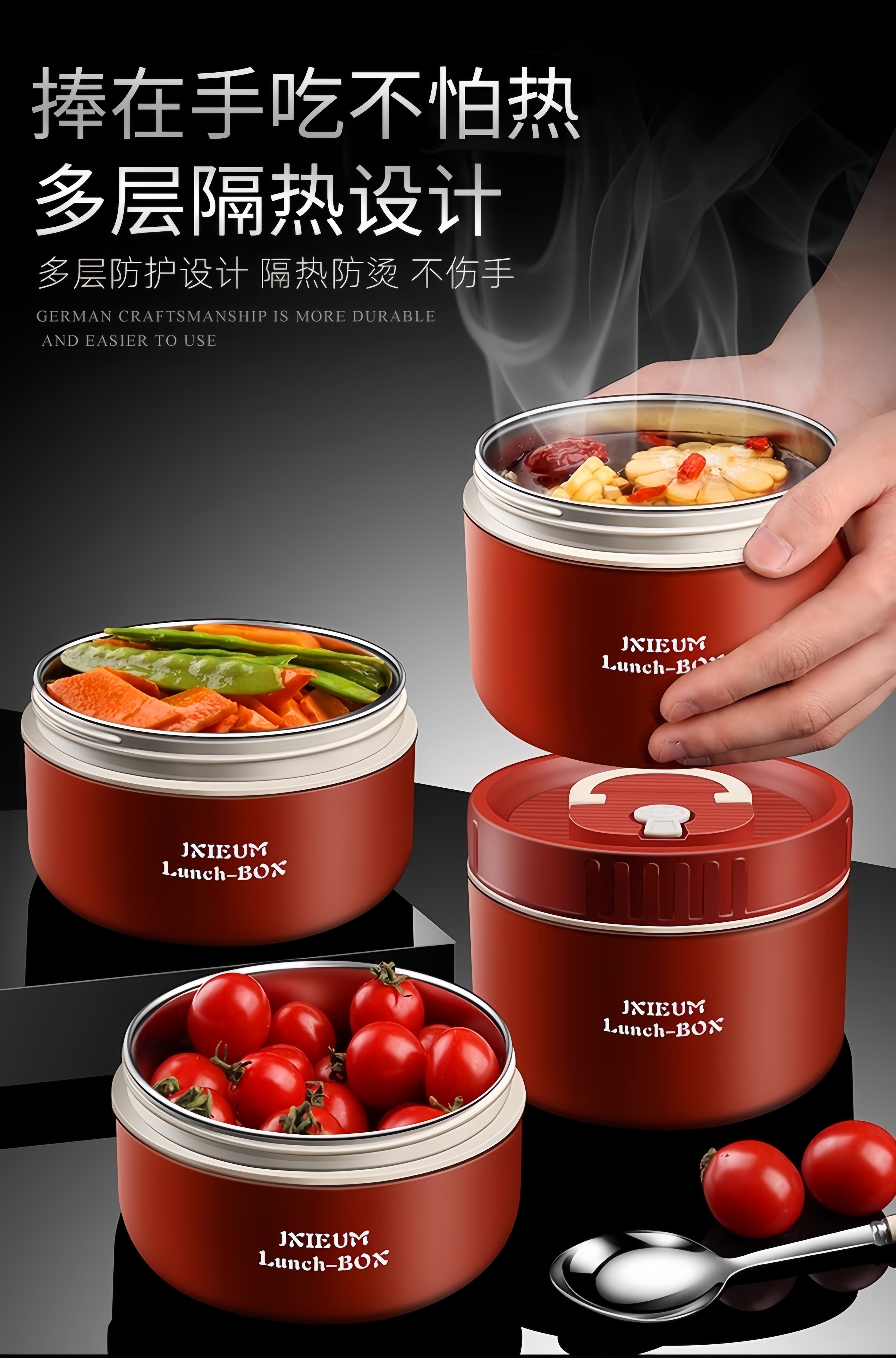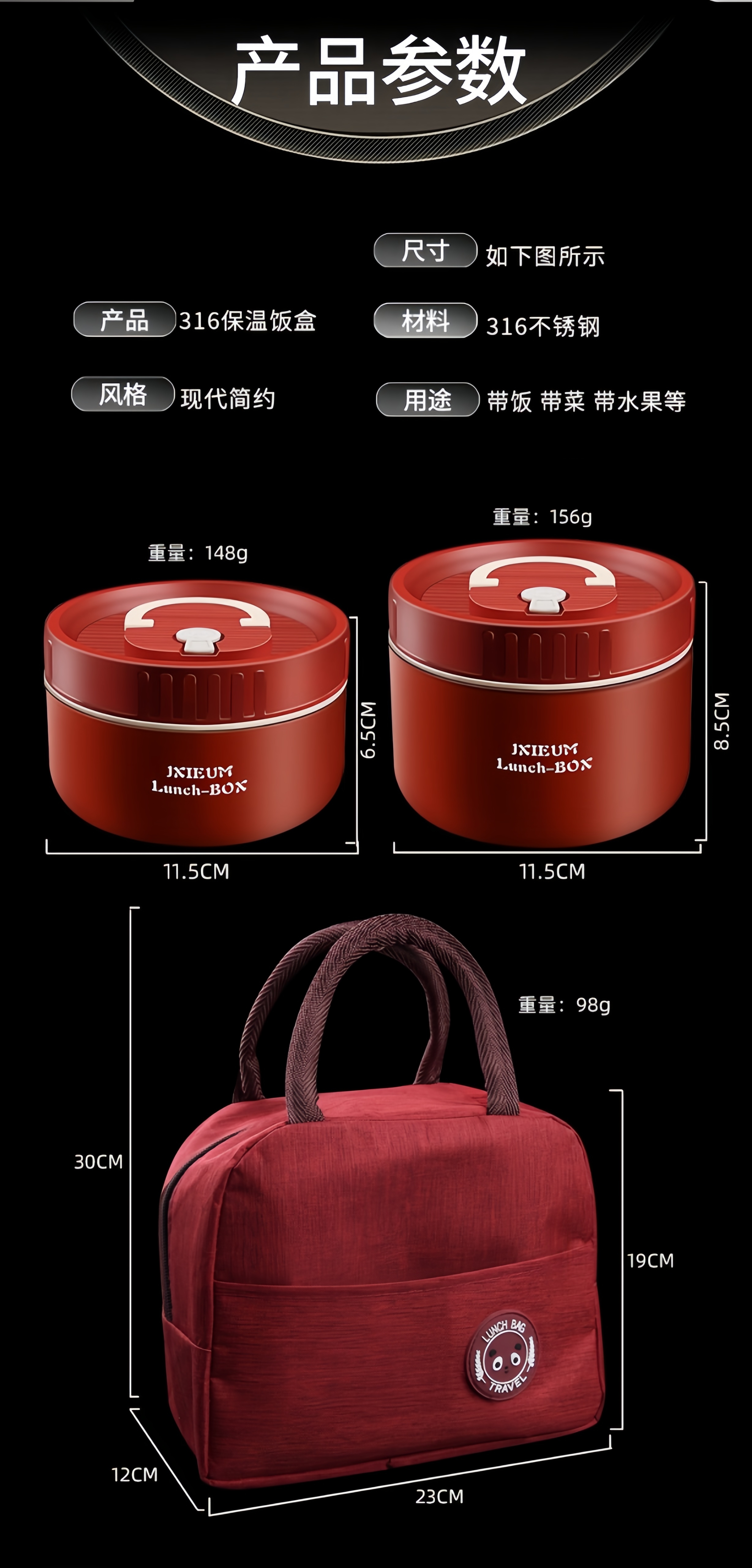 GPHF Japan 316L stainless steel mini small insulated lunch box office worker portable breakfast box with lid bowl single layer lunch box 1 Chinese red 620ML can be heated in a microwave oven