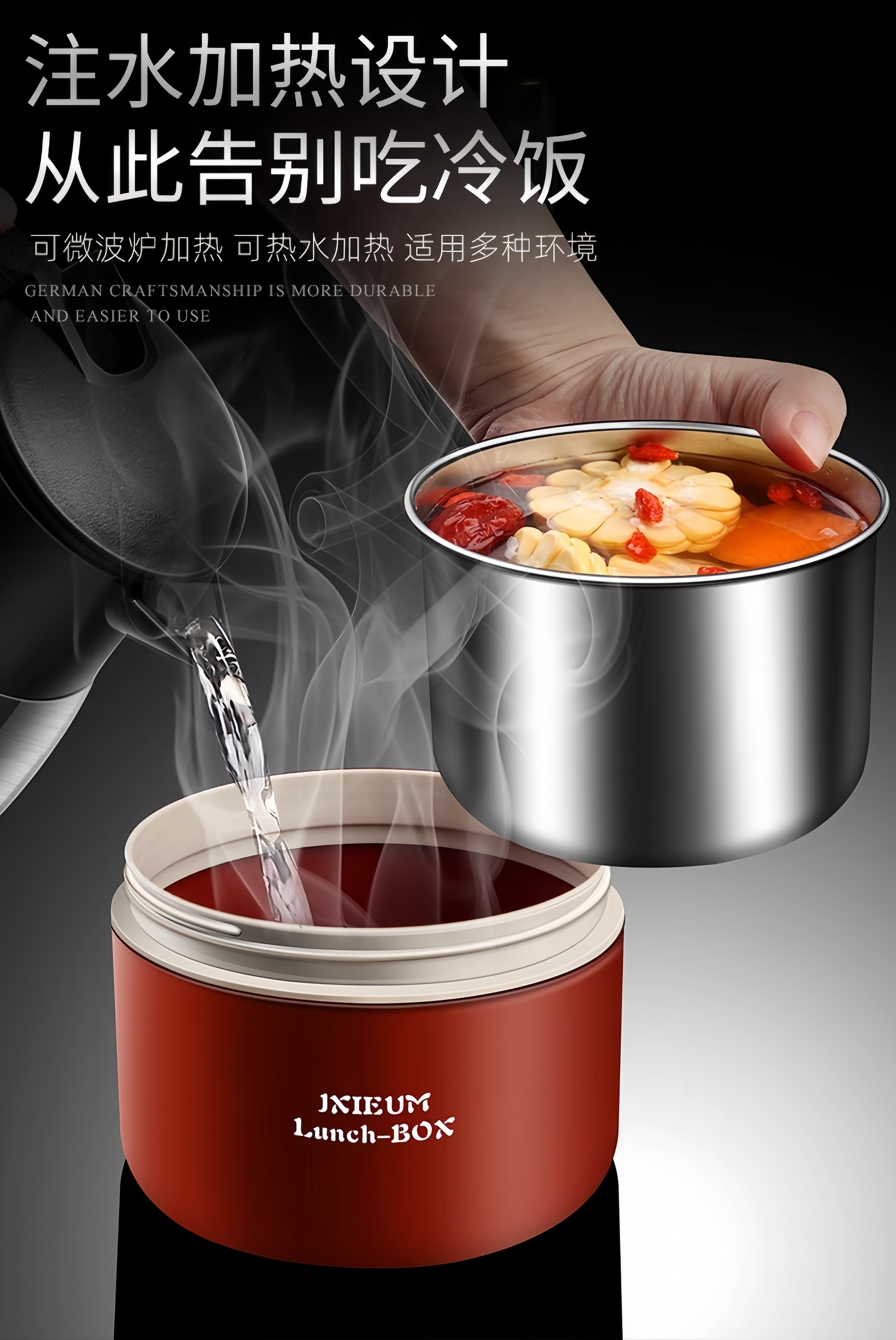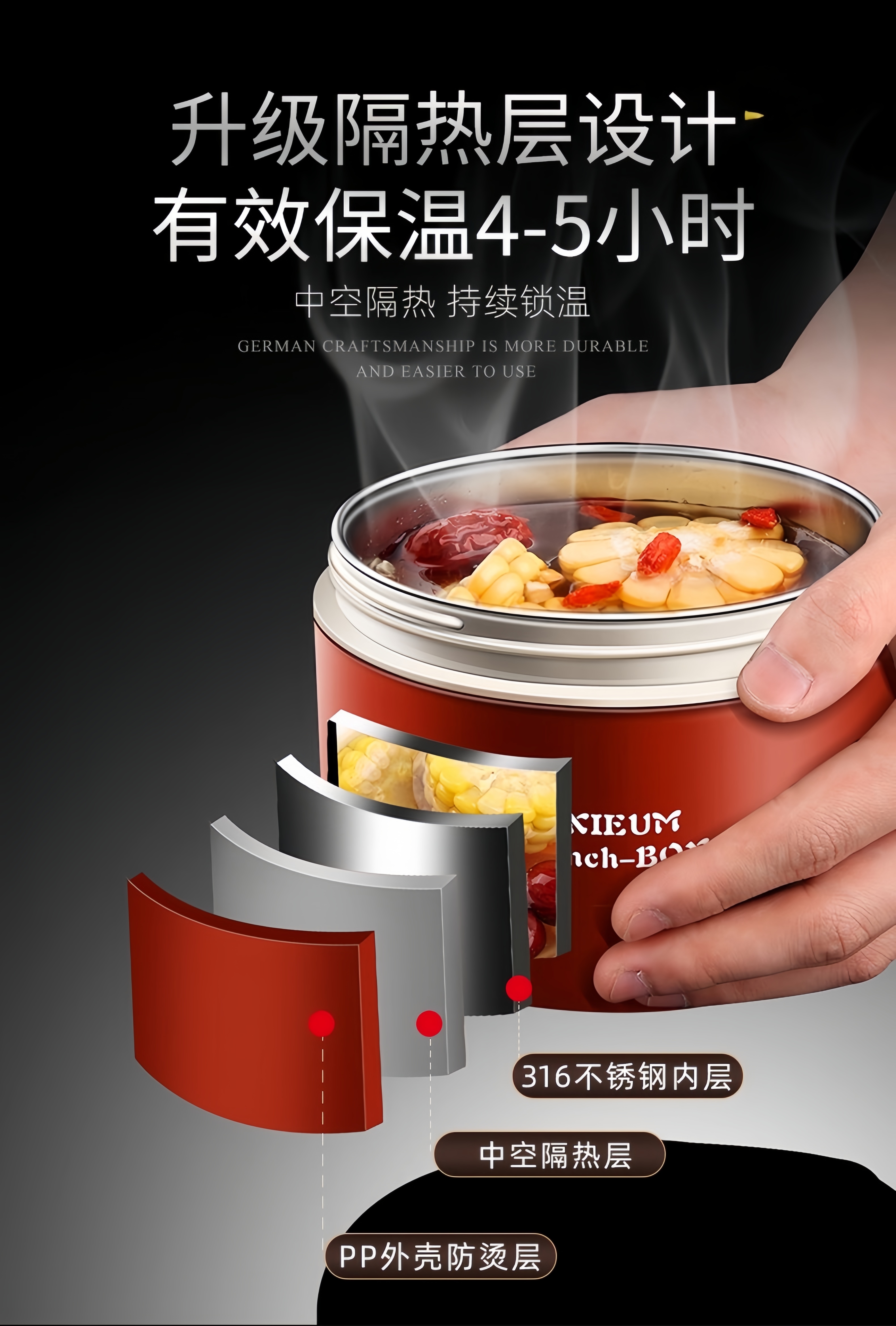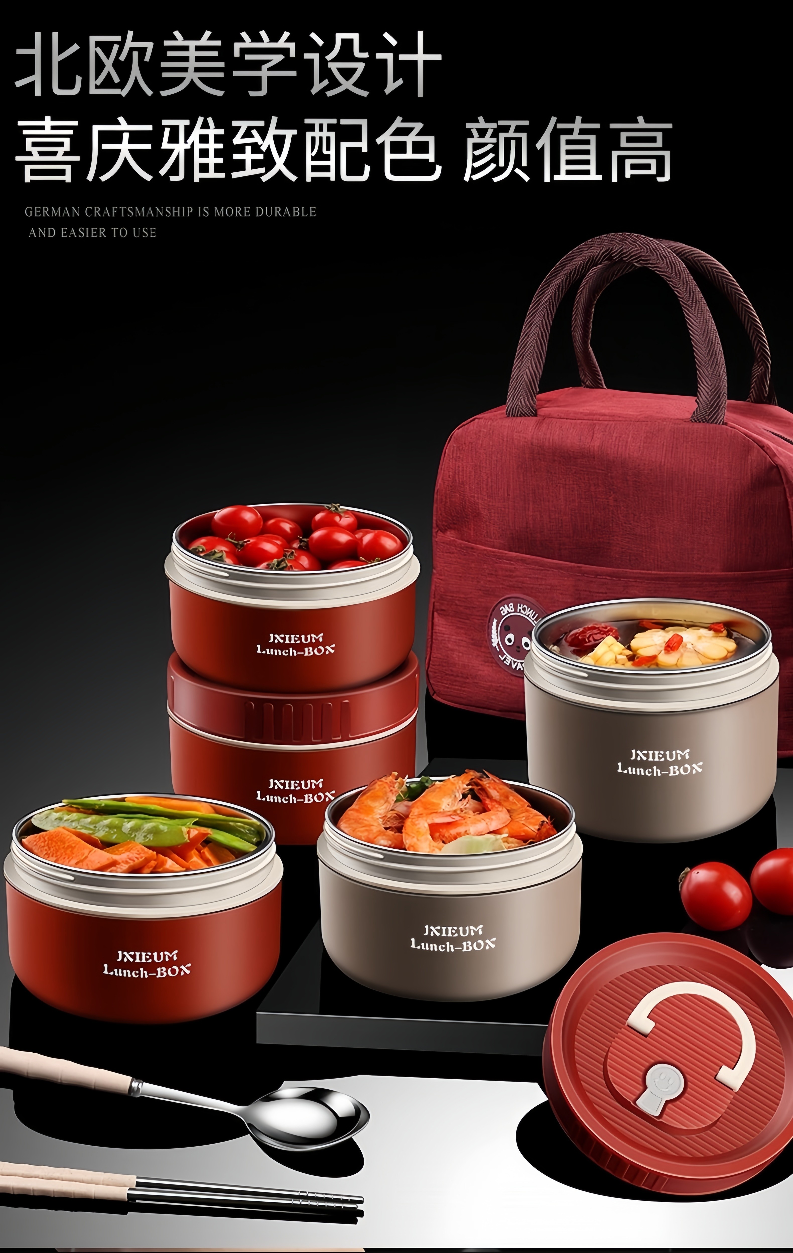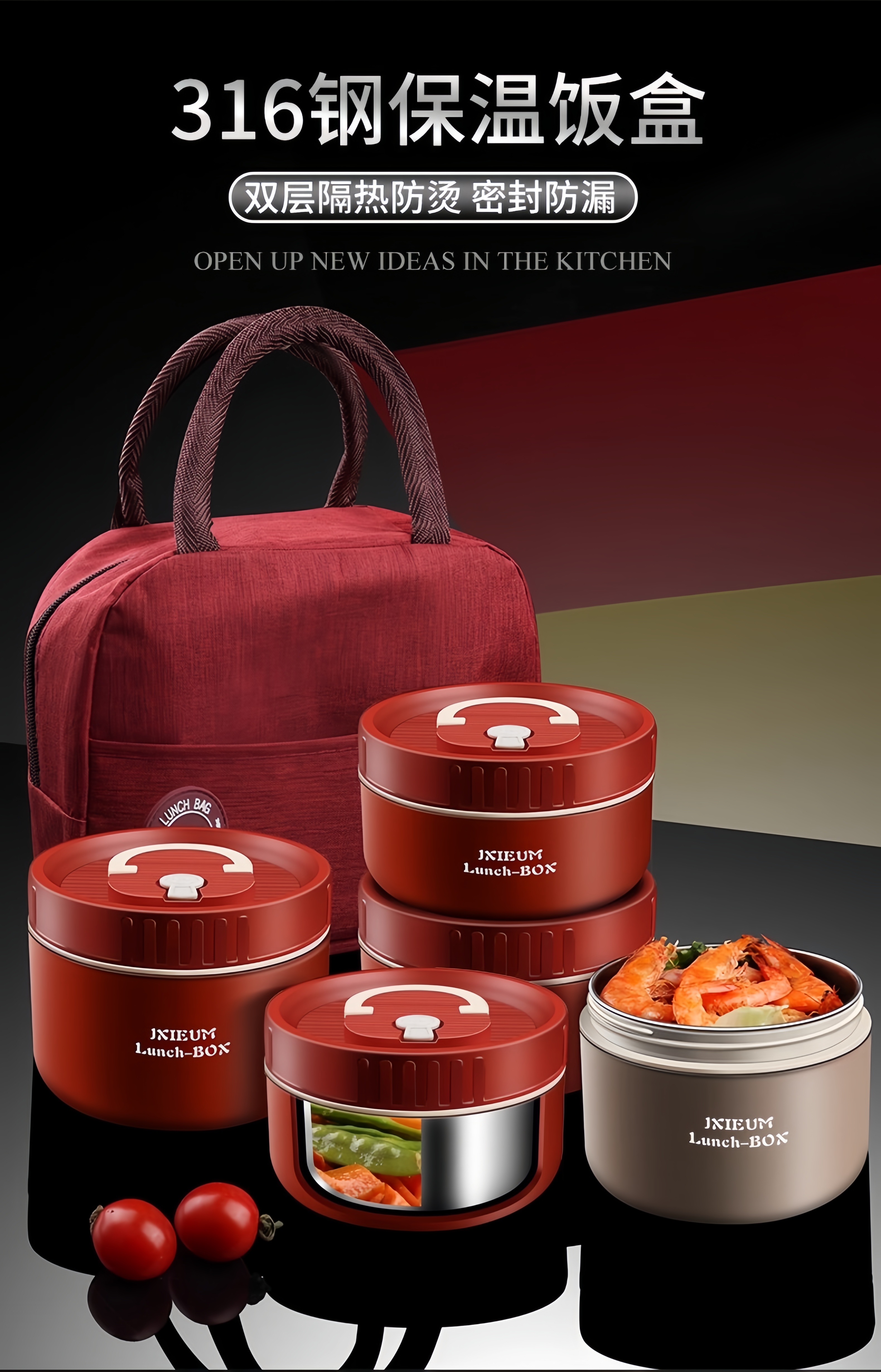 GPHF Japan 316L stainless steel mini small insulated lunch box office worker portable breakfast box with lid bowl single layer lunch box 1 Chinese red 620ML can be heated in a microwave oven