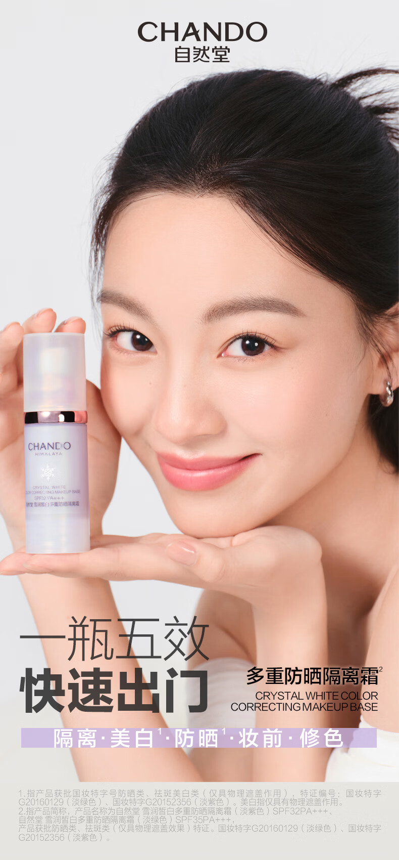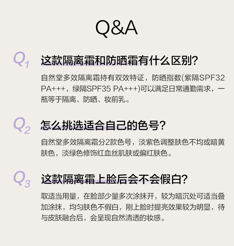Nature Hall Isolation Cream, Sunscreen, Concealer, Whitening, Three-in-One, Brightening, Moisturizing and Long-lasting Facial Cream for Lazy People, Purple Isolation 5ml + Green Bag 1ml