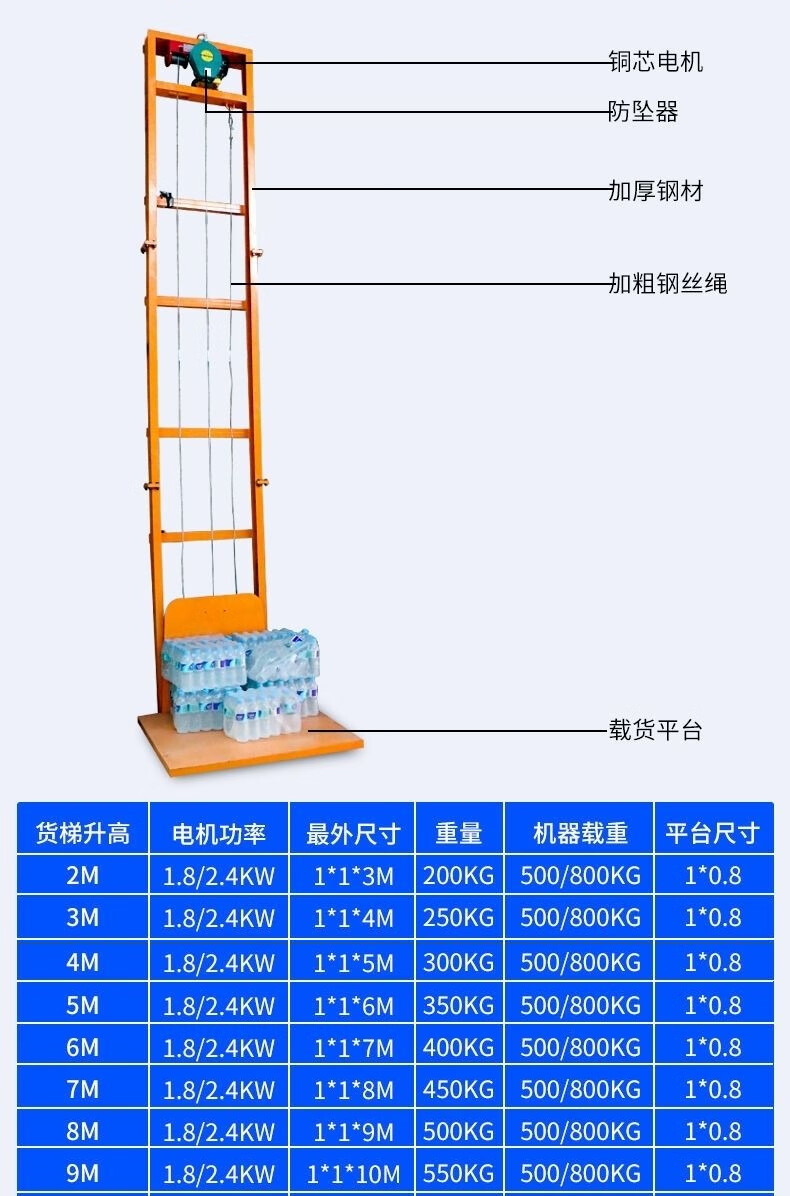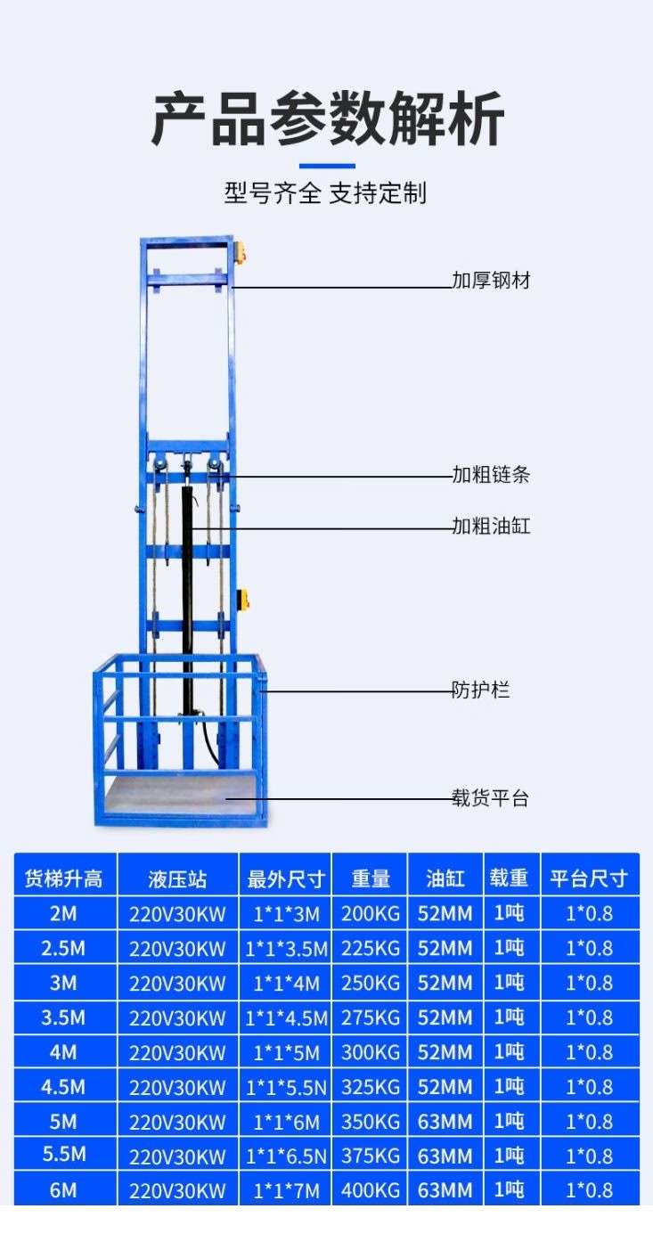 Electric lift cargo elevator hydraulic lift factory warehouse cargo hoist household orbital lift platform electric lift 5 meters remote control model 500KG