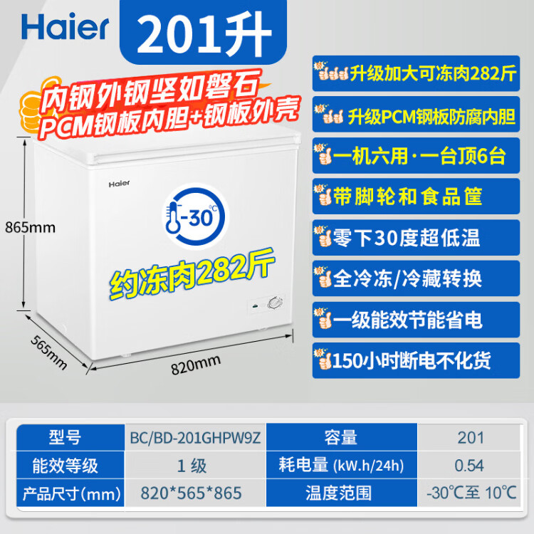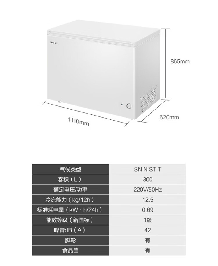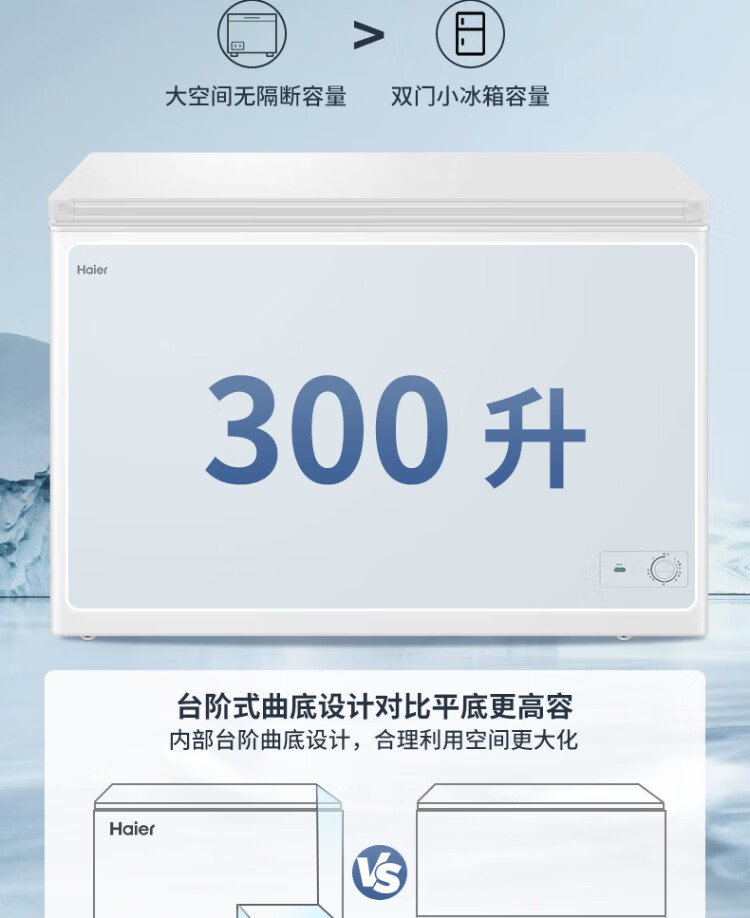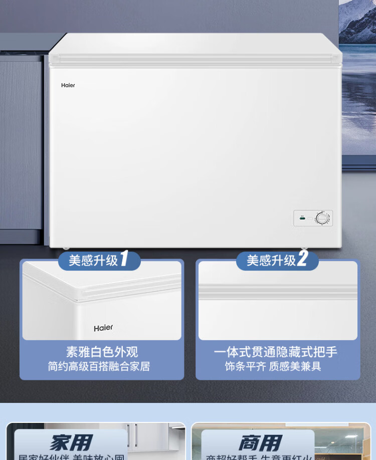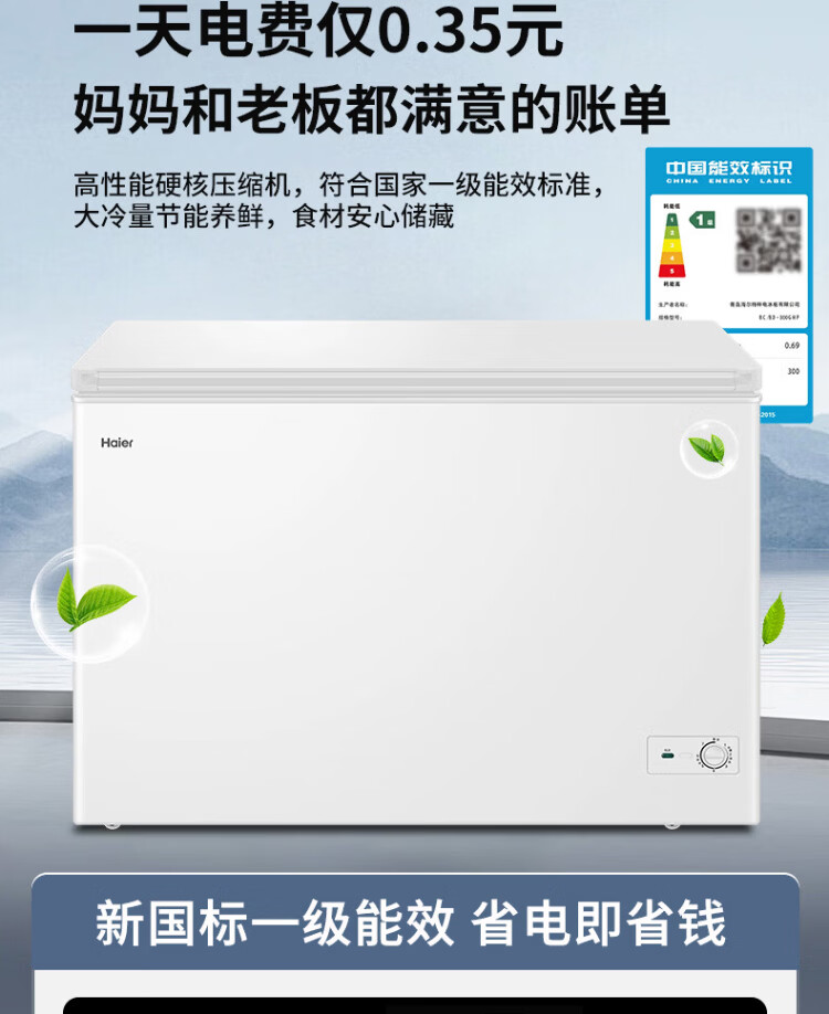 Haier household freezer 200/300 liters large capacity fully frozen energy-saving ultra-low temperature quick freezing no need for frequent defrosting first-level energy efficiency small refrigeration commercial fresh-keeping 201 liters hot sale special offer 282 kilograms of meat, first-level energy efficiency and energy saving