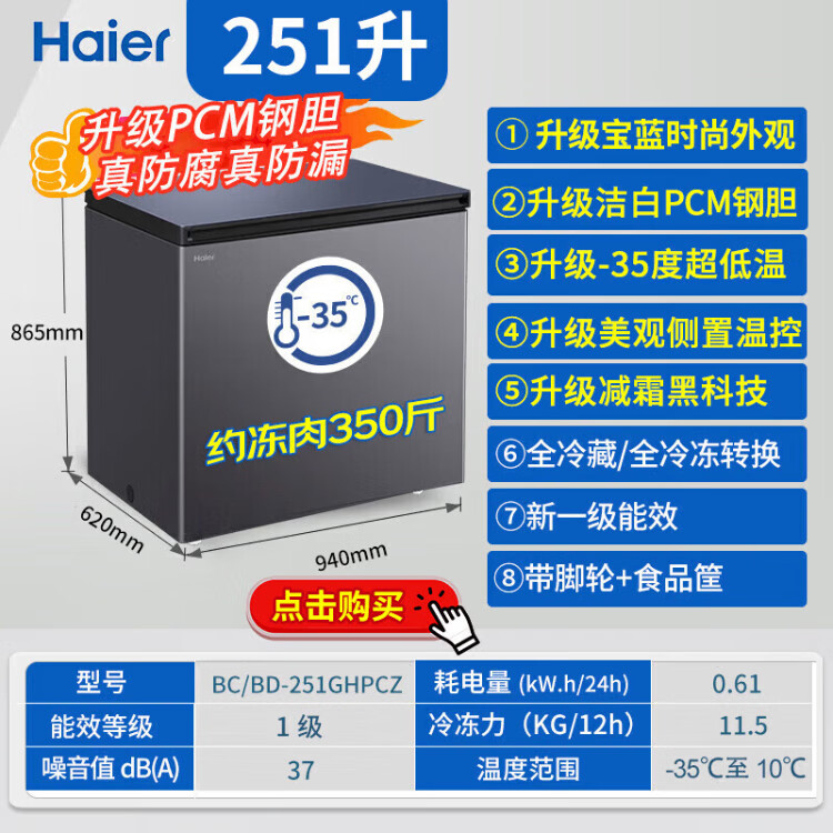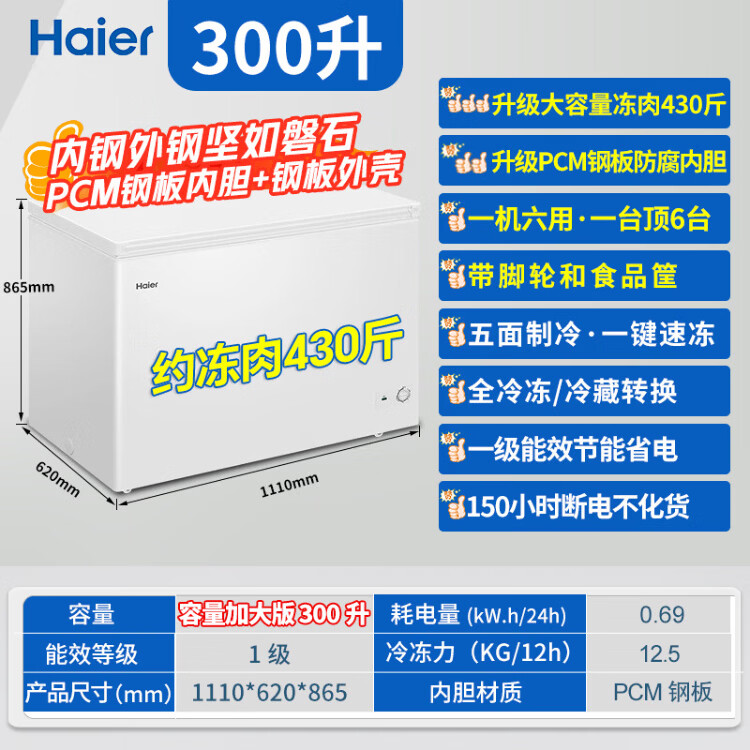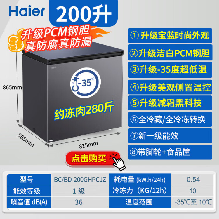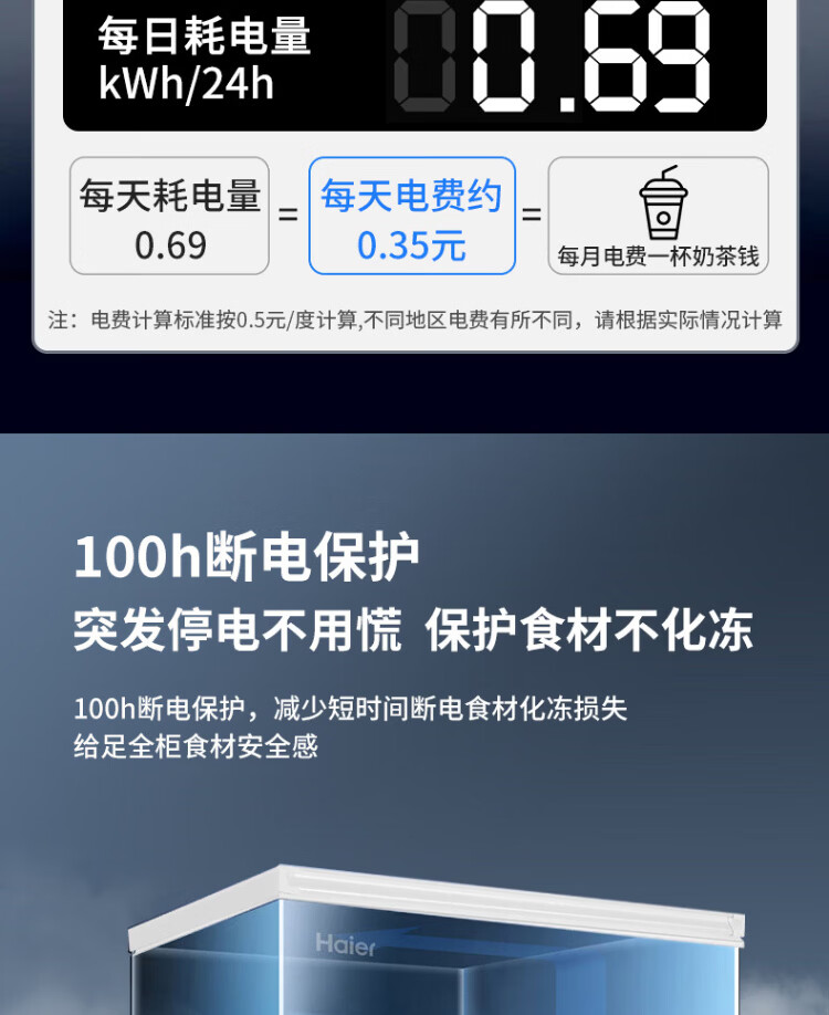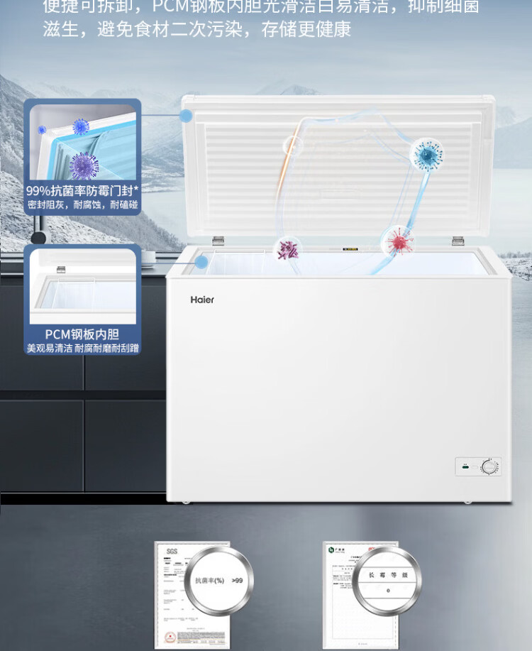 Haier household freezer 200/300 liters large capacity fully frozen energy-saving ultra-low temperature quick freezing no need for frequent defrosting first-level energy efficiency small refrigeration commercial fresh-keeping 201 liters hot sale special offer 282 kilograms of meat, first-level energy efficiency and energy saving
