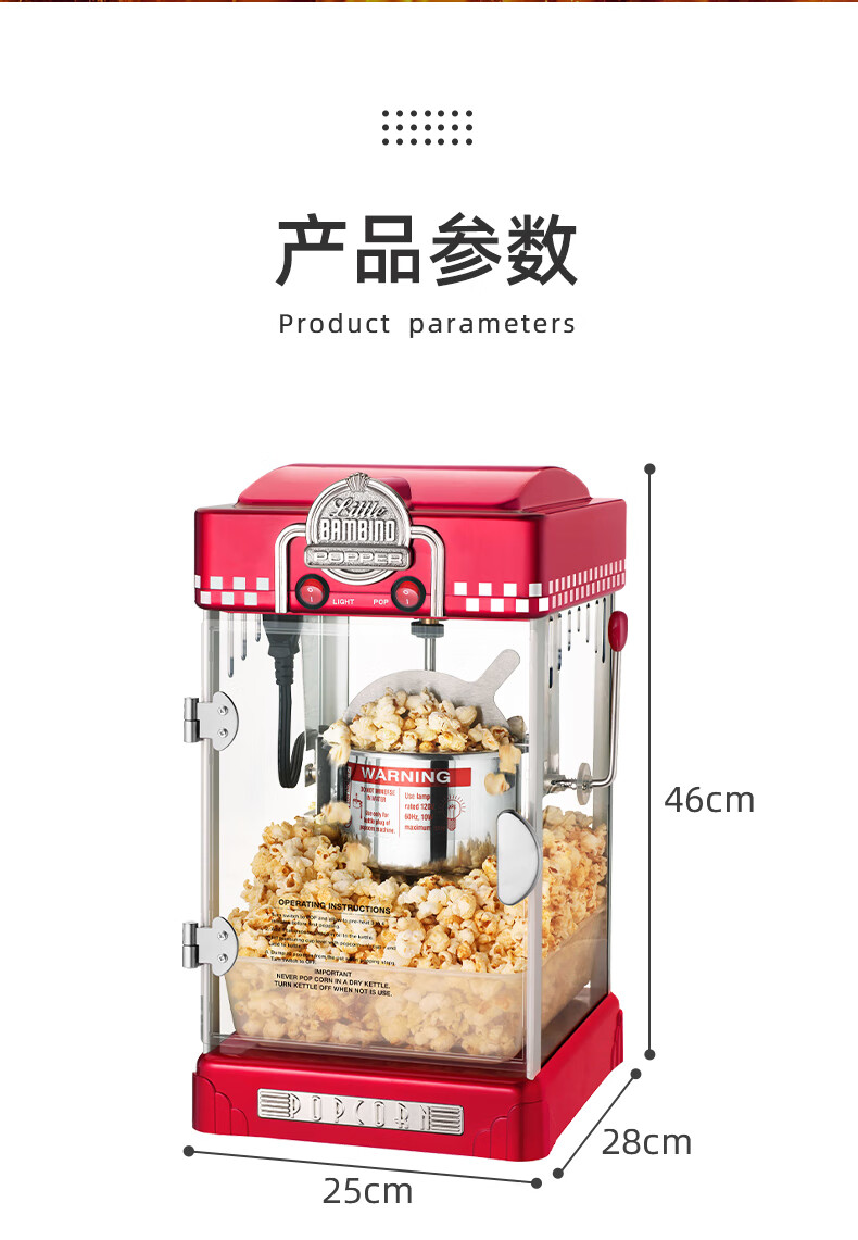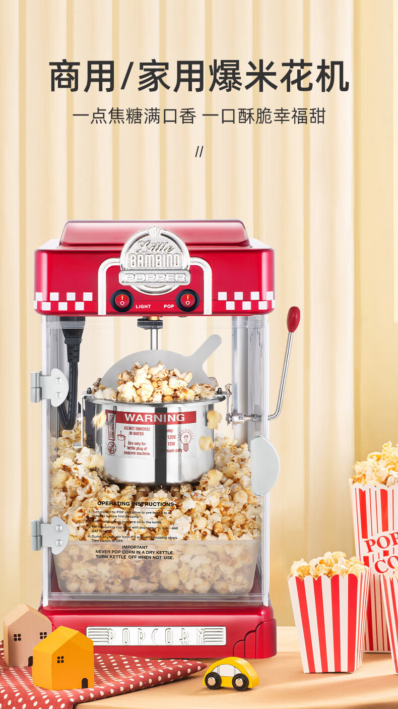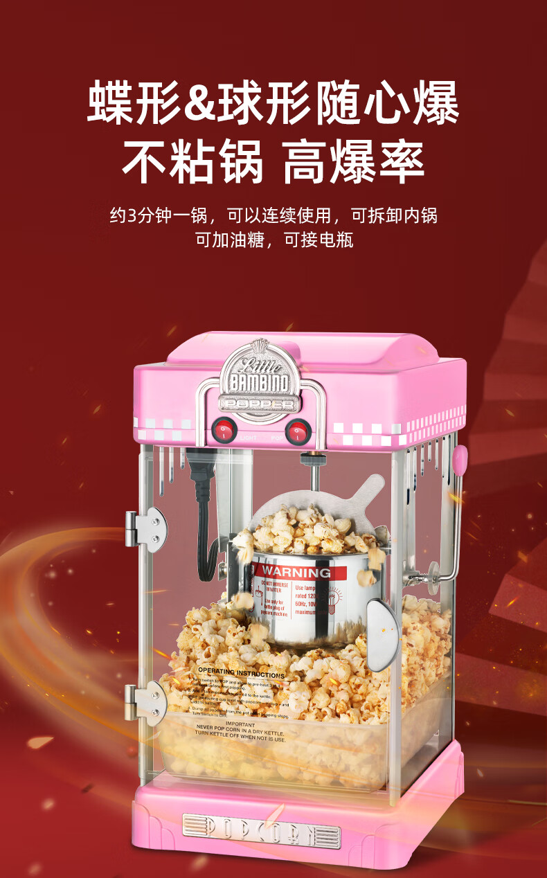Popcorn machine commercial stall fully automatic electric heating spherical popcorn machine household small children's popcorn machine 6077 pink