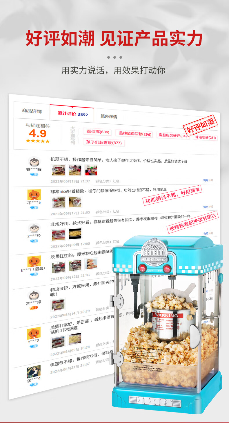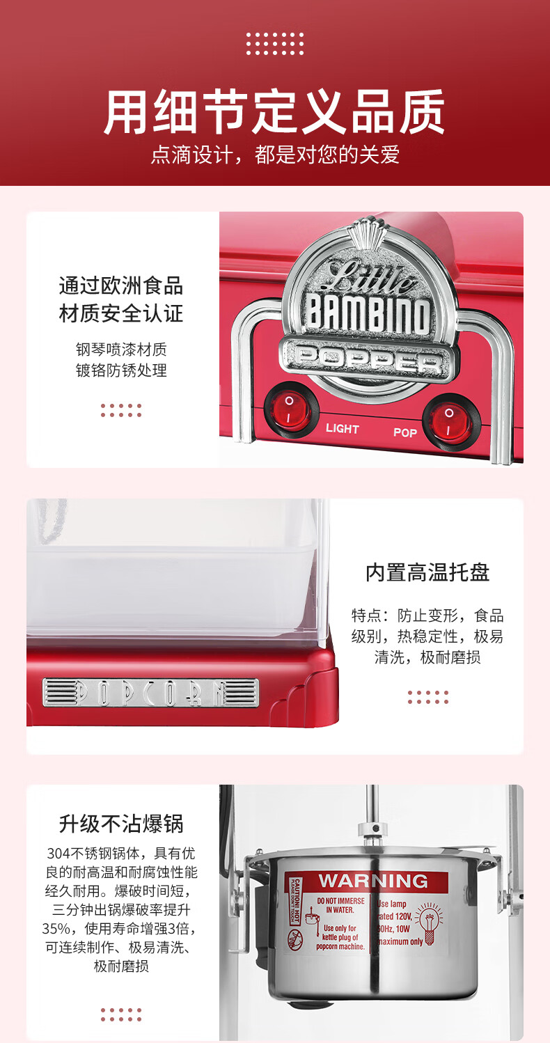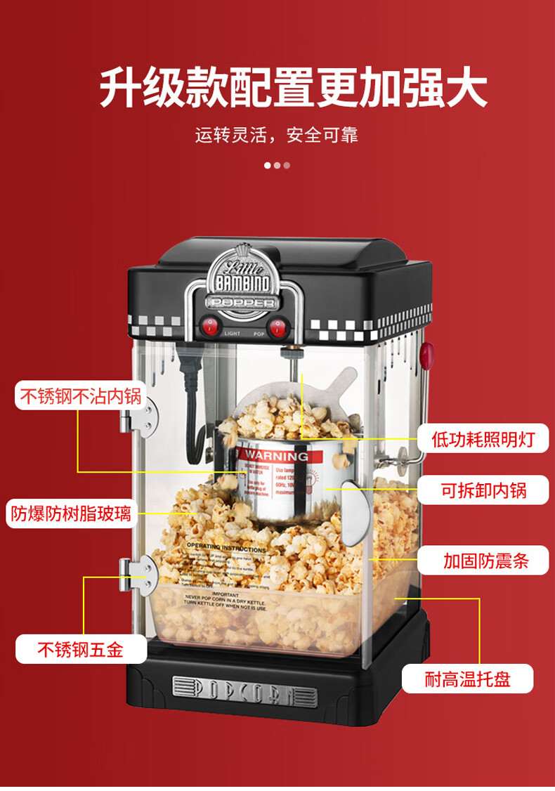Popcorn machine commercial stall fully automatic electric heating spherical popcorn machine household small children's popcorn machine 6077 pink