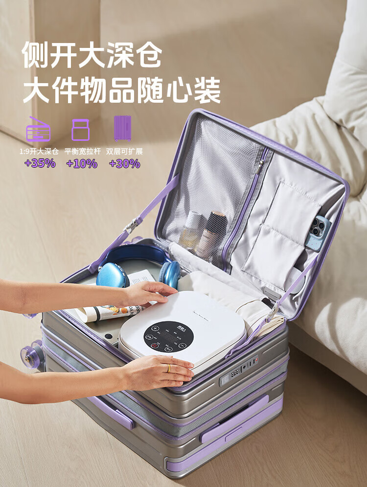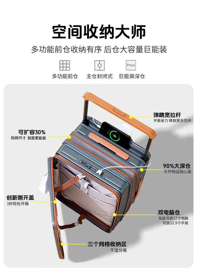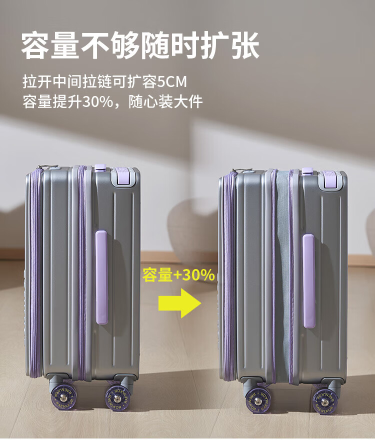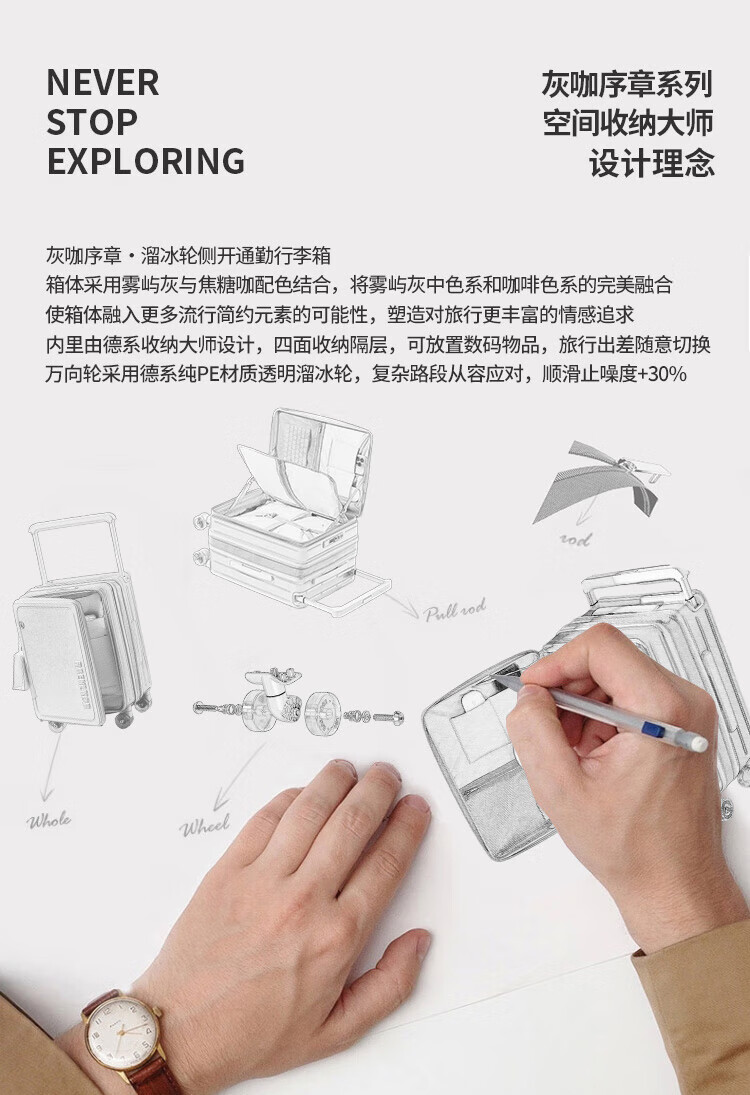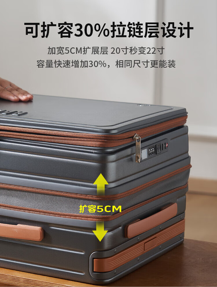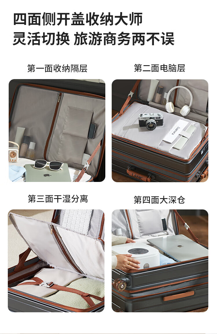 Langke German front side opening suitcase 20-inch boarding case expandable large capacity wide trolley travel suitcase 24 men and women gray coffee prologue ice skating transparent wheel-2025 new model 20 inches can be boarded on the plane, suitable for 7-10 days of travel