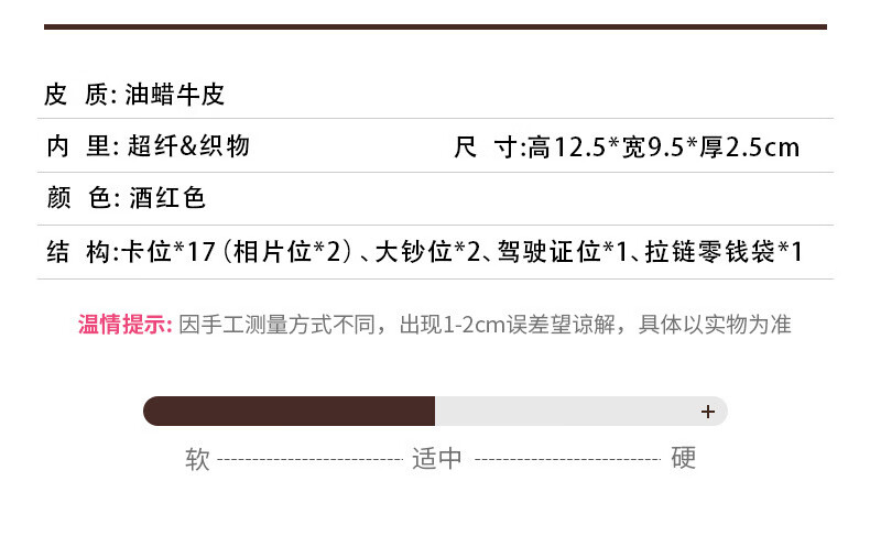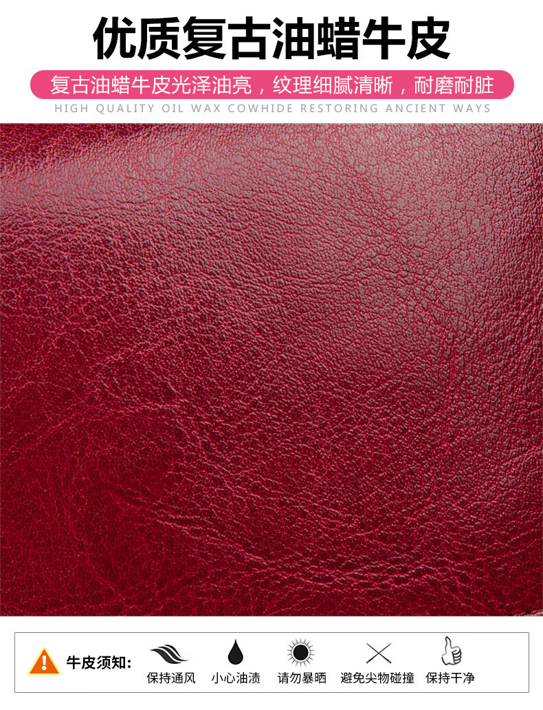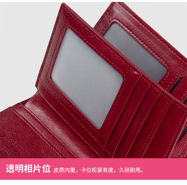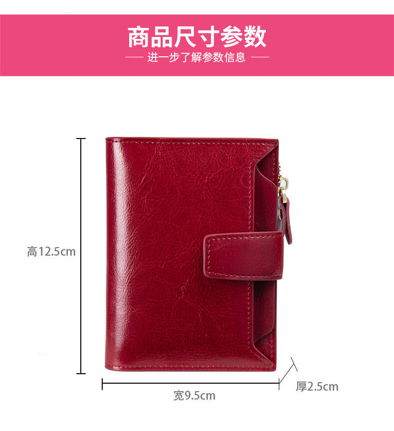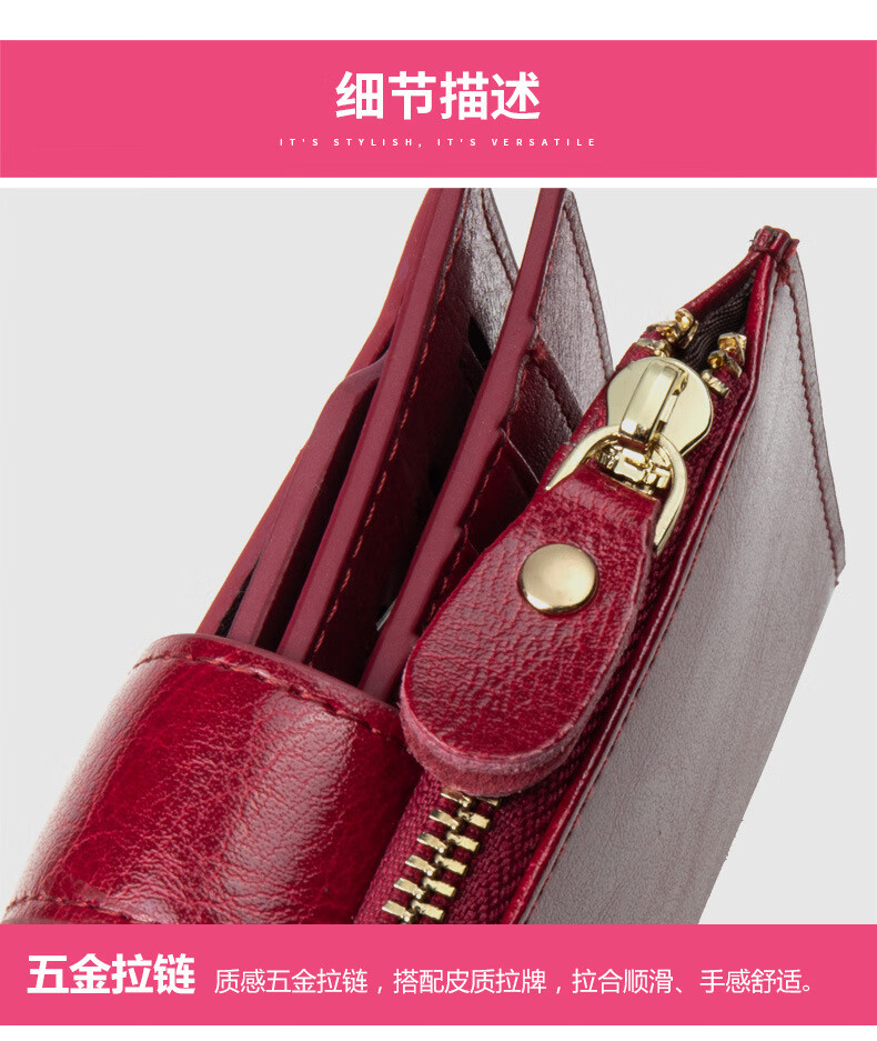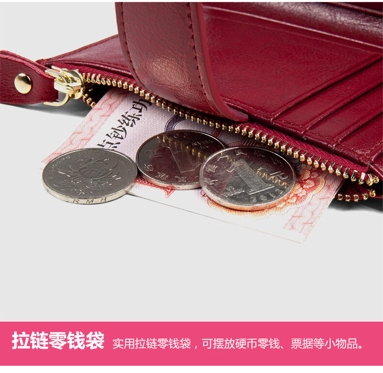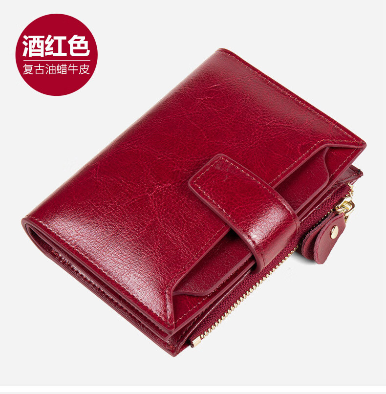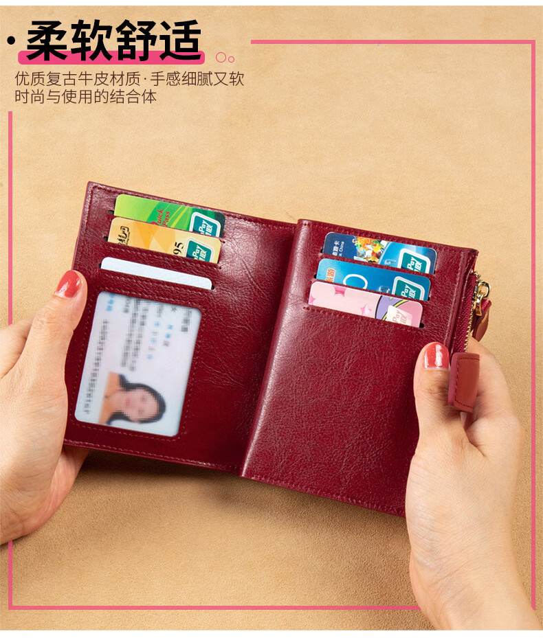 Glozde 2025 new retro genuine cowhide women's wallet multi-functional RFID anti-theft brush large-capacity change zipper wallet burgundy
