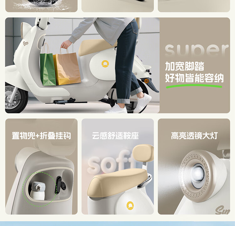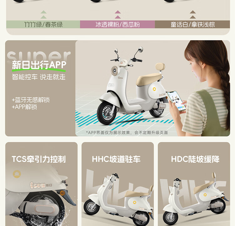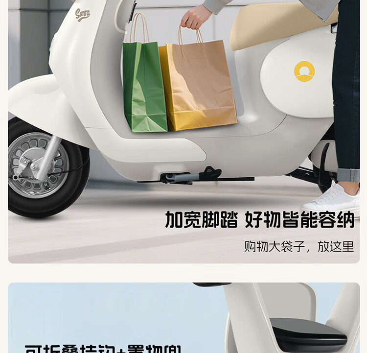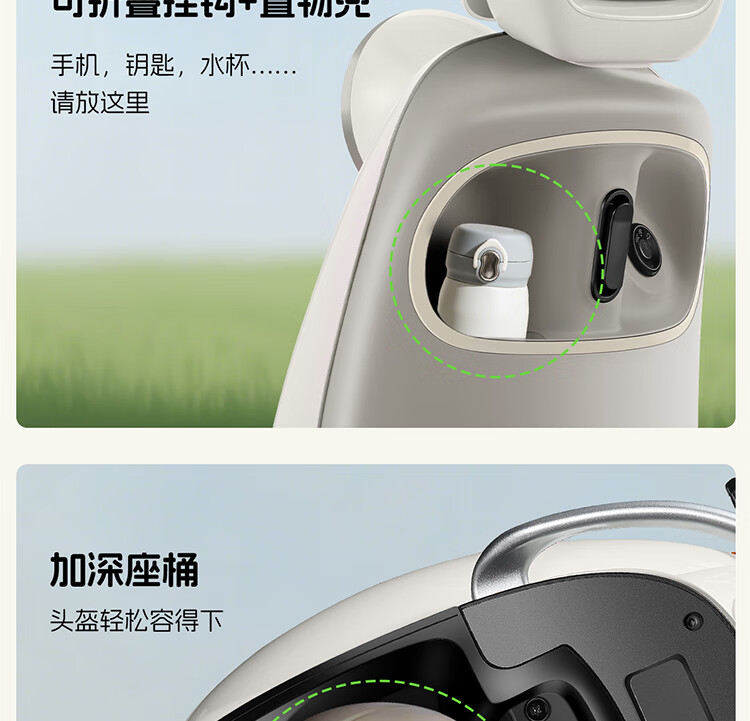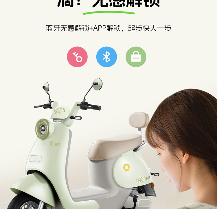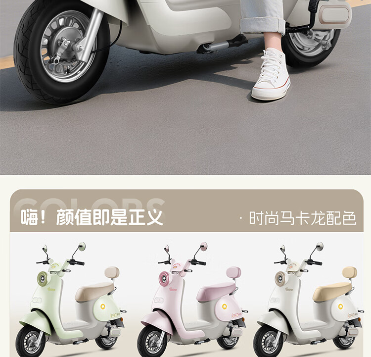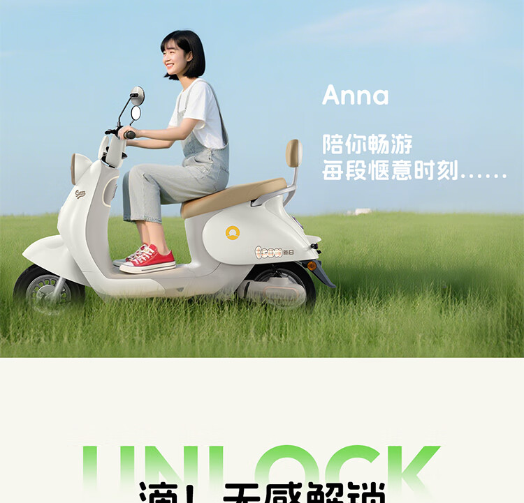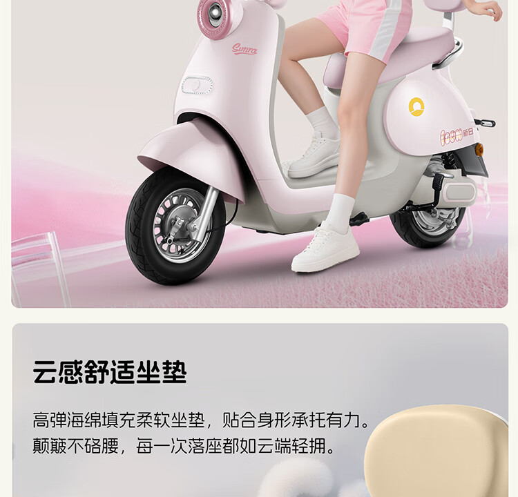 Xinri Electric Vehicle 60V20Ah Lead Acid Battery APP Bluetooth Unlocked Electric Motorcycle Smart Electric Vehicle Commuting Transportation Battery Car Anna Fairytale White/Latte Light Brown/Smart Edition 60V20Ah