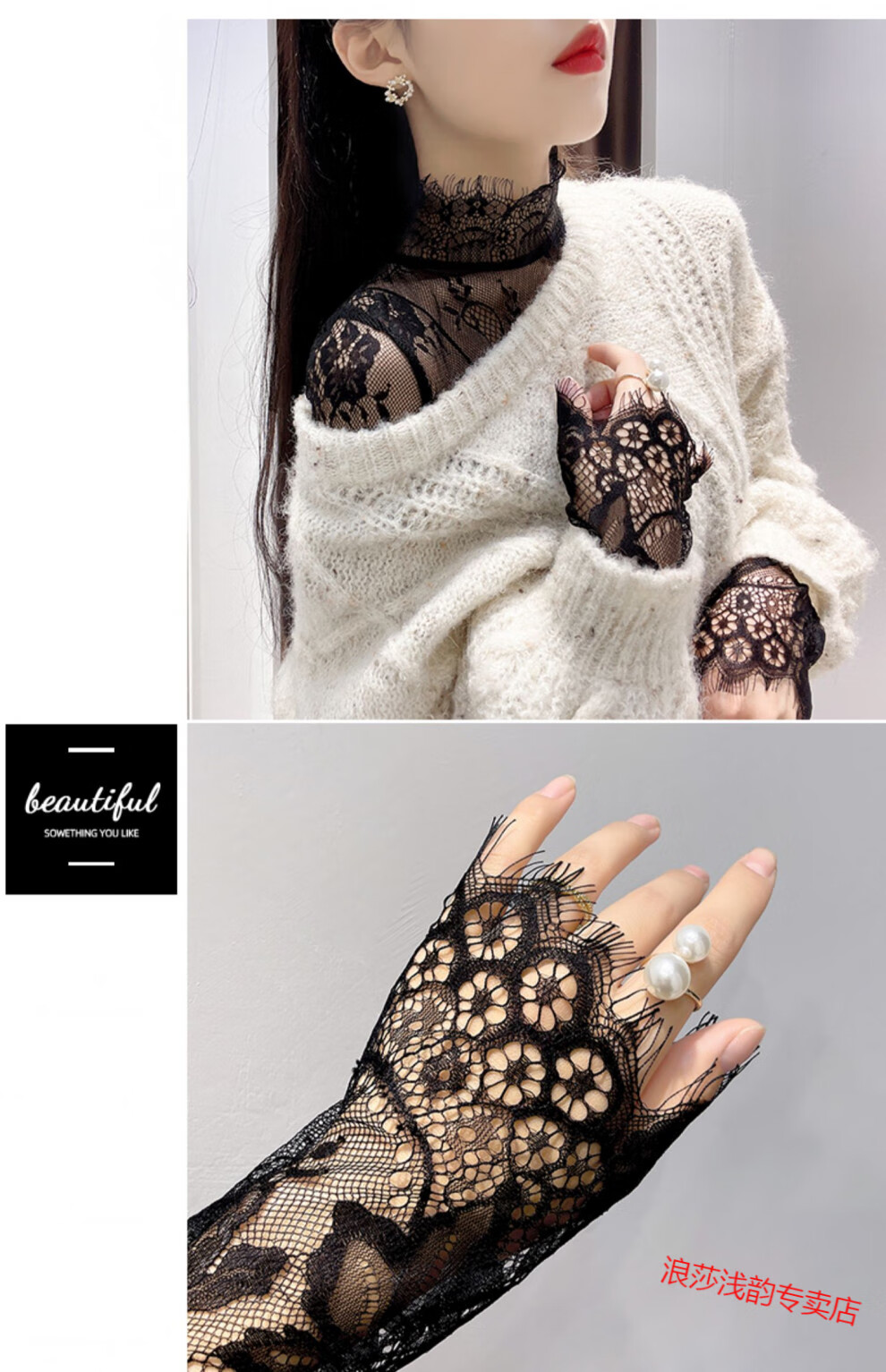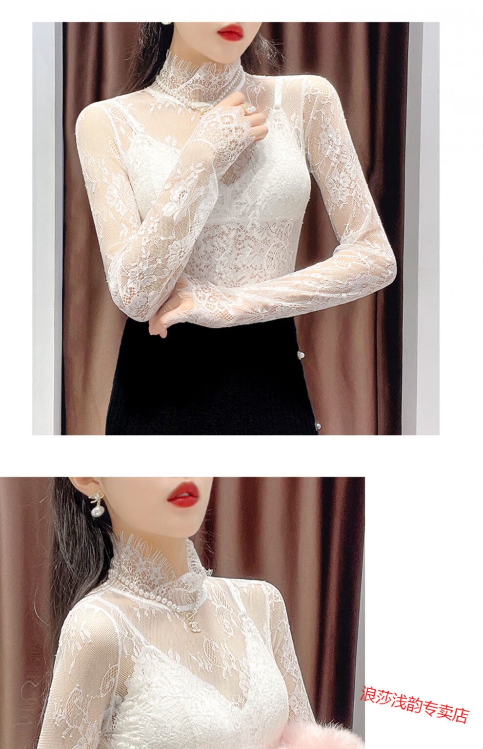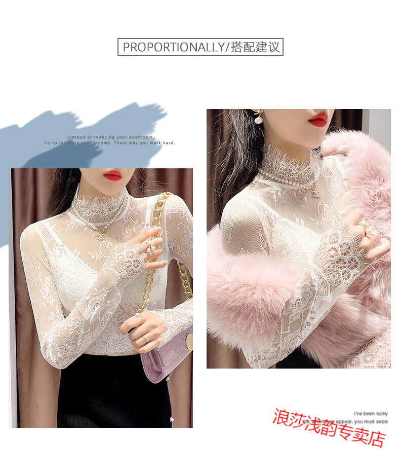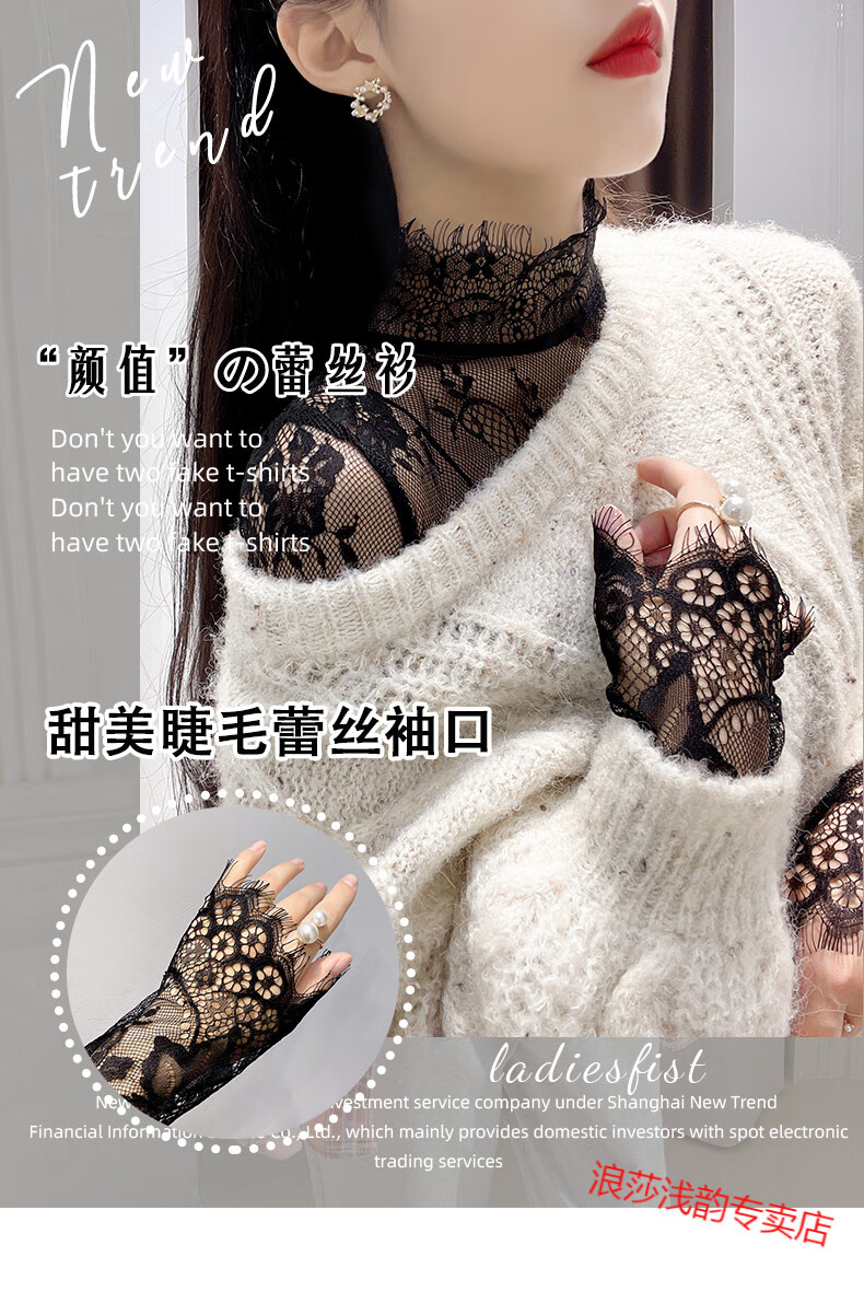 LangSha Half Turtle Collar Eyelash Lace Bottoming Top for Women Autumn and Winter 2025 Western Style Inside Black Tulle Clothes Hollow Mesh Top White L