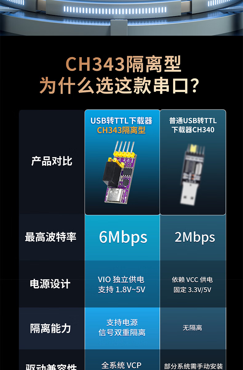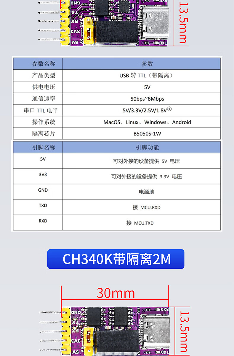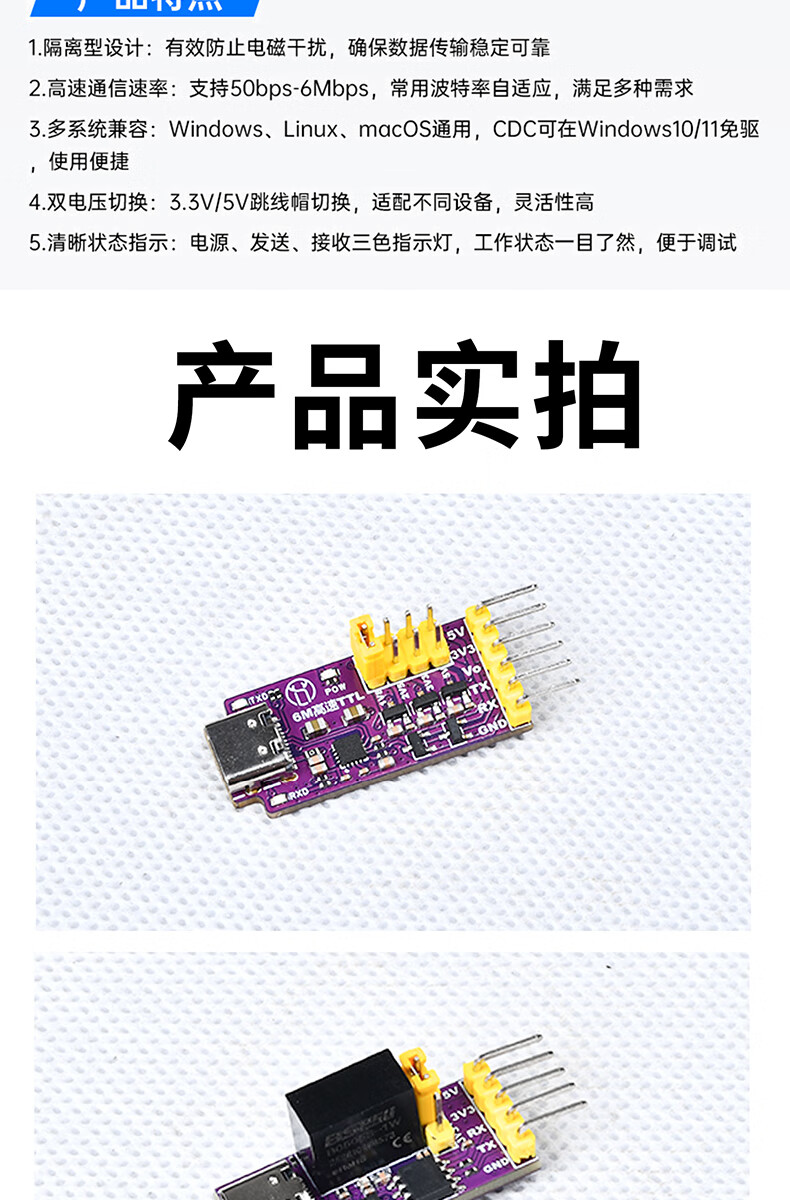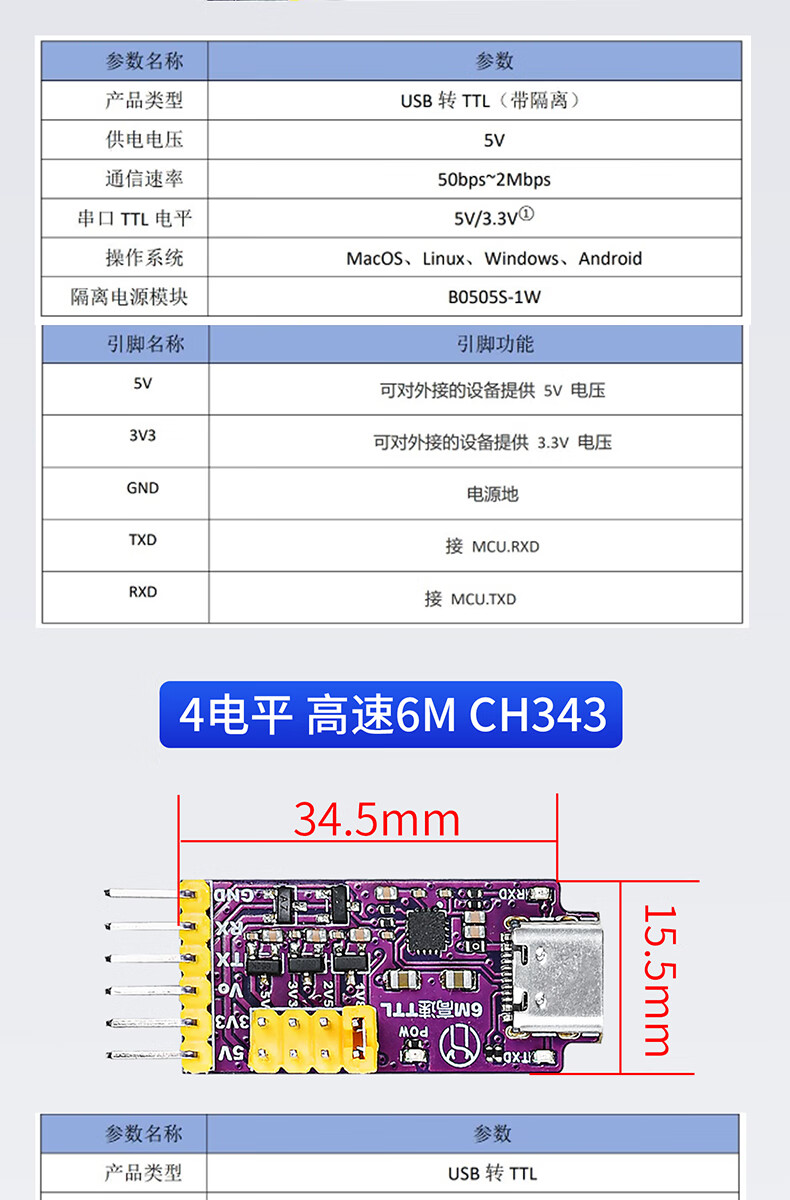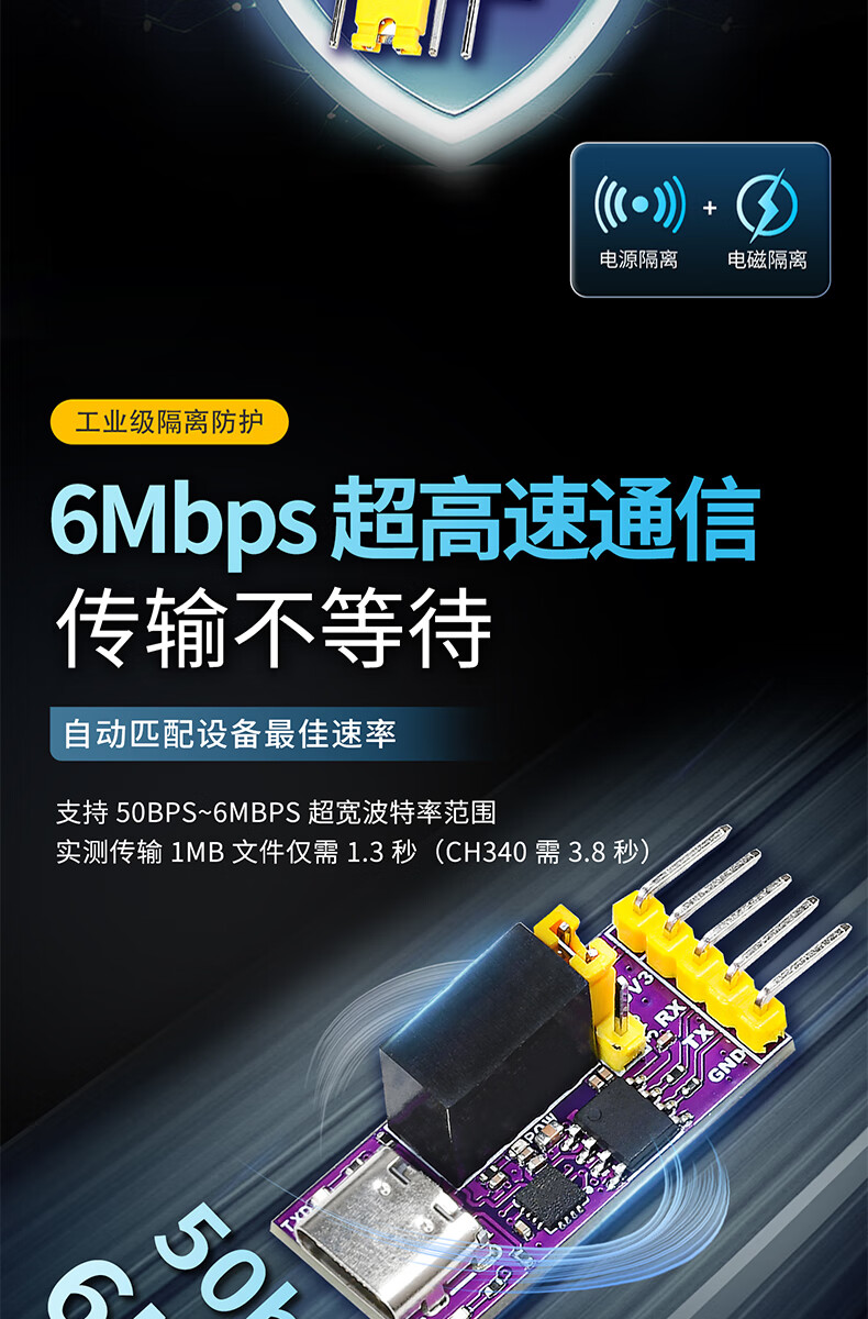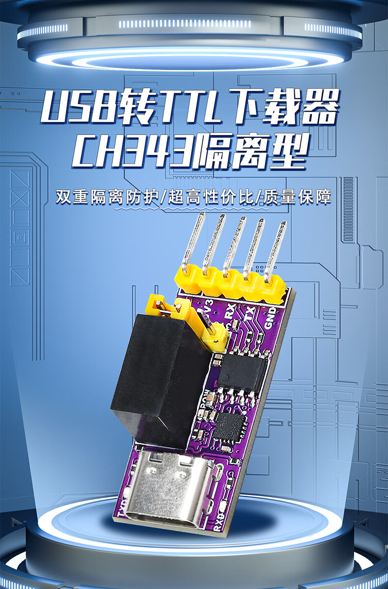 Green Shen CH343 USB to TTL isolated downloader module CH340K isolated emulator comes with fuse support supports Type-C CH343P isolated TTL 6M