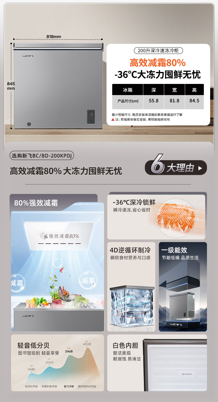 Xinfei (Frestec) 142/200/300 liter full space frost reduction-36 cryogenic quick-freezing household first-class energy-saving freezer color box refrigeration freezing conversion freezer gray BC/BD-200KPDJ 200L