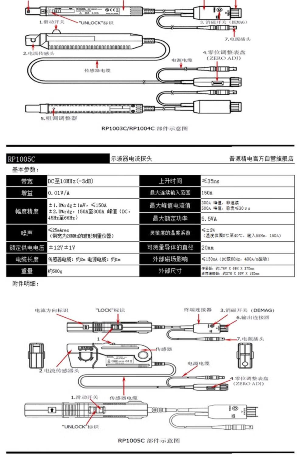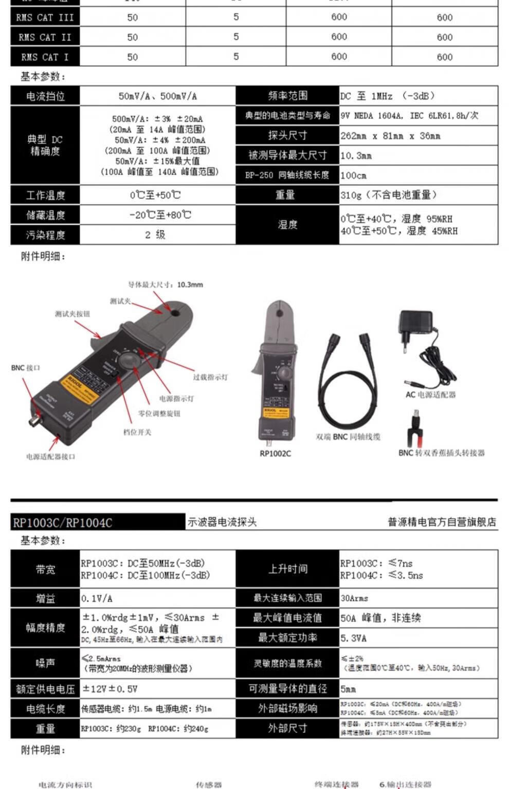 Puyuan Precision/RIGOL oscilloscope multimeter current probe RP1001C/2C/3C/4C/5C/6C RP1003C (50MHz, 30A, need to purchase additional power supply