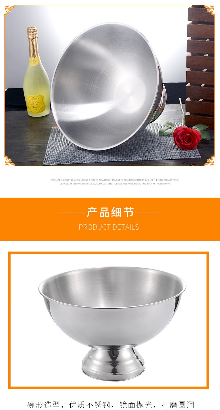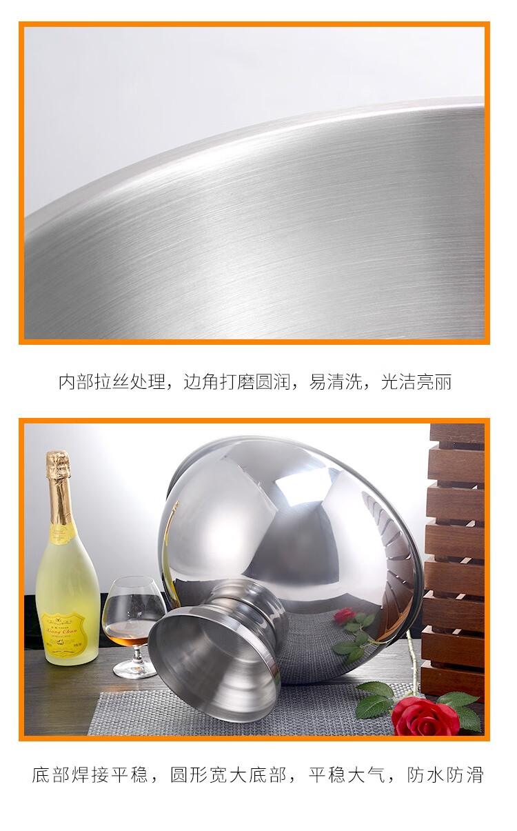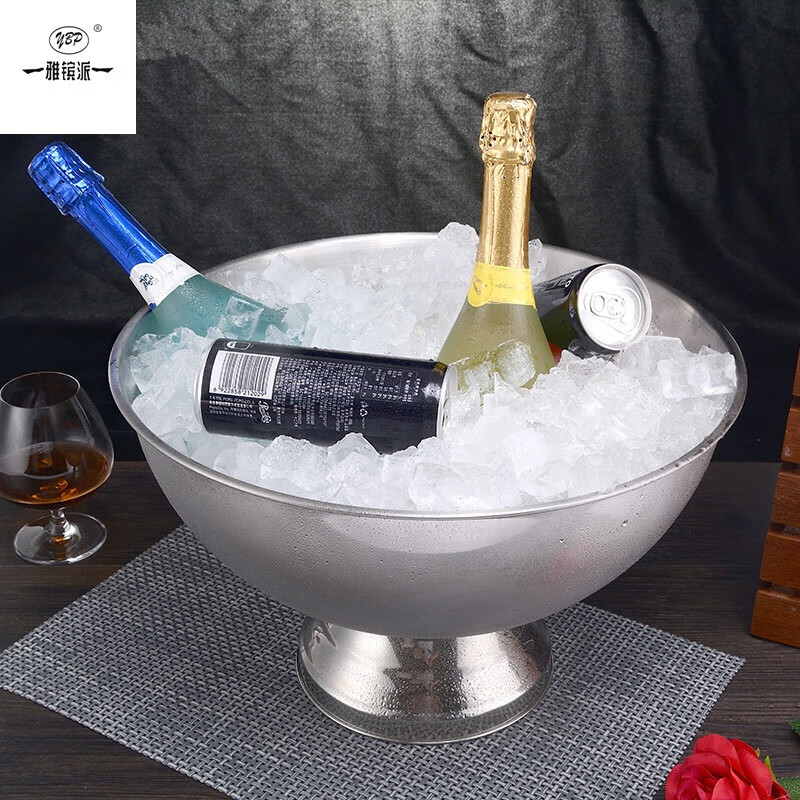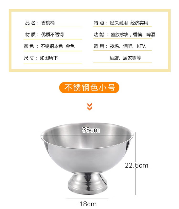 European stainless steel extra large ice bucket practical ice wine bucket bar red wine ice bucket ice grain bucket champagne bucket salad basin small diameter 35cm