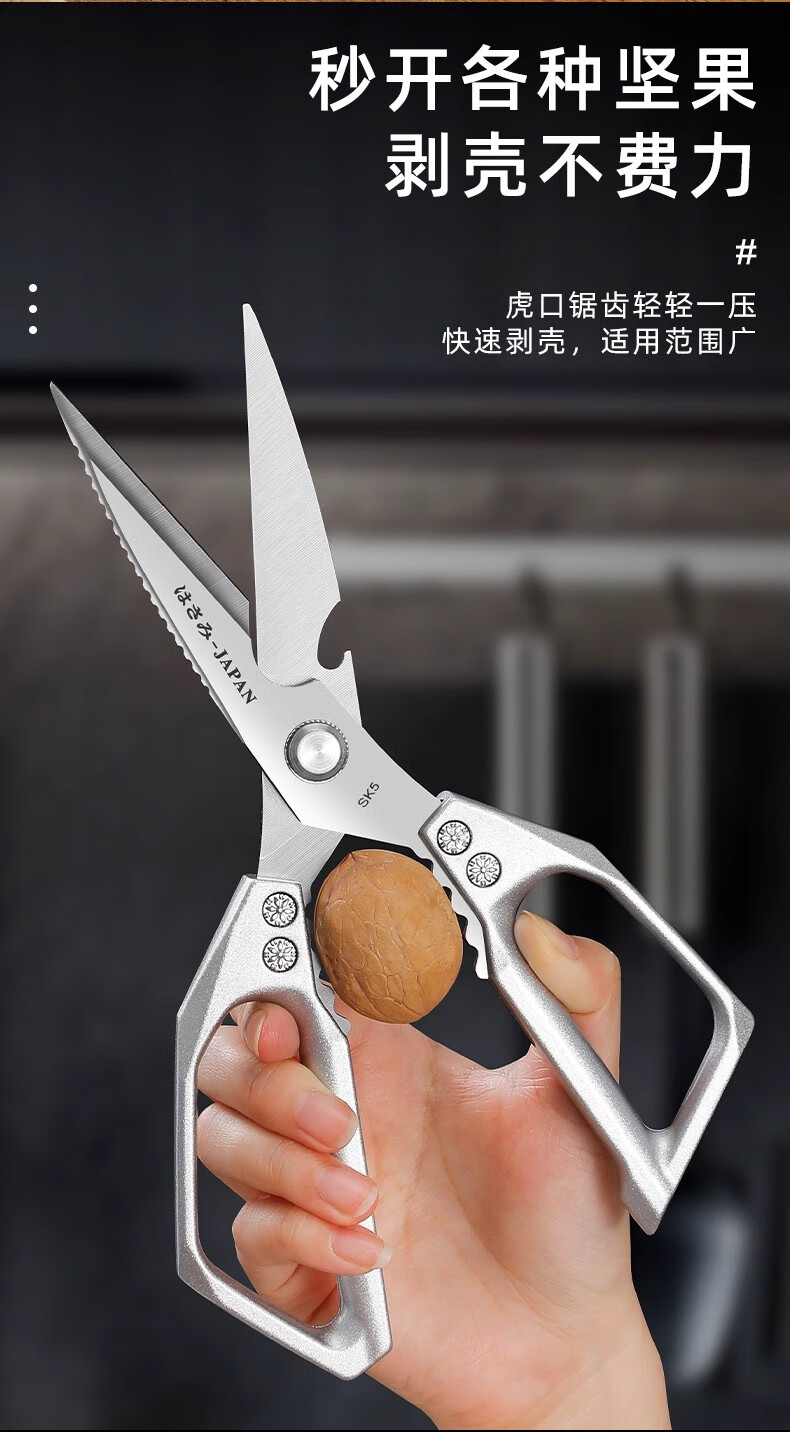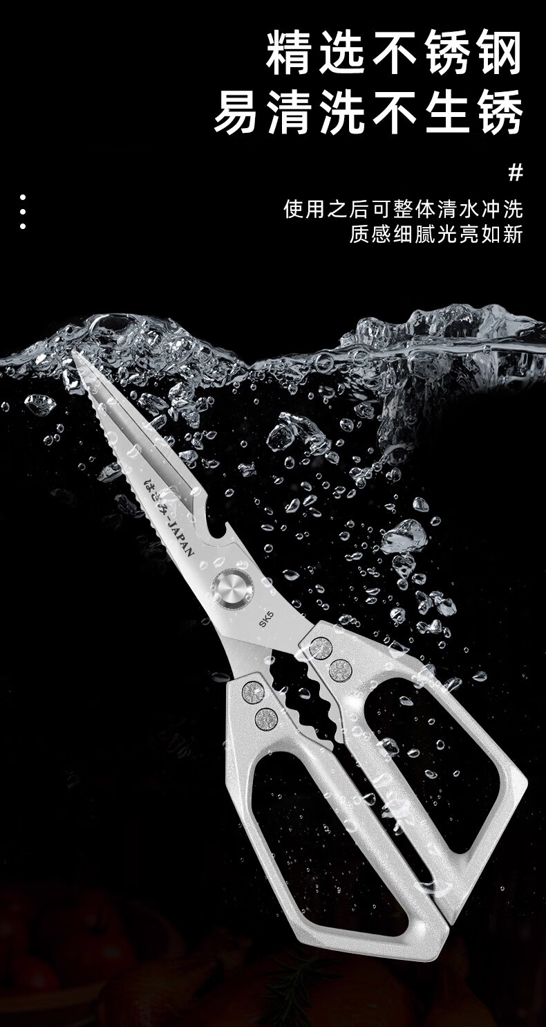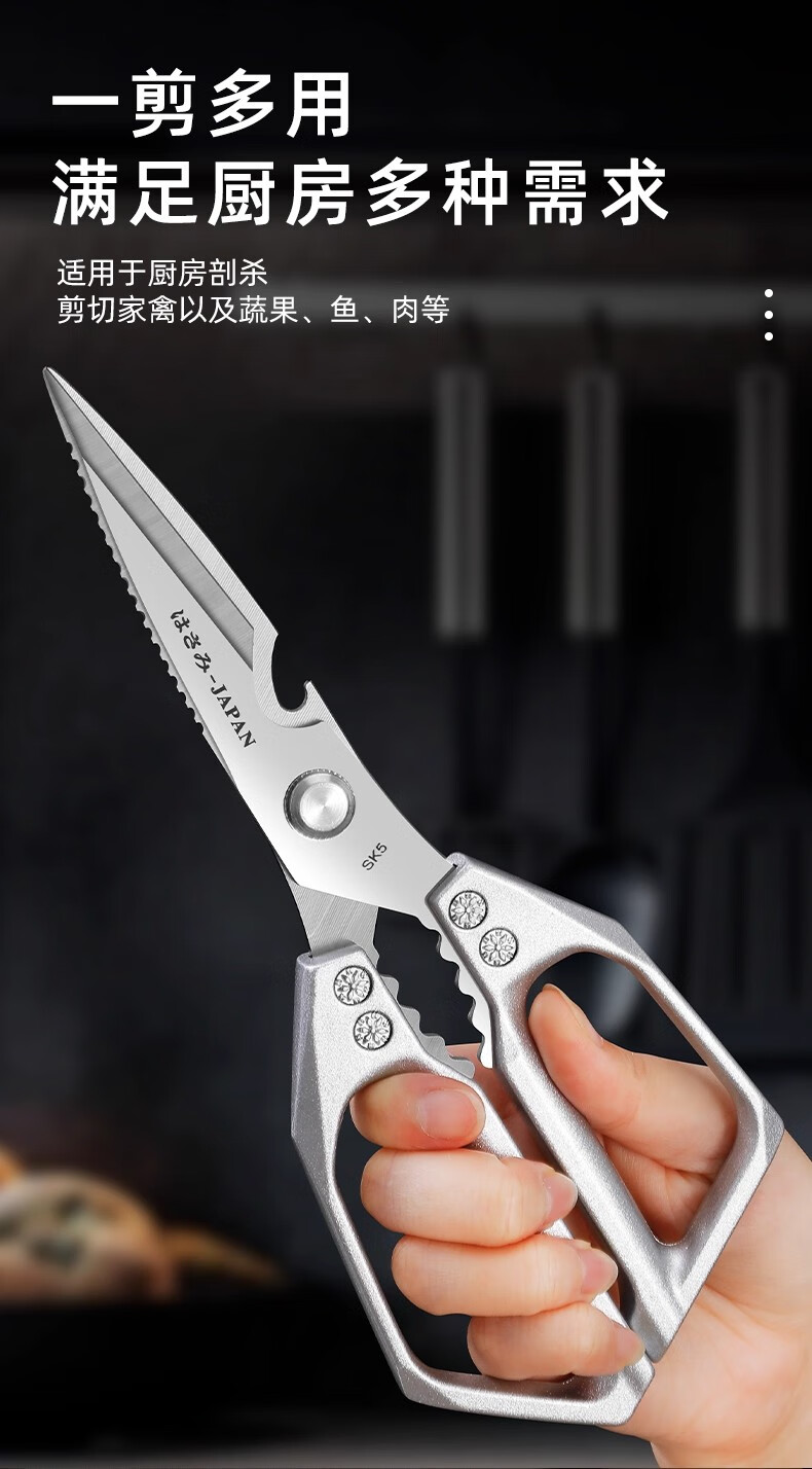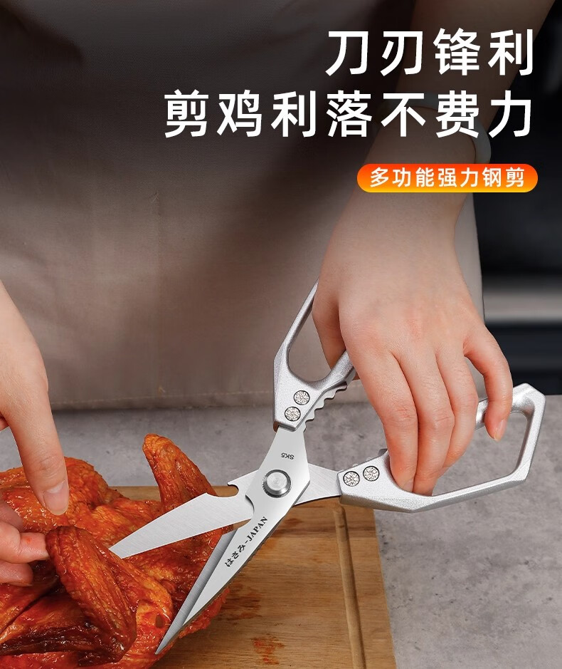 Jingxi Selection Seiko stainless steel kitchen scissors for household multi-functional powerful cutting of chicken, duck and goose bones, new upgraded model SK5 silver kitchen scissors
