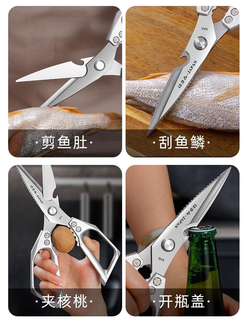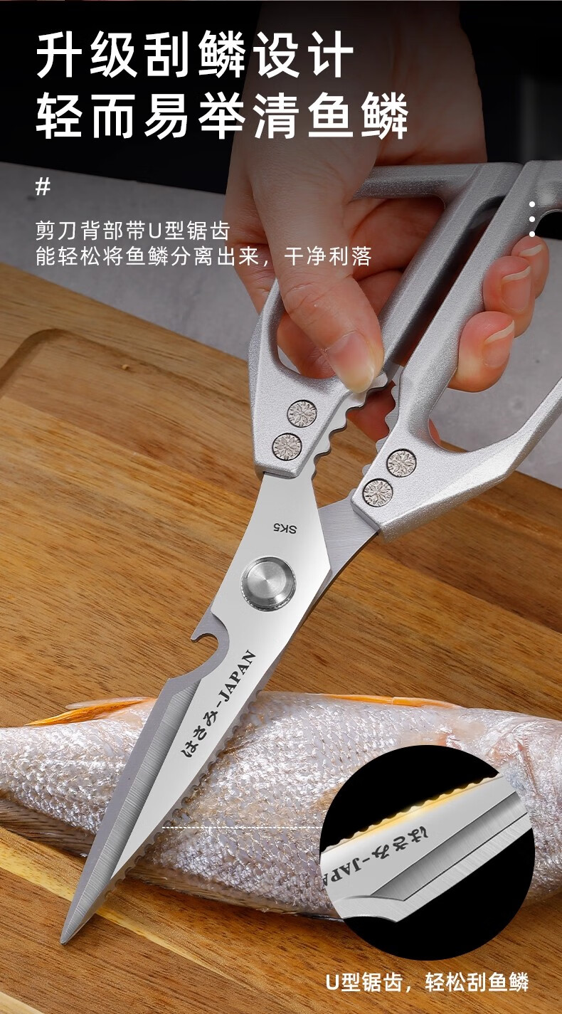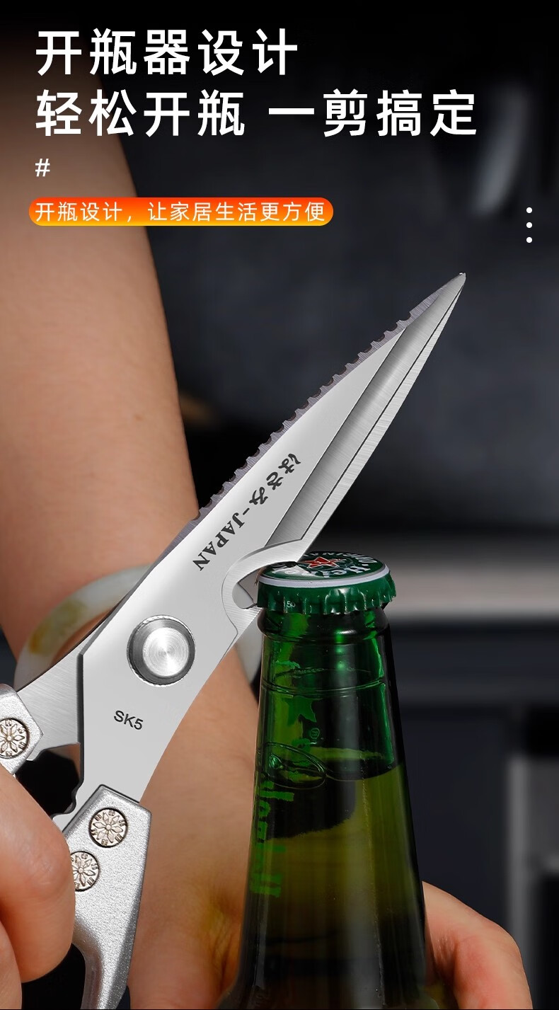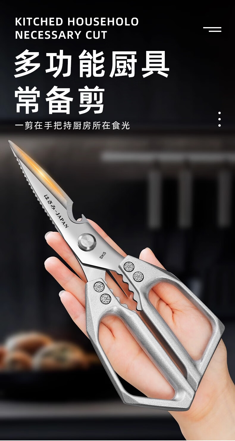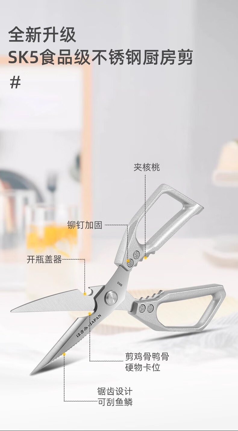 Jingxi Selection Seiko stainless steel kitchen scissors for household multi-functional powerful cutting of chicken, duck and goose bones, new upgraded model SK5 silver kitchen scissors