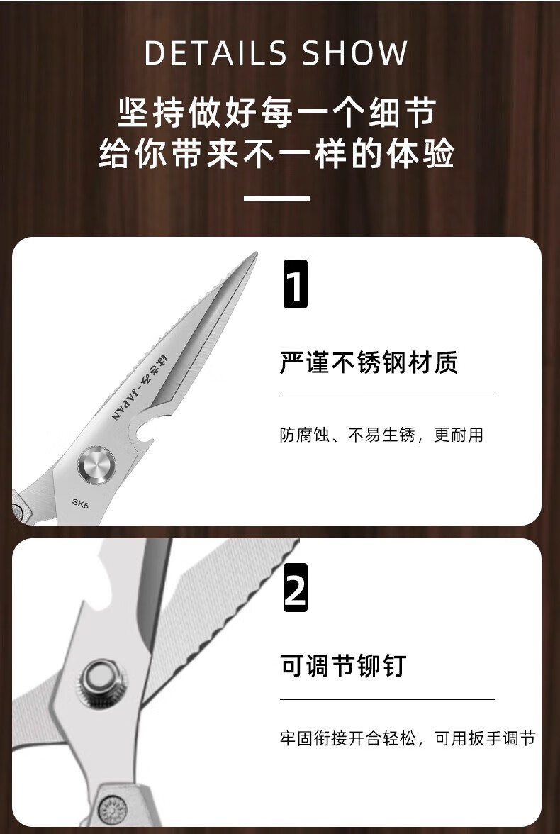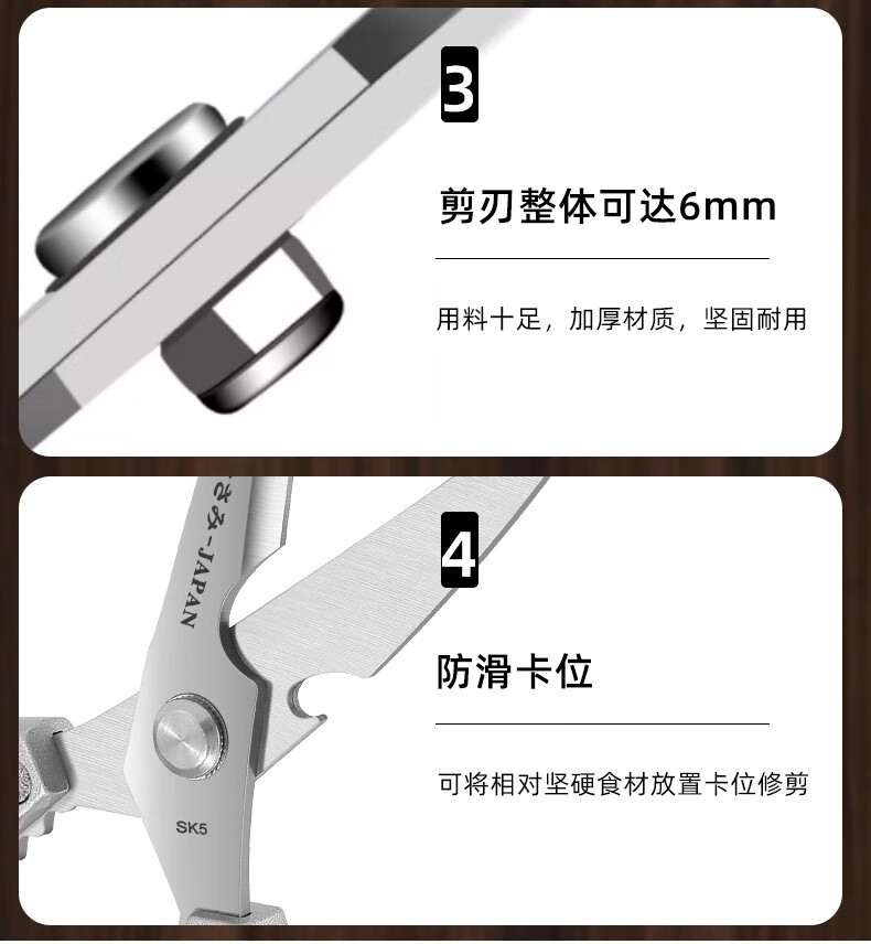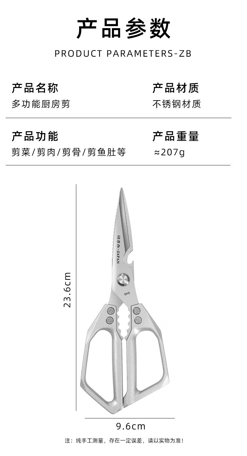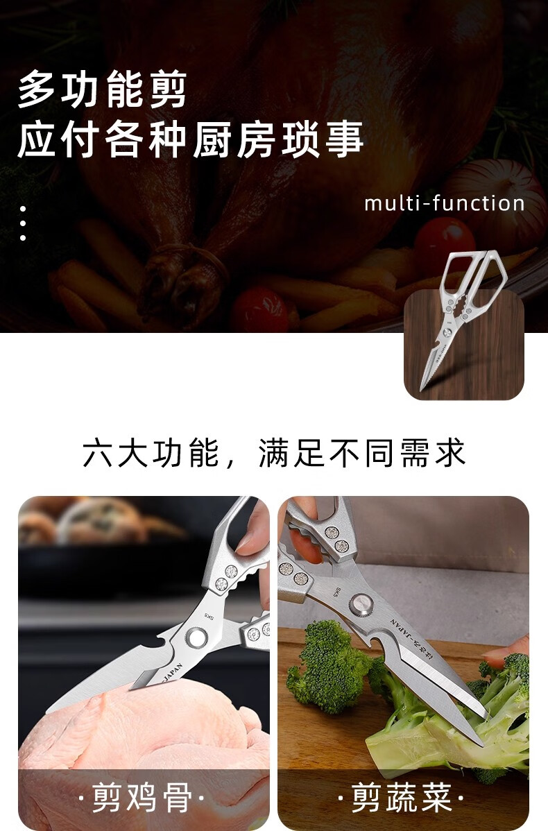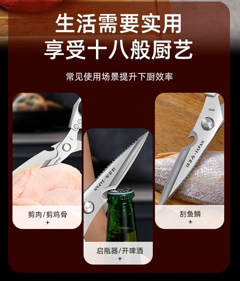 Jingxi Selection Seiko stainless steel kitchen scissors for household multi-functional powerful cutting of chicken, duck and goose bones, new upgraded model SK5 silver kitchen scissors