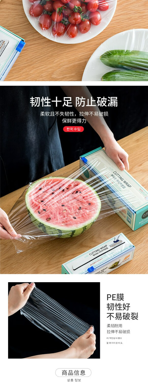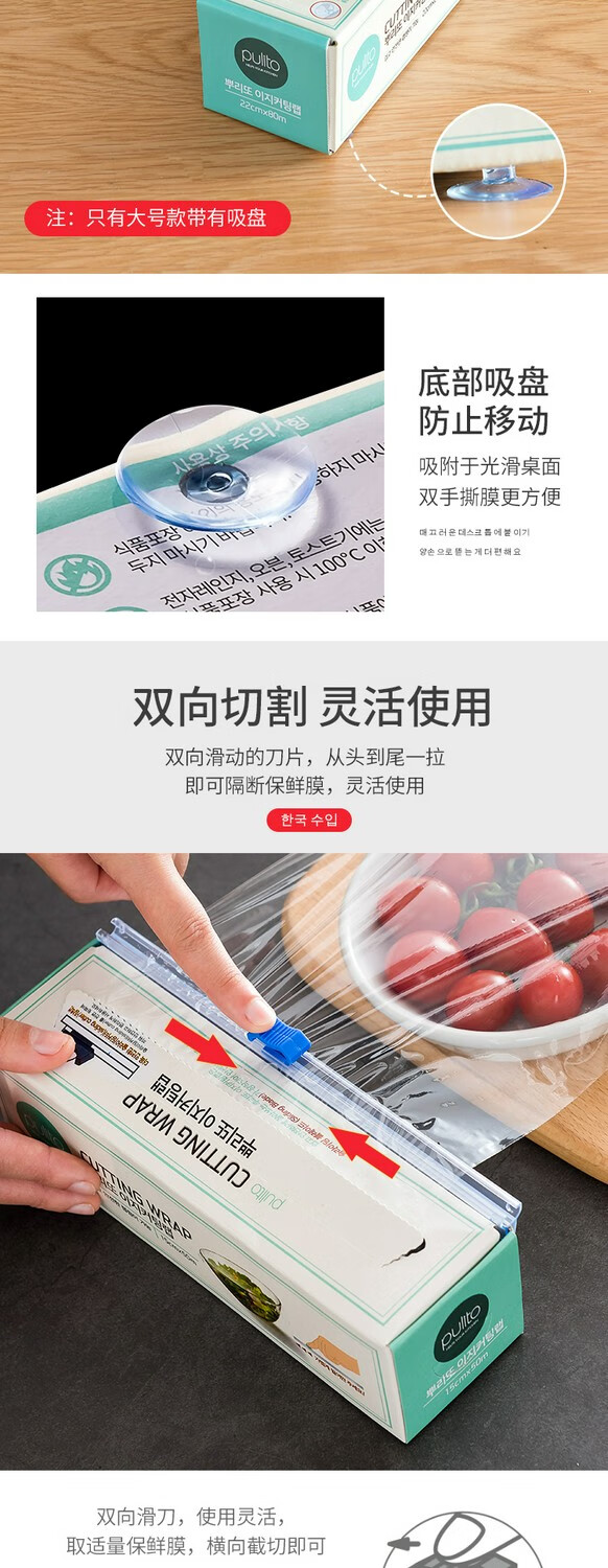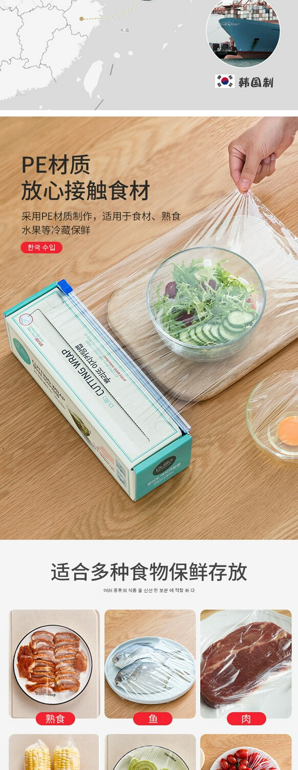 Hanoufei Korean kitchen cling film household sliding knife type with cutter refrigerator food special protective film box large 80 meters with suction cup 1