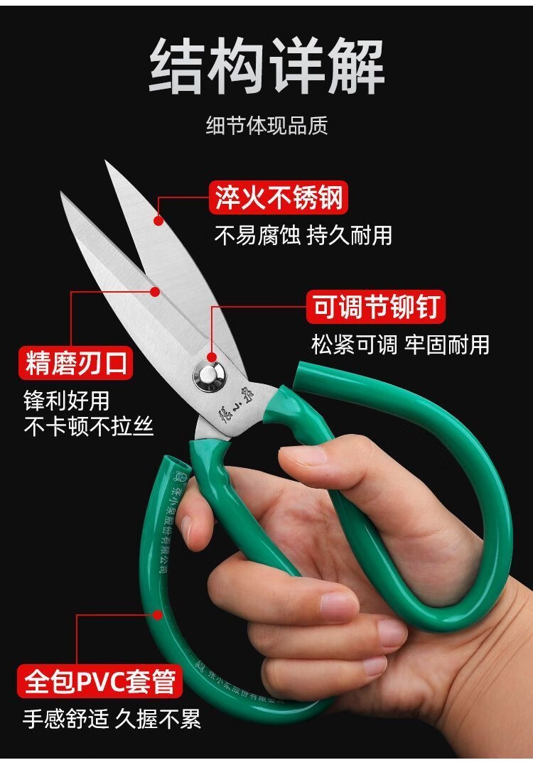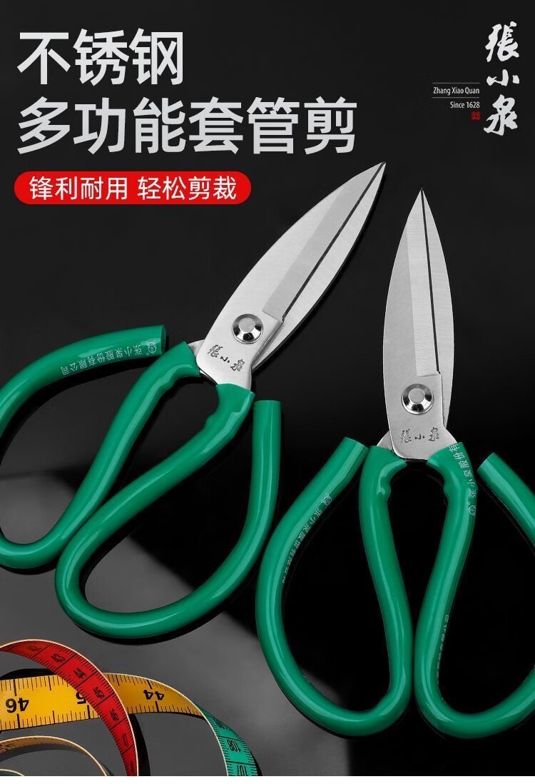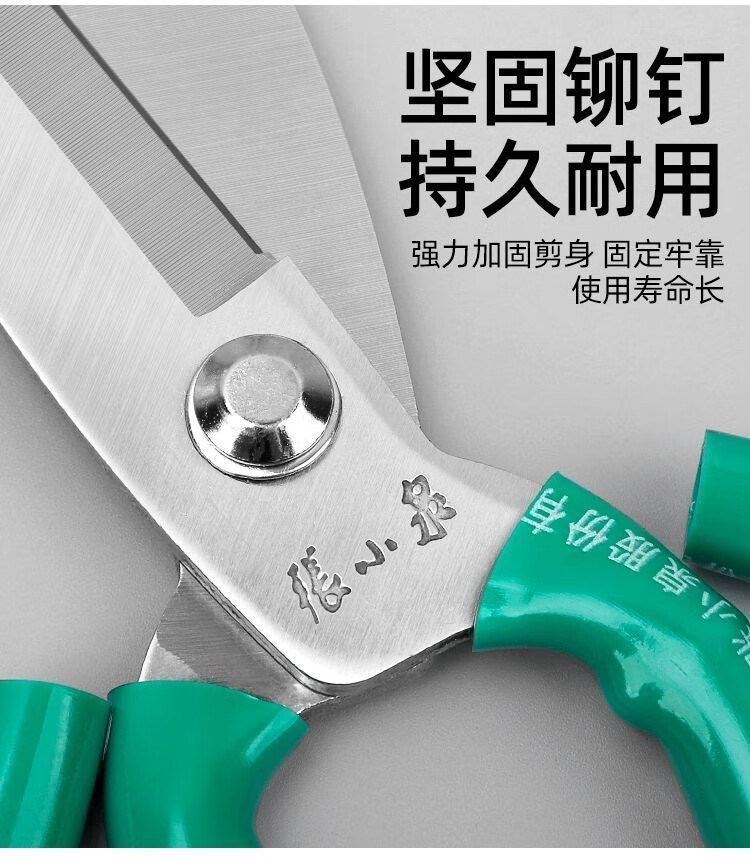 Tailor Zhang Xiaoquan cuts from cloth to curtains and from sewing to sewing scissors, industrial scissors, garden scissors, strong steel leather scissors, large size, about 23.5cm, industrial scissors, leather handles, blue and green, randomly distributed