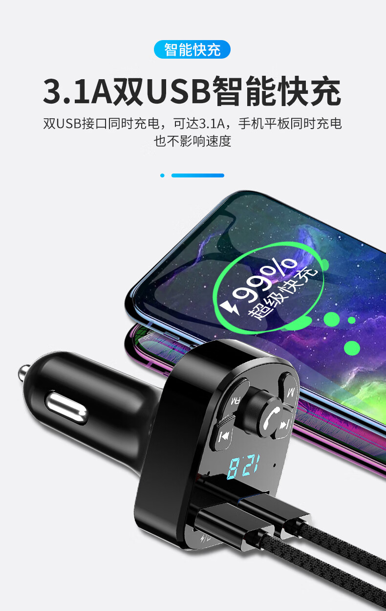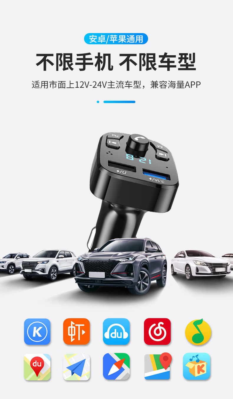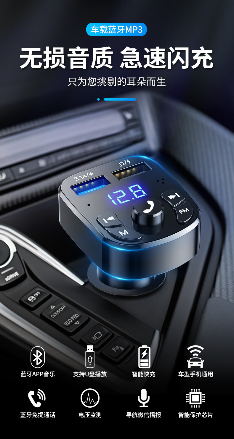 Car Bluetooth Receiver Lossless Sound Quality Cigarette Lighter Bluetooth Car Player Car Supplies Charging AA Bluetooth 5.0 Black Fast Charging Version (Active Price)