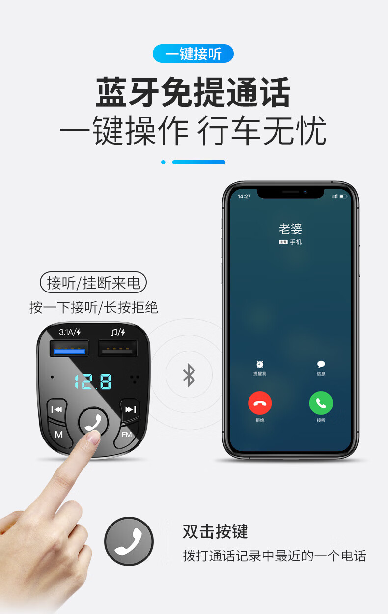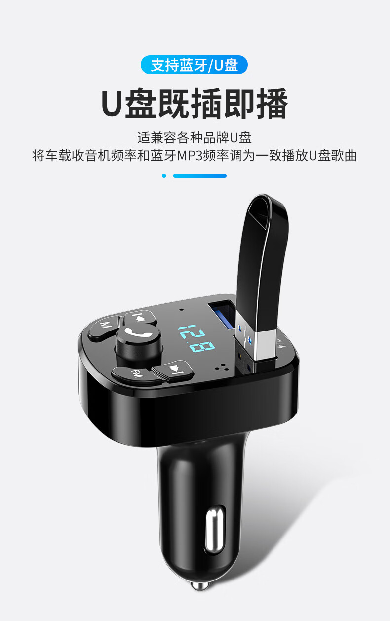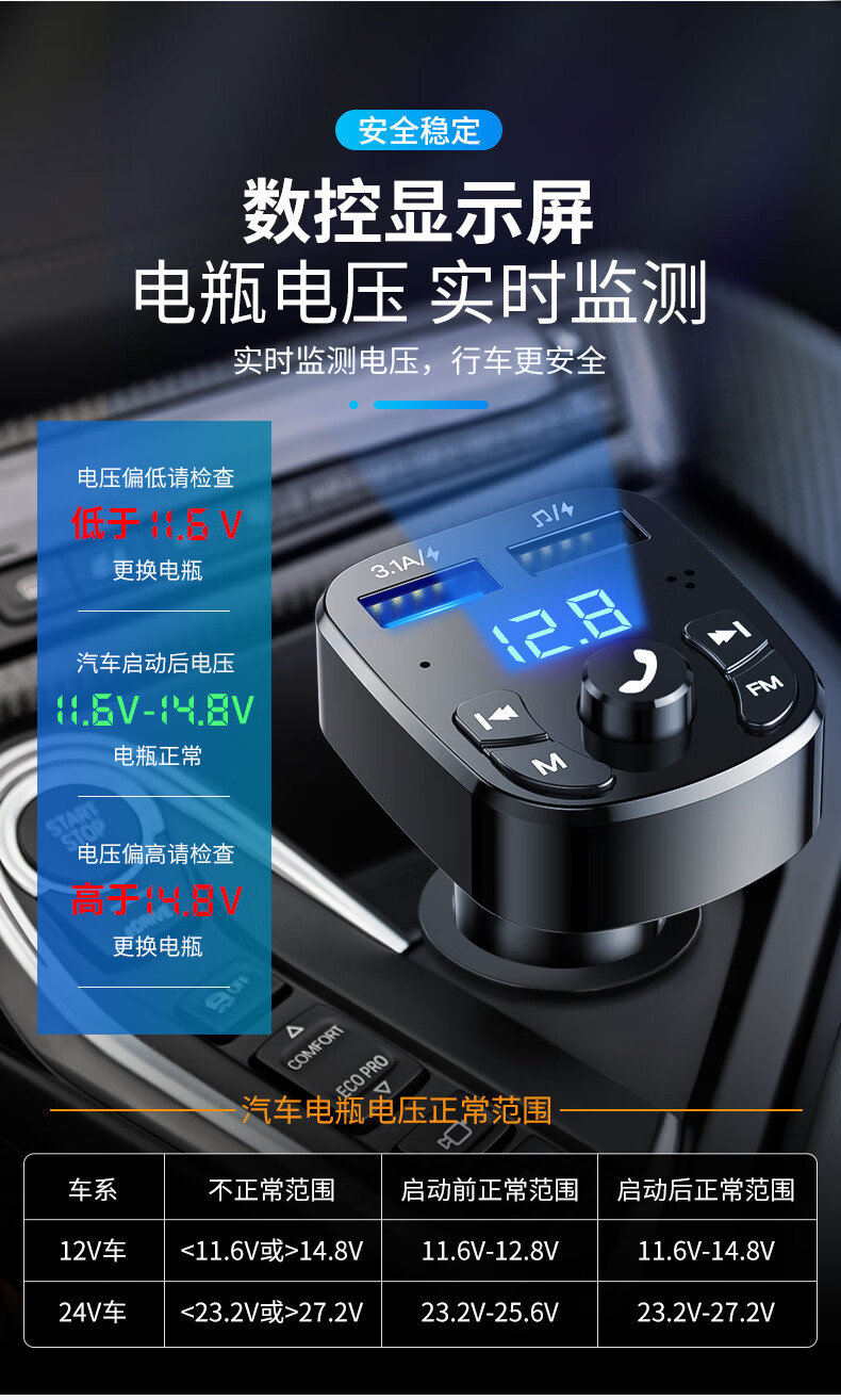 Car Bluetooth Receiver Lossless Sound Quality Cigarette Lighter Bluetooth Car Player Car Supplies Charging AA Bluetooth 5.0 Black Fast Charging Version (Active Price)