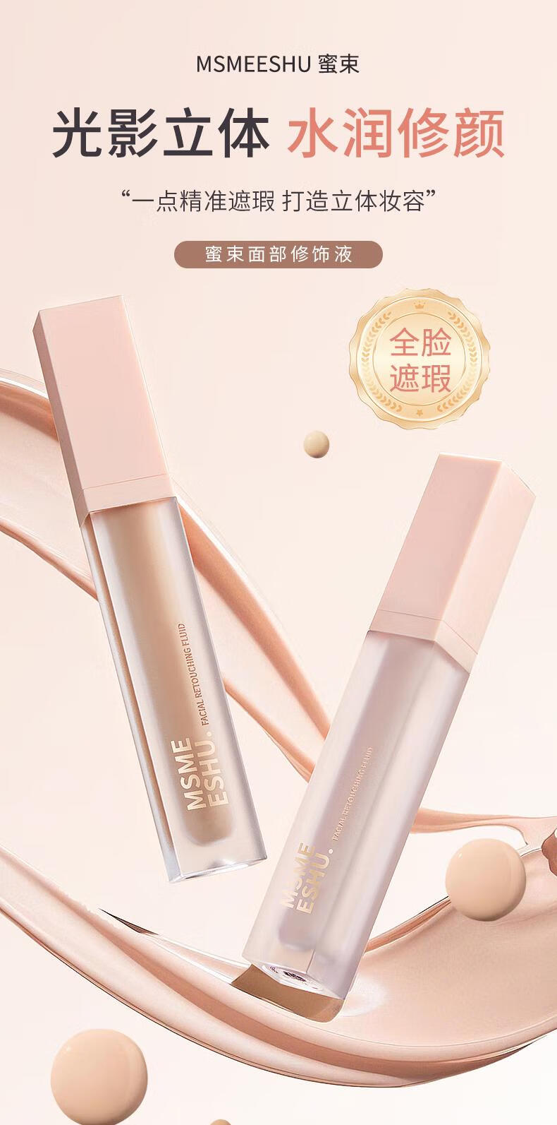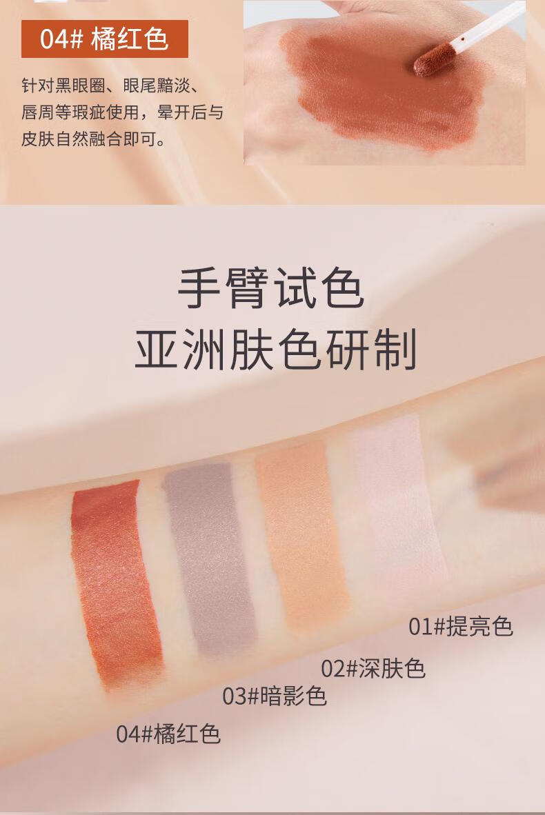 Honey Bundle Facial Modification Liquid Color Transfer Liquid Flagship Authentic Concealer Brightening Three-dimensional Modification Waterproof Long-lasting Makeup Hydrating Lightweight Novice 04# Orange + Powder Puff + Functional Brush * 3