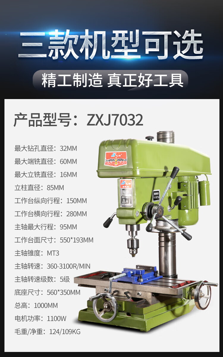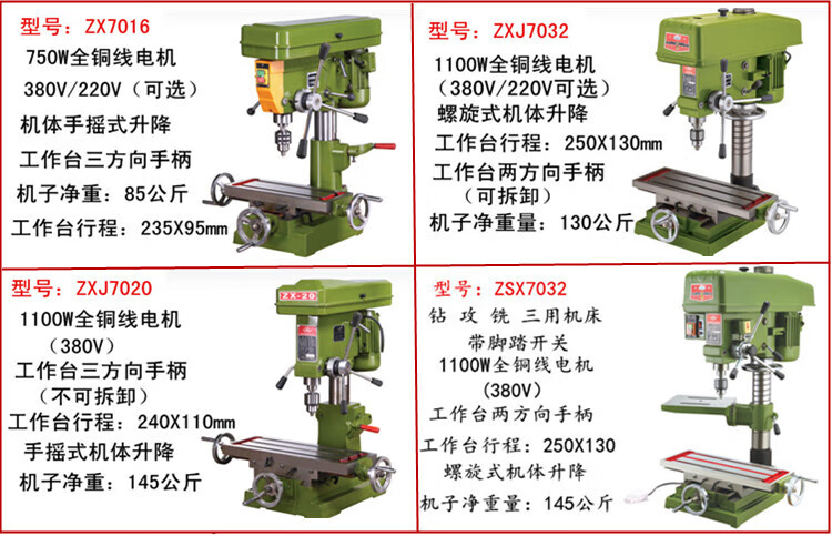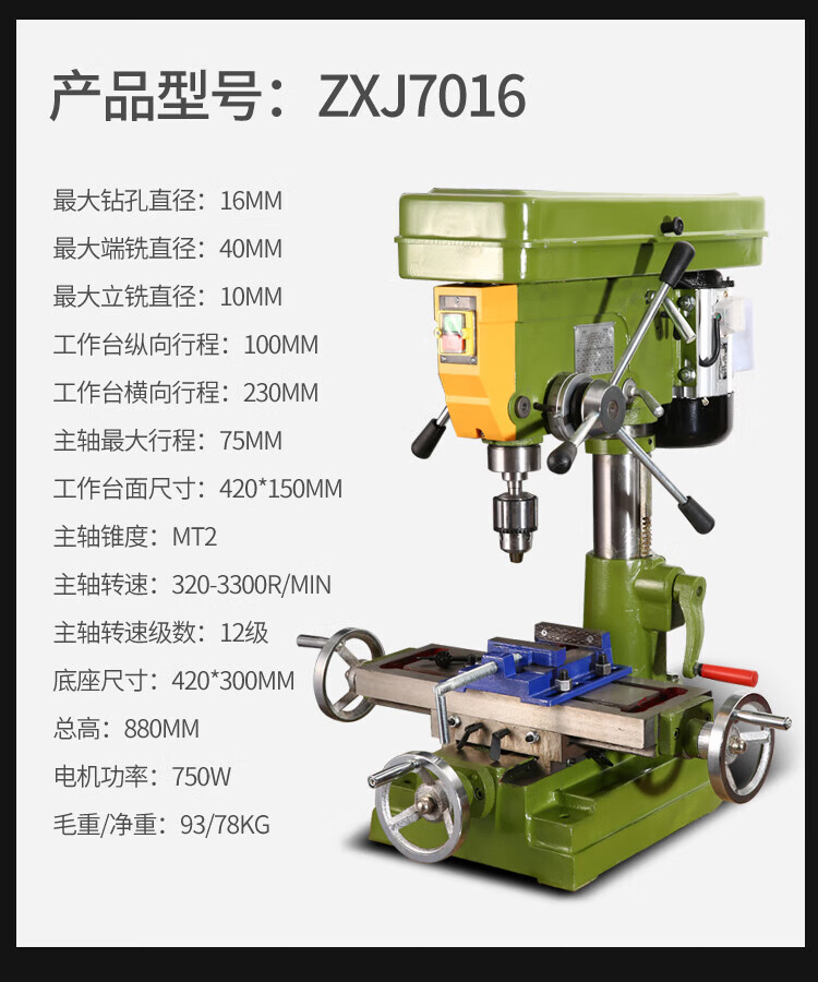 Multifunctional desktop drilling and milling machine industrial bench drill tapping and drilling integrated hardware cross workbench ZX7016_380V