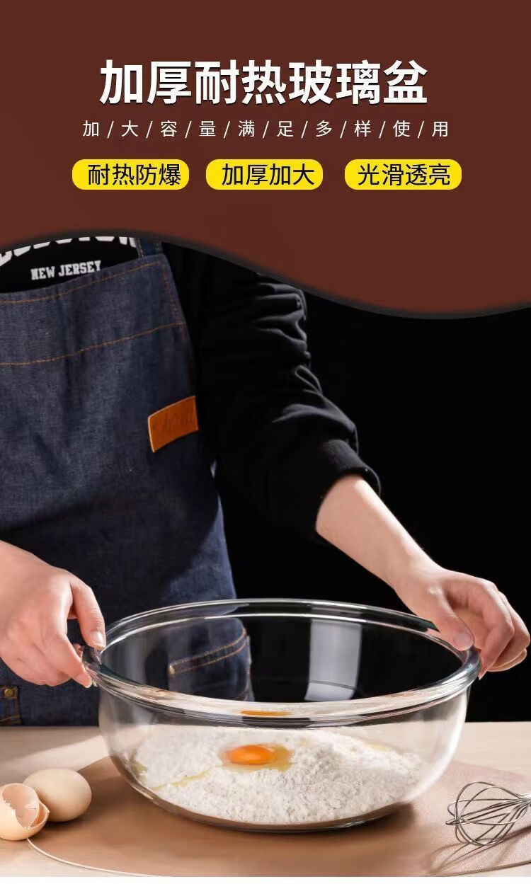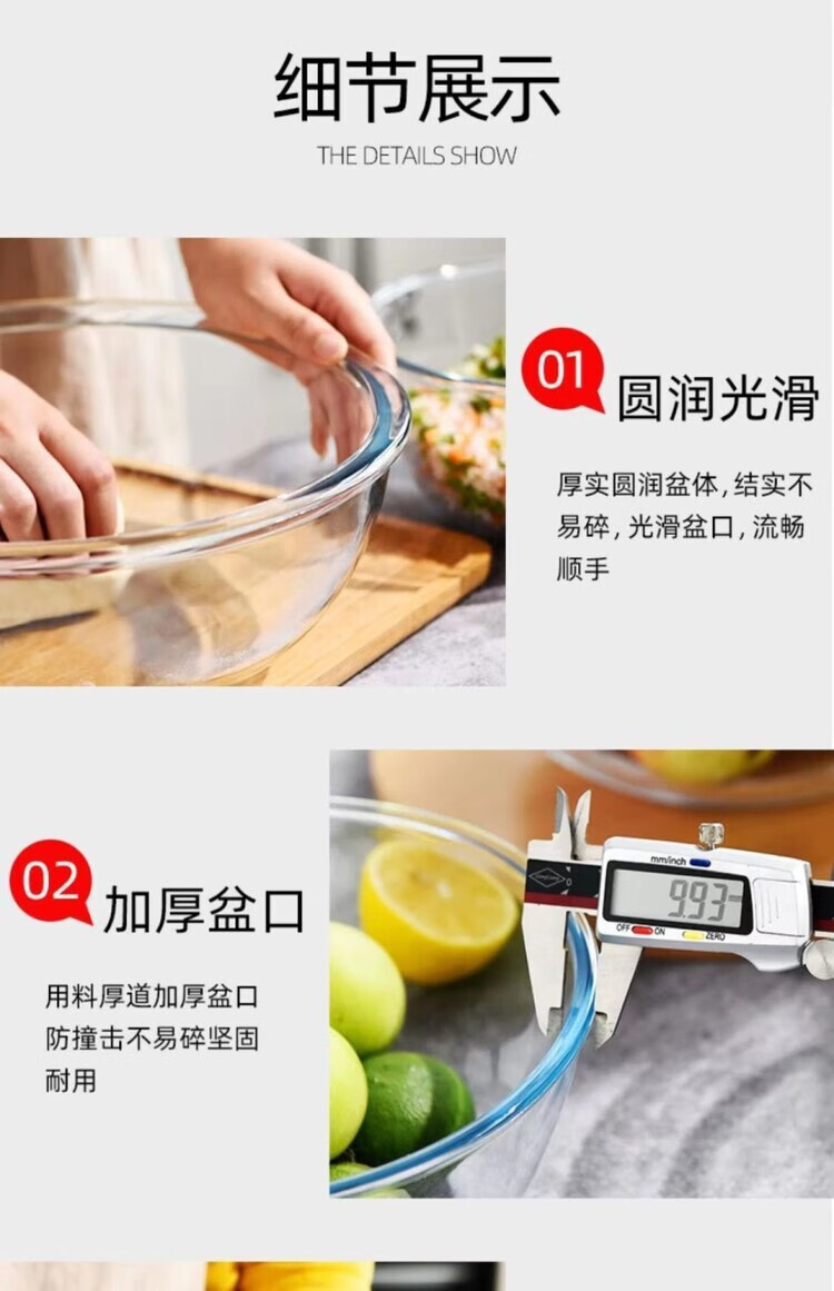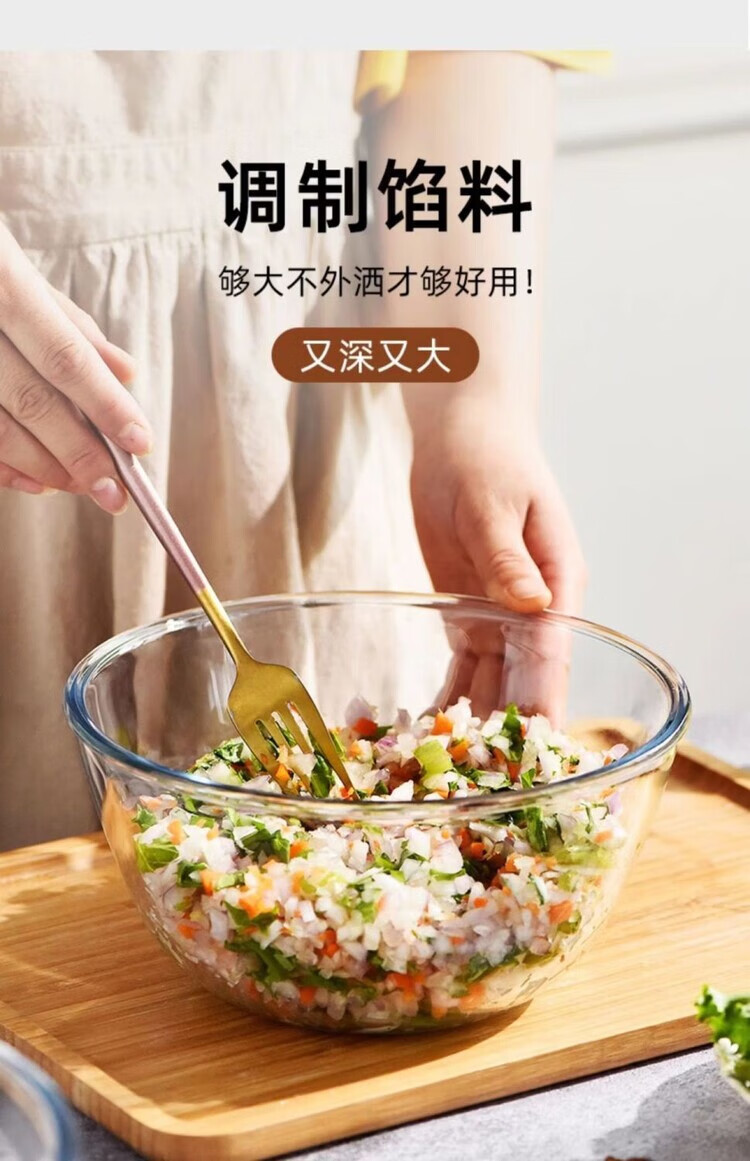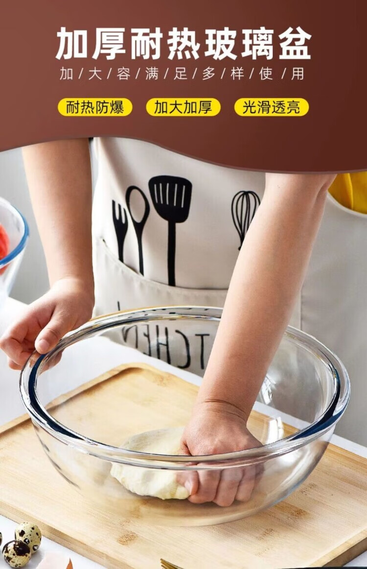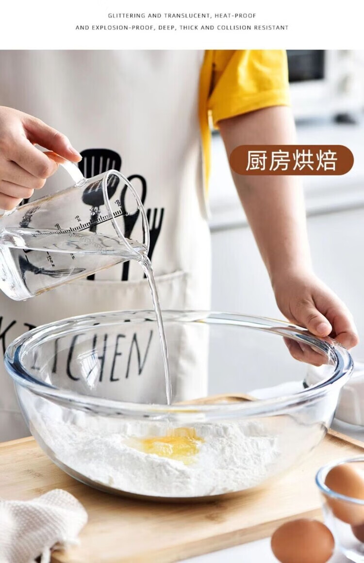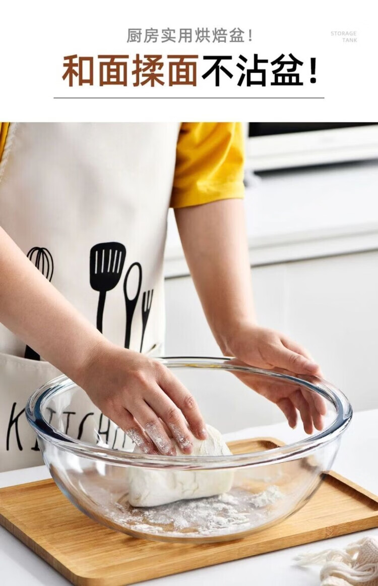 Taixige thickened high borosilicate glass bowl, transparent salad bowl, large and non-stick basin, baking and egg bowl, high temperature resistant 3200ml