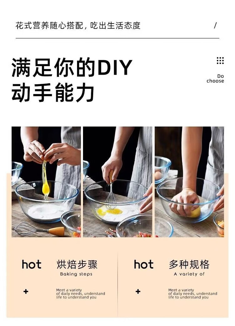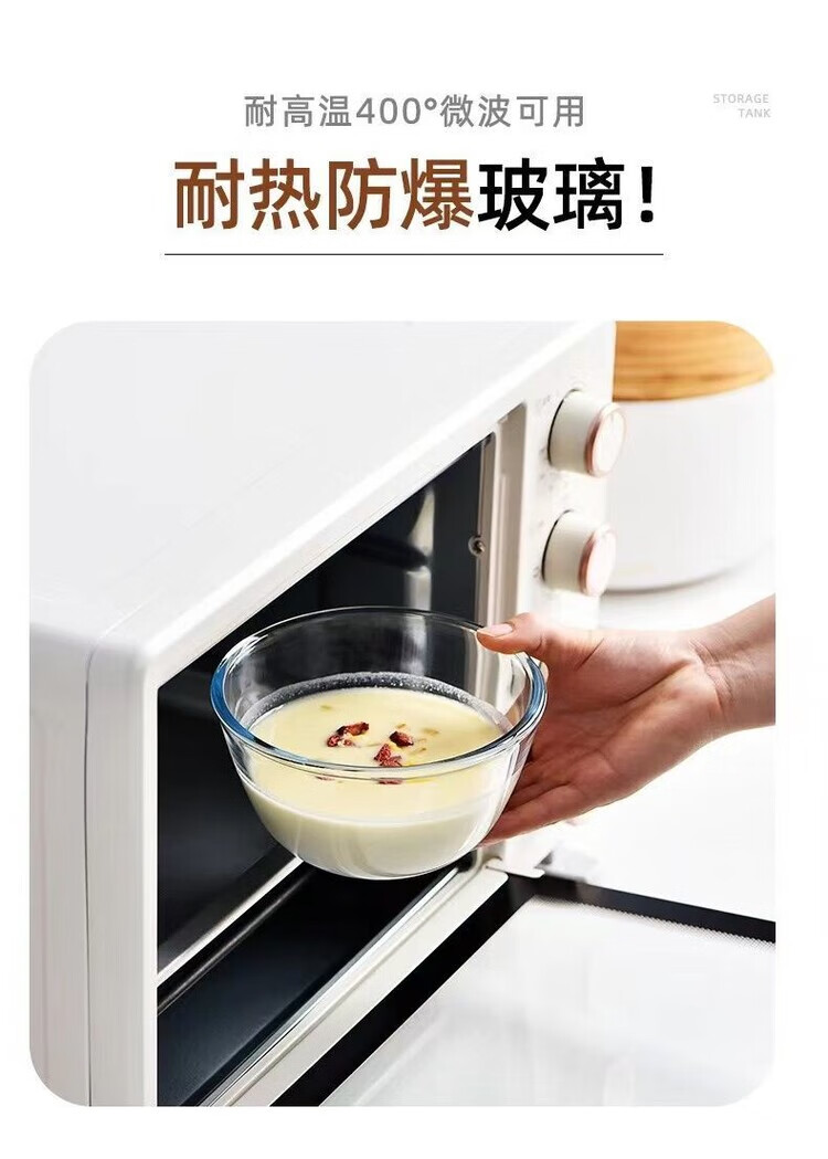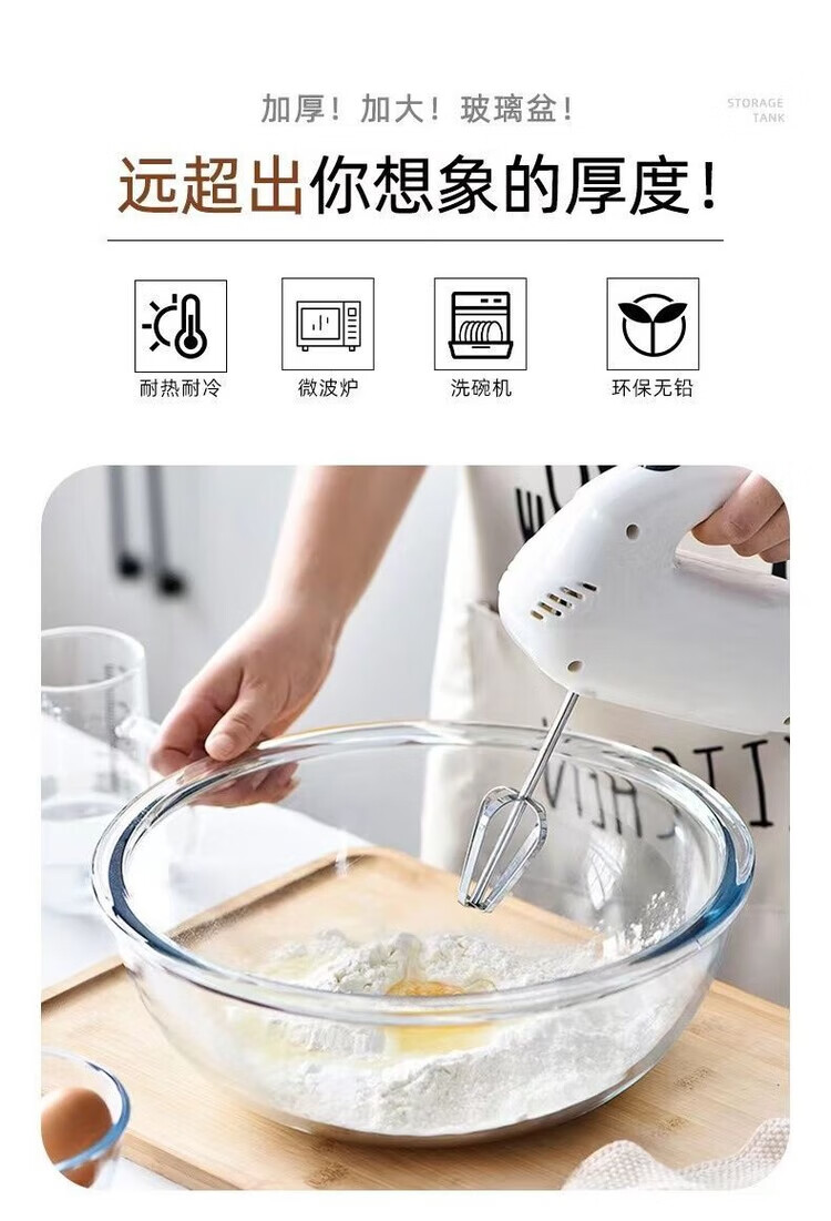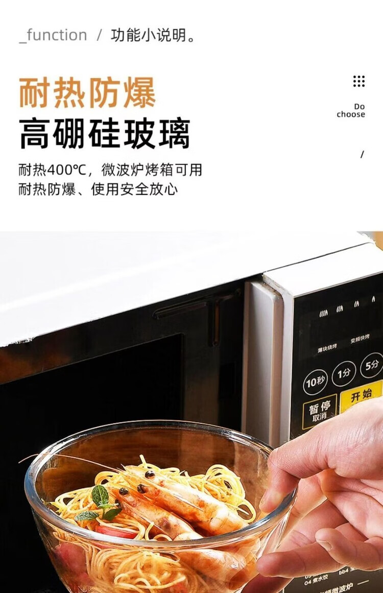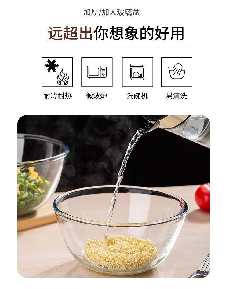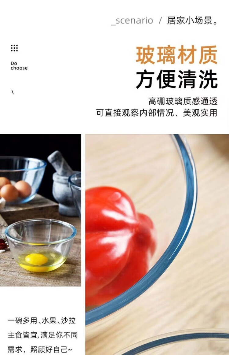 Taixige thickened high borosilicate glass bowl, transparent salad bowl, large and non-stick basin, baking and egg bowl, high temperature resistant 3200ml