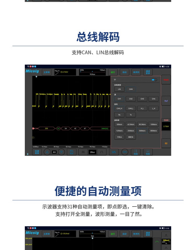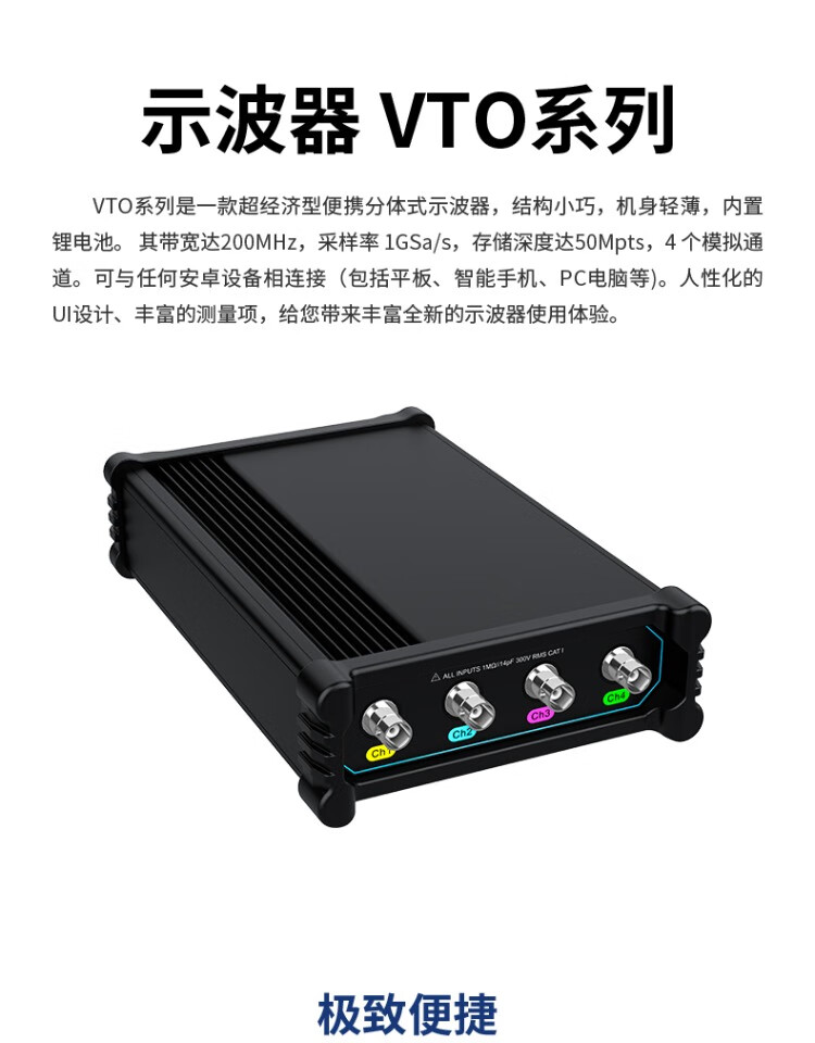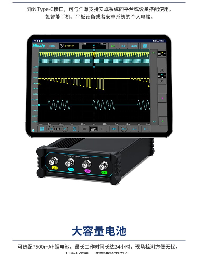 MICSIGVTO2004 portable USB virtual oscilloscope 200M bandwidth can be connected to all Android devices VTO2004 includes battery (can work for 24 hours)