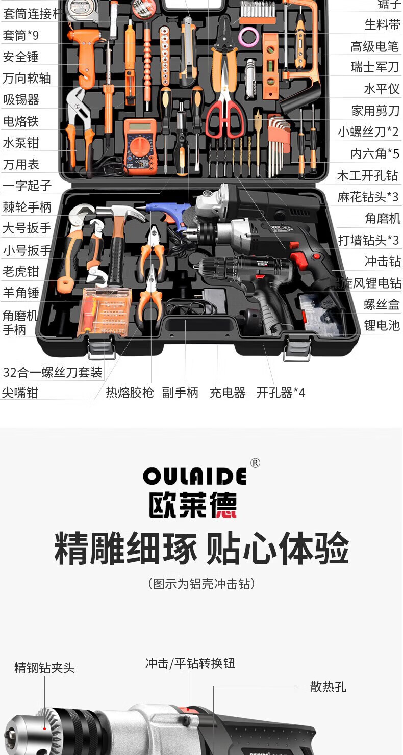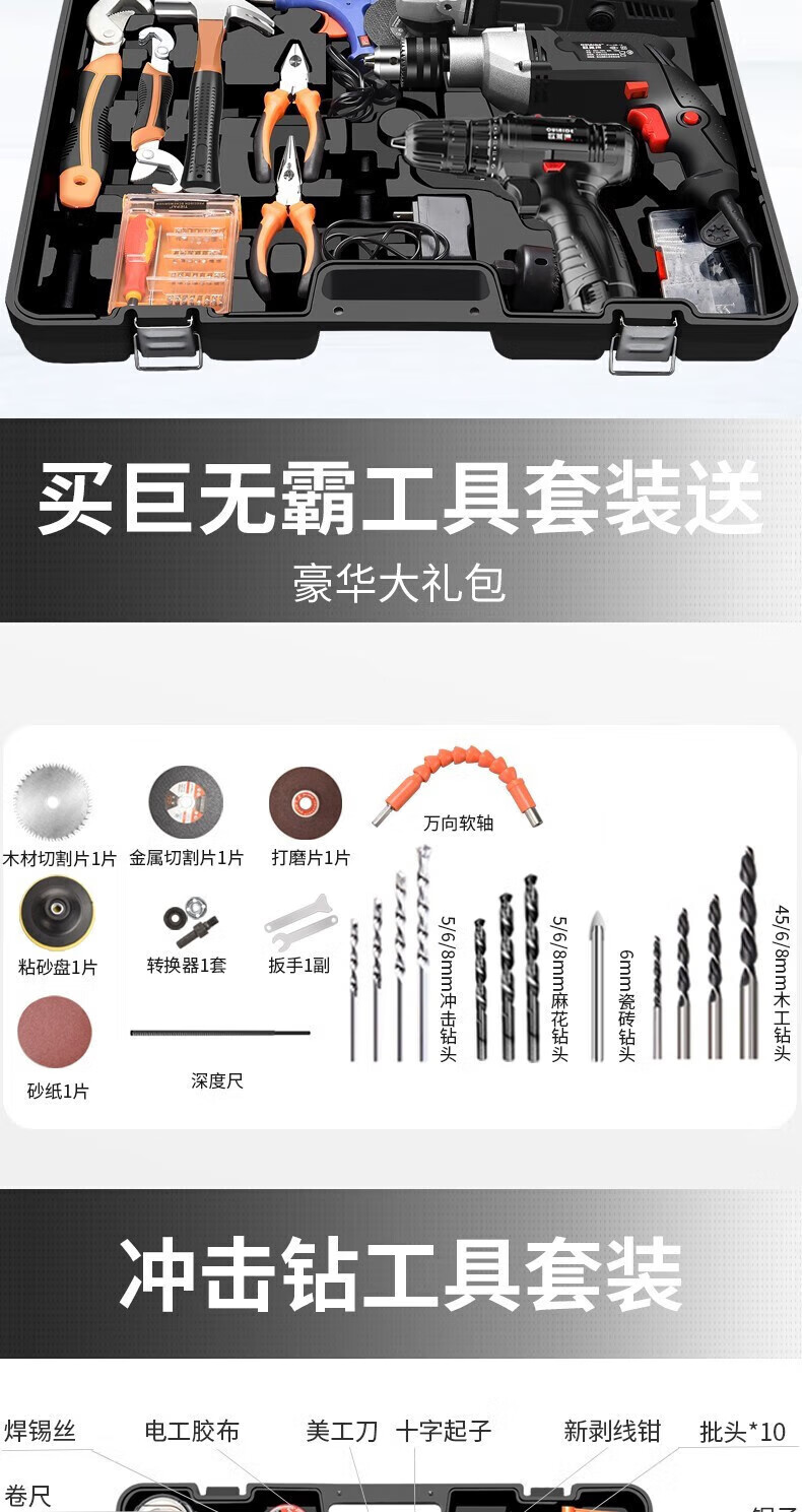 Borechi uses woodworking box electrician repair combination electrician repair impact drill supreme overlord set three-in-one set complete set as a gift