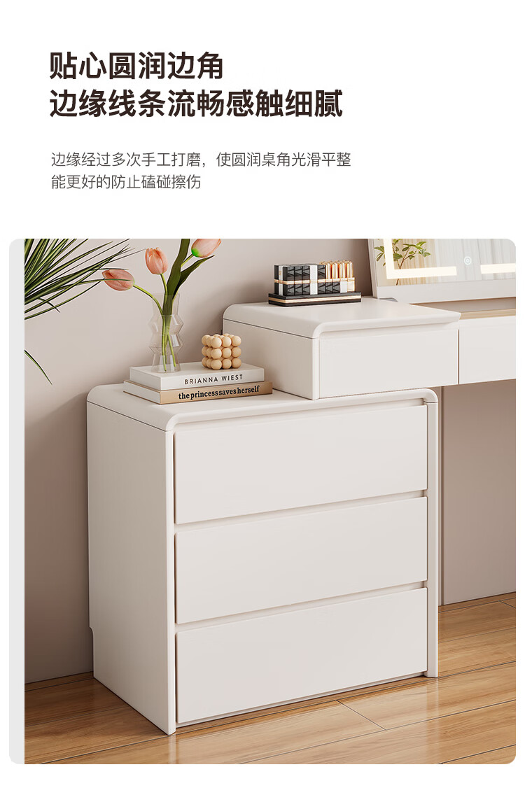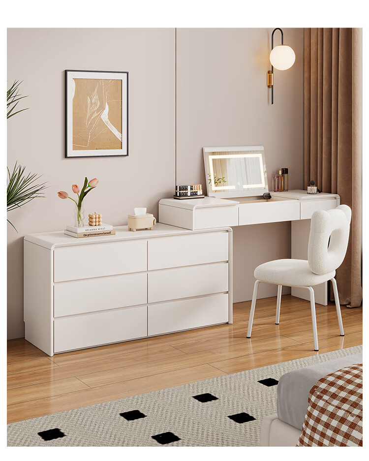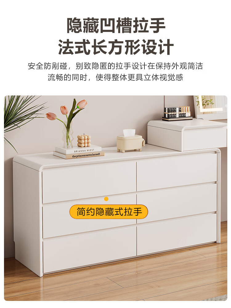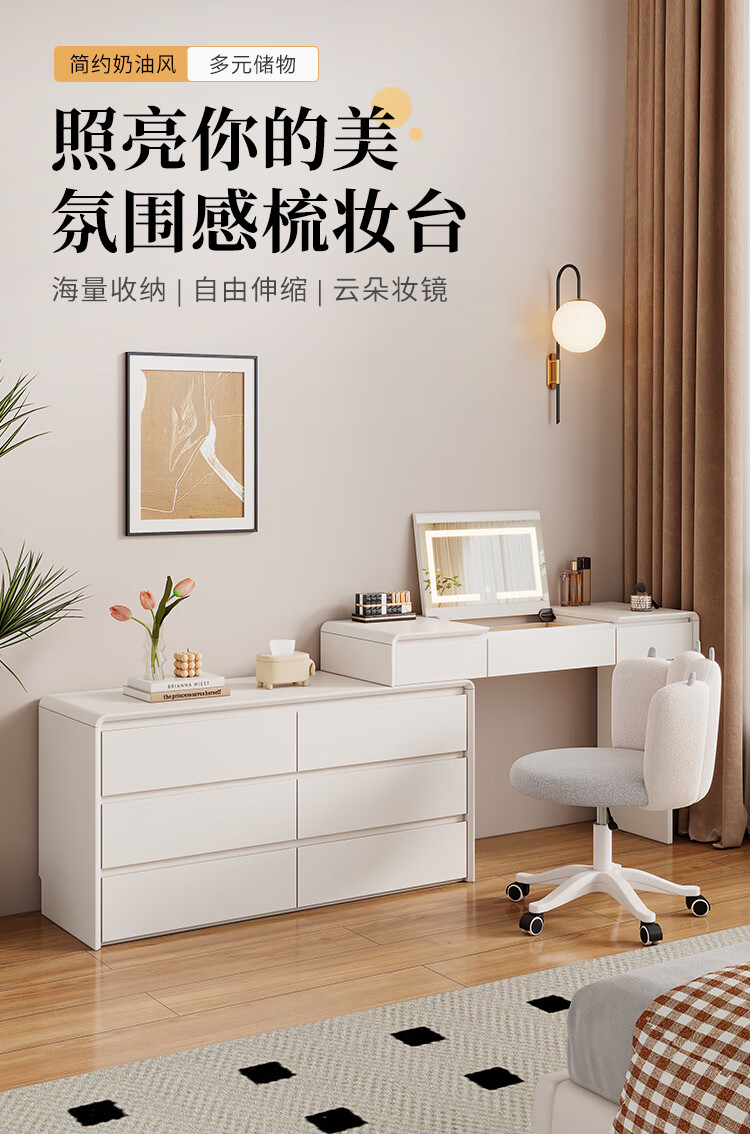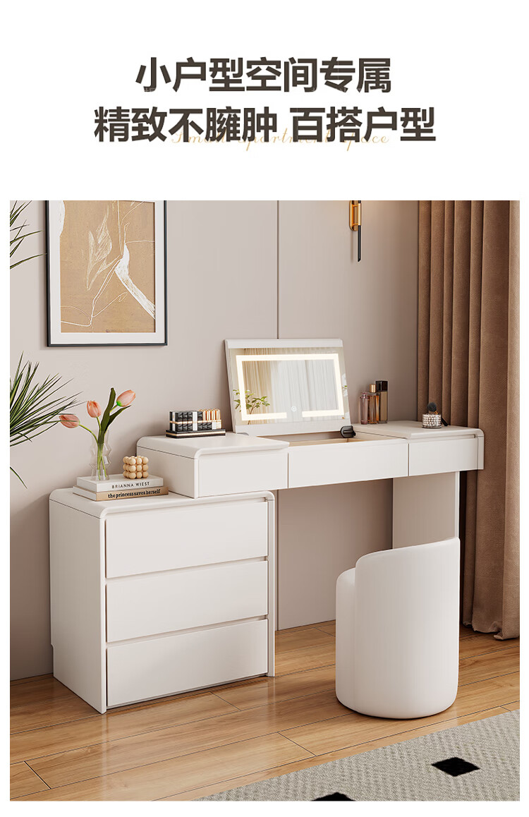 Shuchuan Cream Style Dressing Table Flip Drawer Cabinet Integrated Dressing Table Bedroom Retractable Bedside Storage Cabinet Solid Wood Dressing Table Cream White Flip Cover Dressing Table + Six Drawer Cabinet + Cat Claw Chair ENF Level Door-to-Door Package Installation