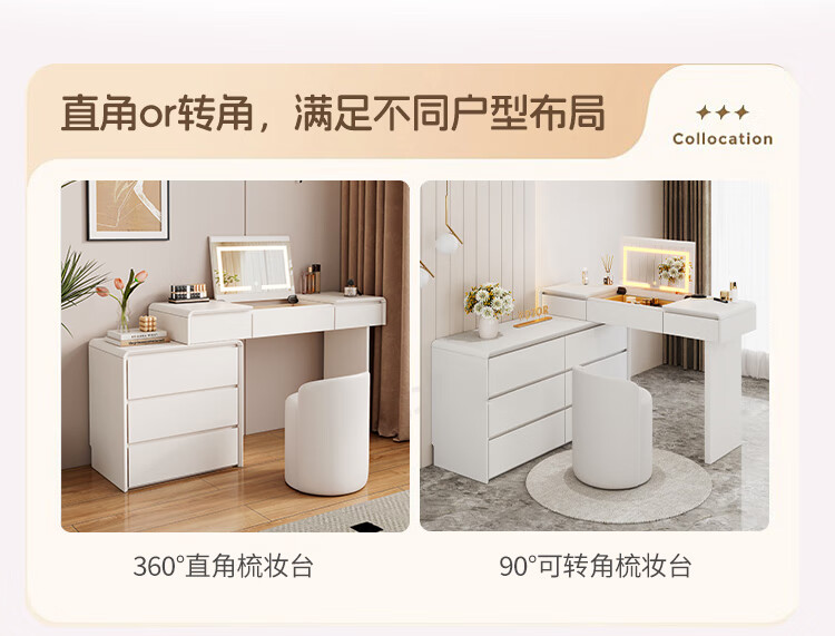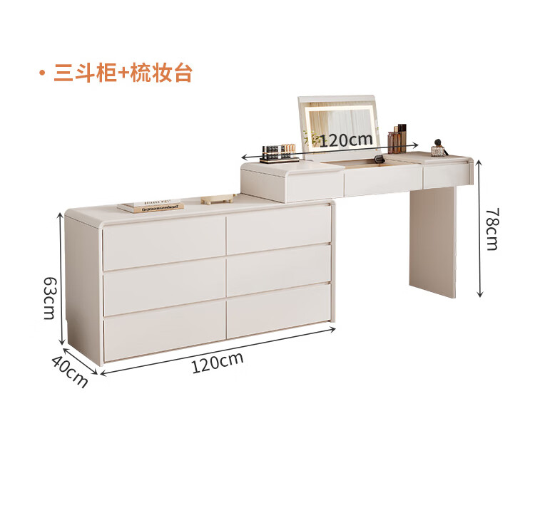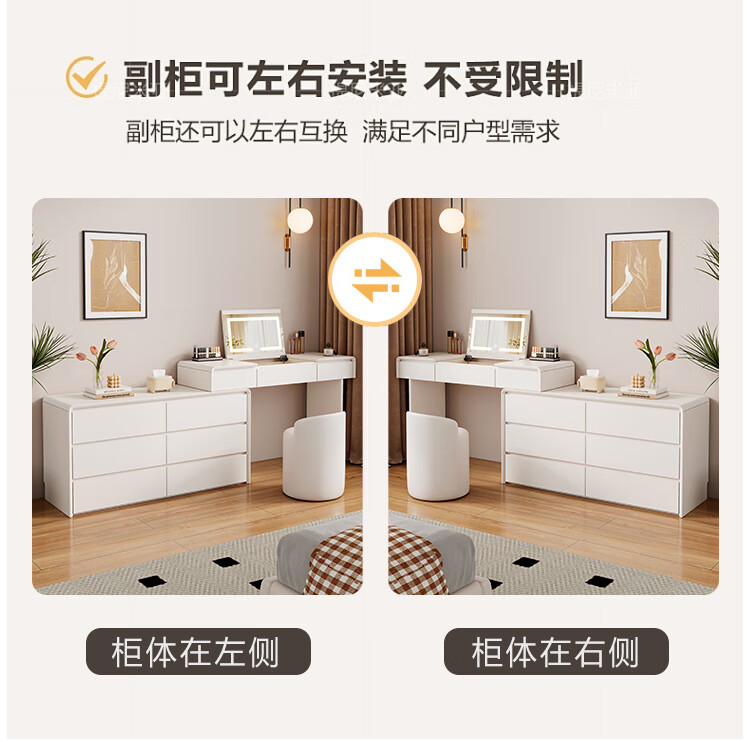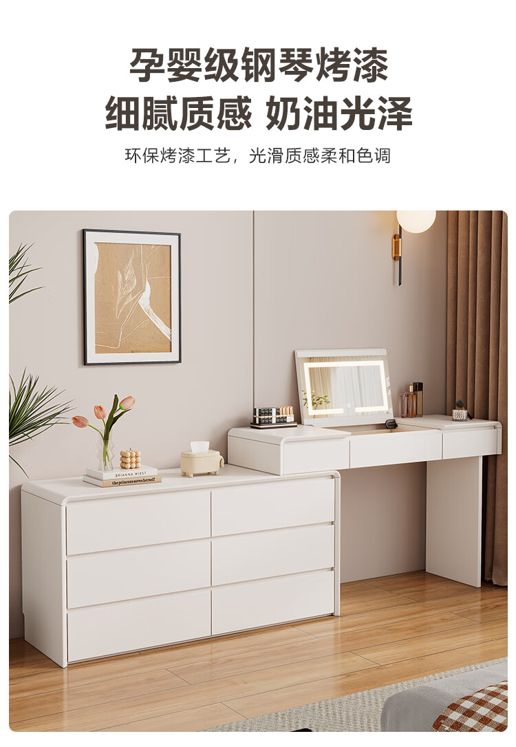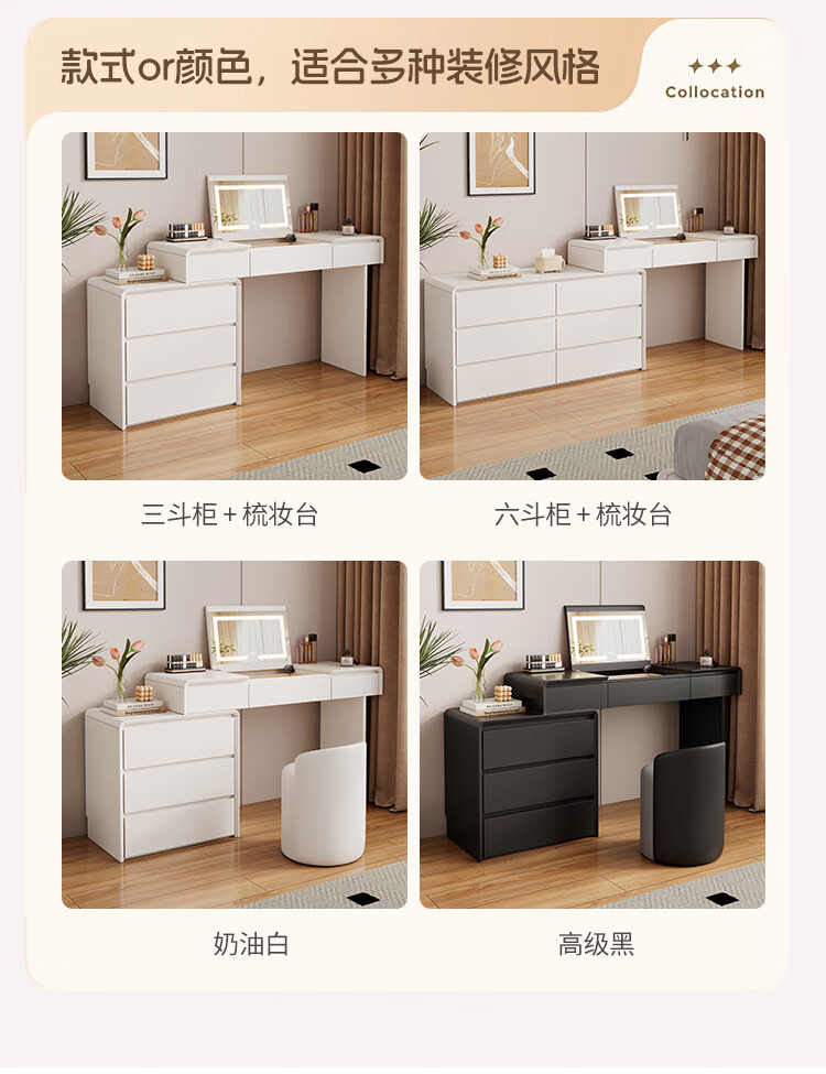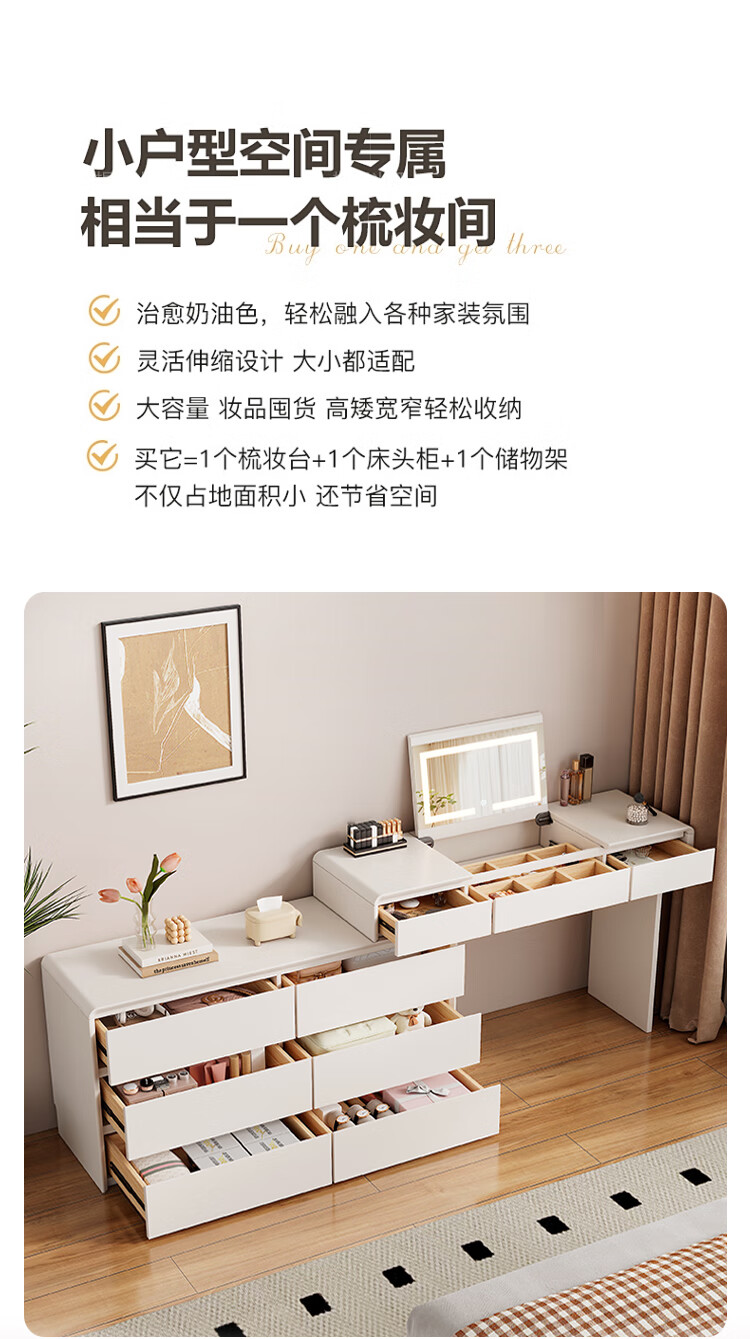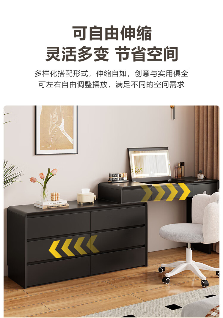 Shuchuan Cream Style Dressing Table Flip Drawer Cabinet Integrated Dressing Table Bedroom Retractable Bedside Storage Cabinet Solid Wood Dressing Table Cream White Flip Cover Dressing Table + Six Drawer Cabinet + Cat Claw Chair ENF Level Door-to-Door Package Installation