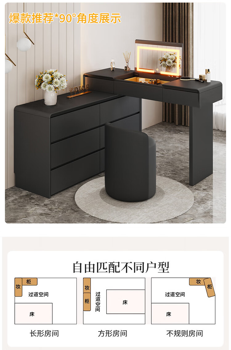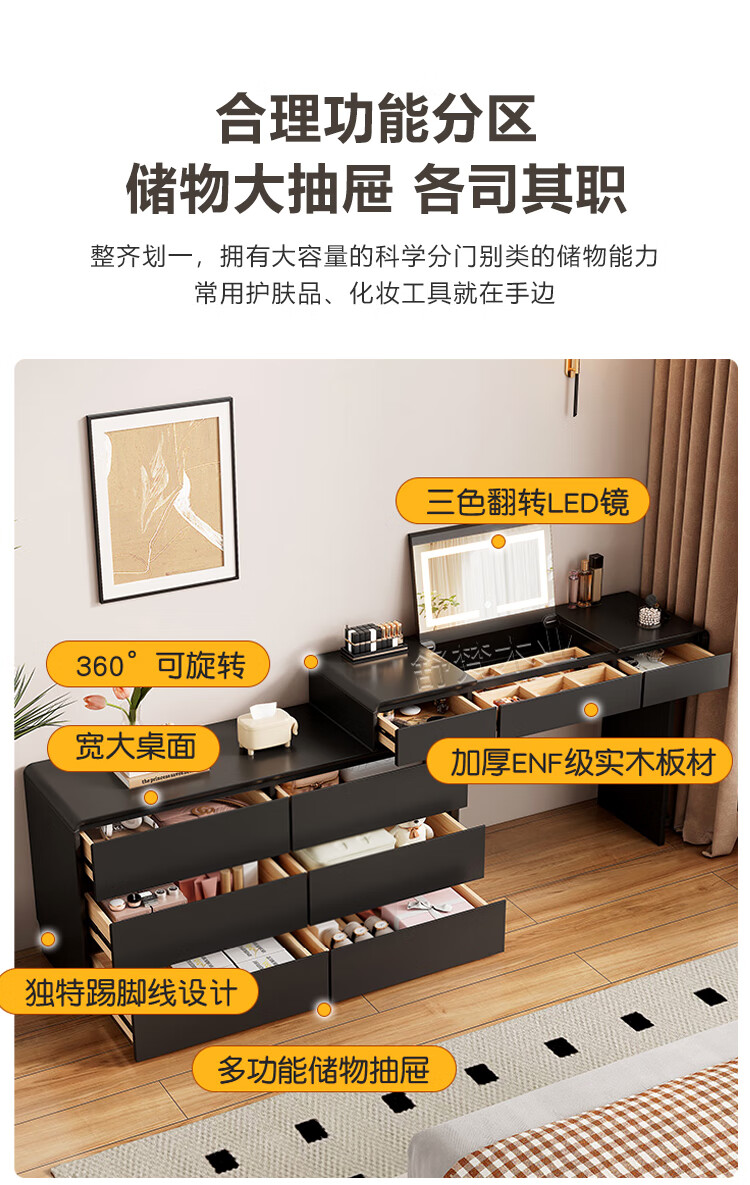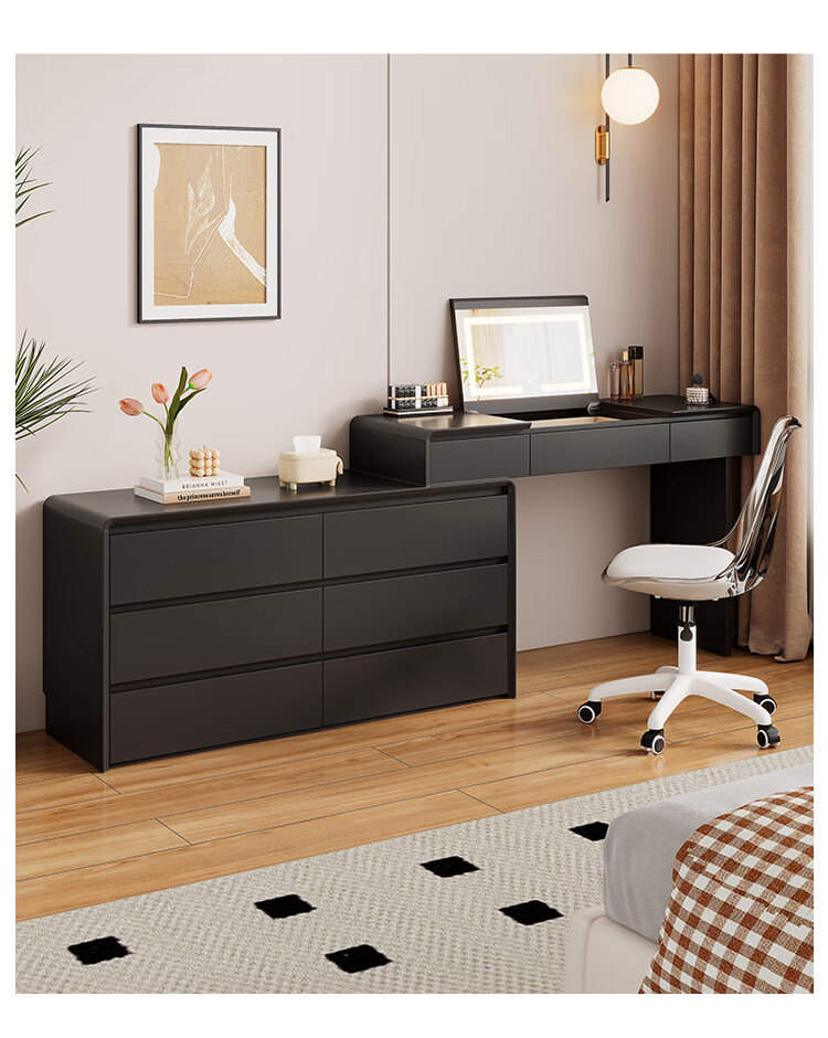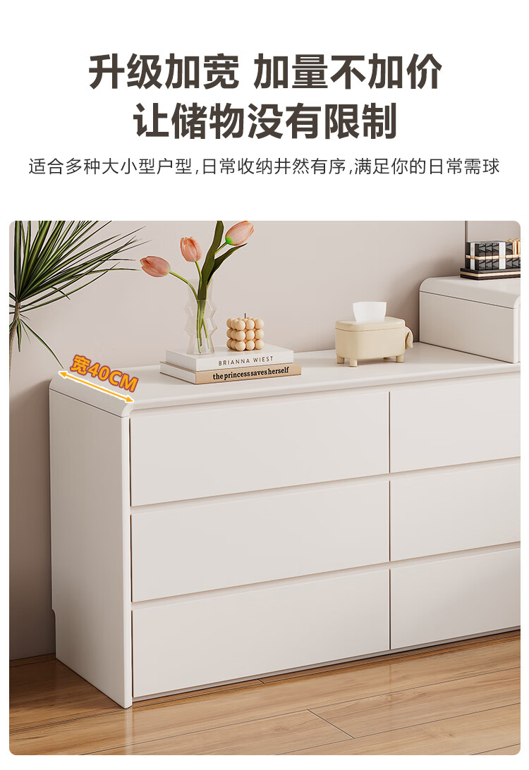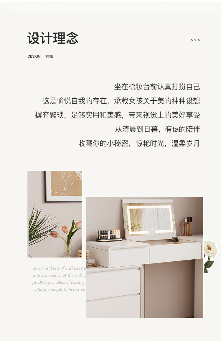 Shuchuan Cream Style Dressing Table Flip Drawer Cabinet Integrated Dressing Table Bedroom Retractable Bedside Storage Cabinet Solid Wood Dressing Table Cream White Flip Cover Dressing Table + Six Drawer Cabinet + Cat Claw Chair ENF Level Door-to-Door Package Installation