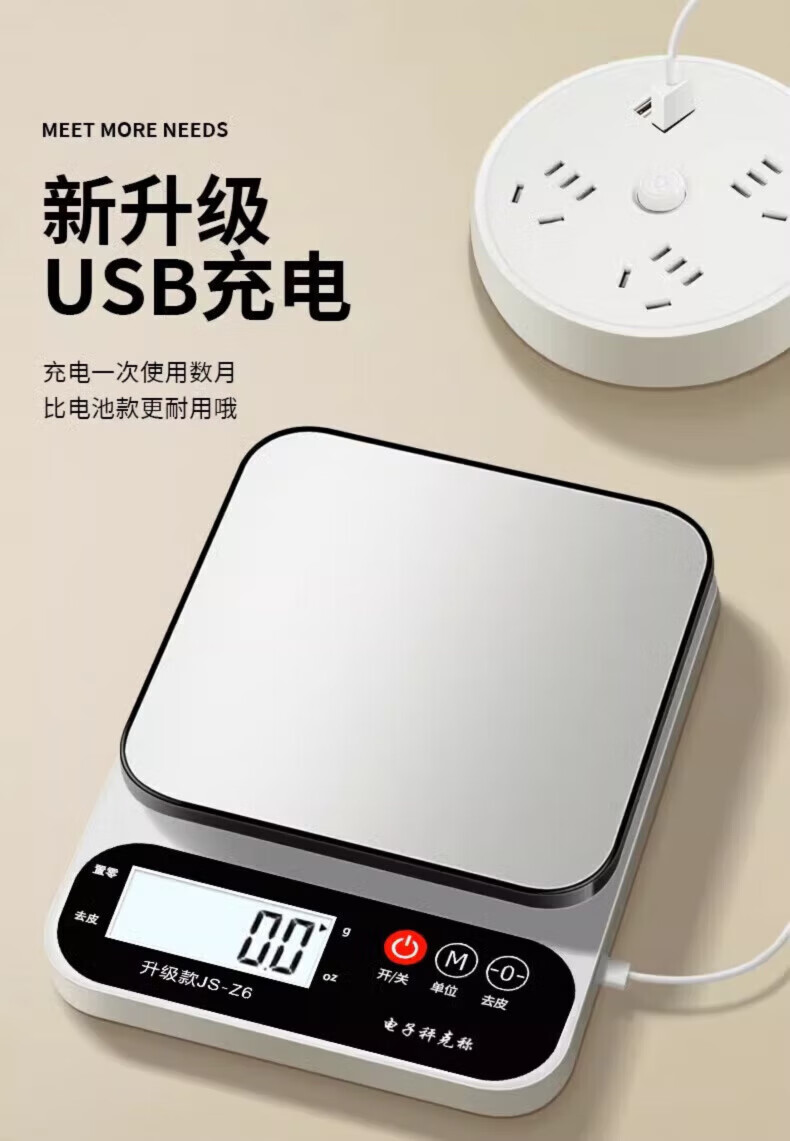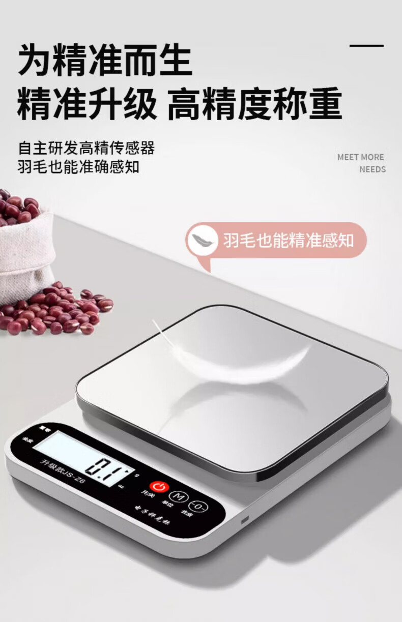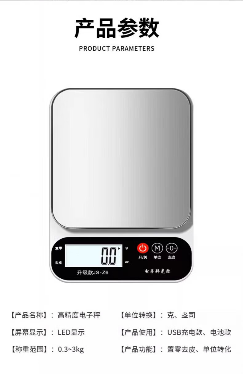 Jingyan household kitchen electronic scale small baking high-precision kitchen scale Chinese medicine food scale gram scale accurate to 0.1g stainless steel rechargeable model 3kg/0.1g real material strong and resistant to falling