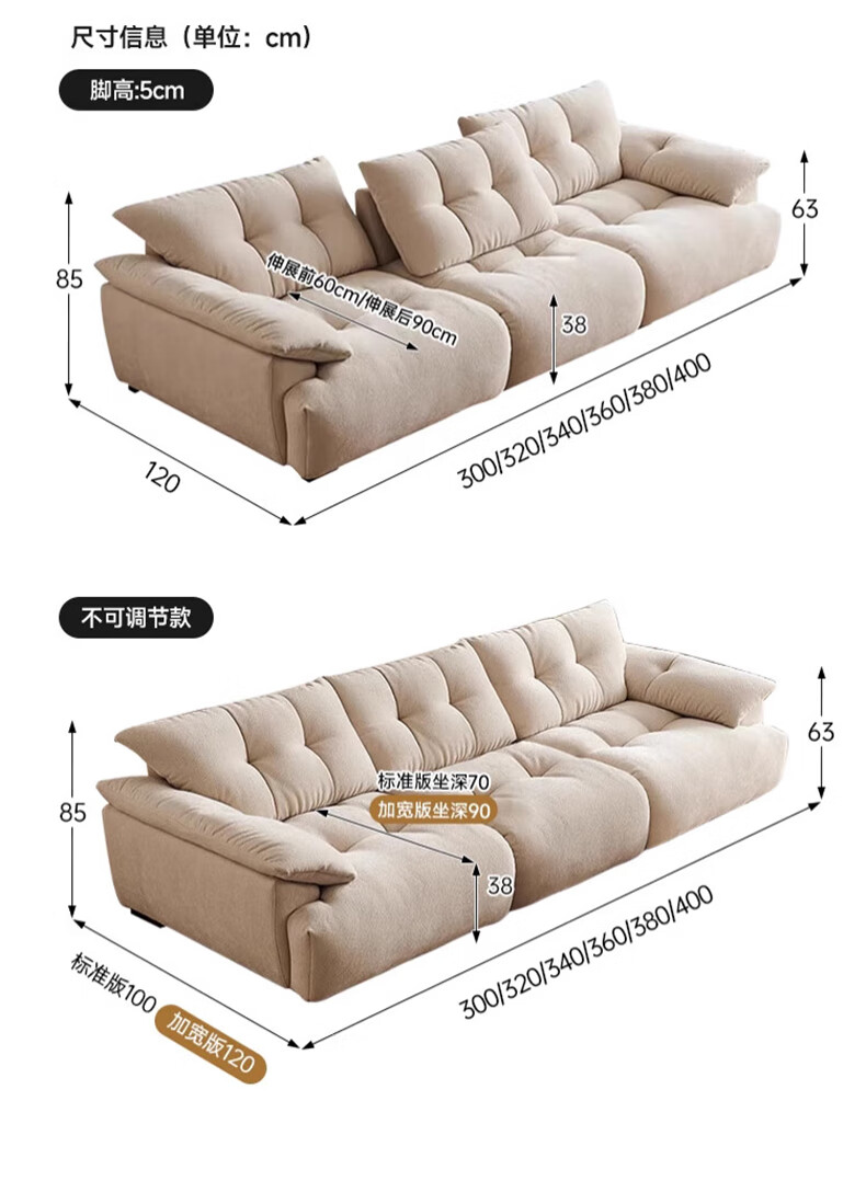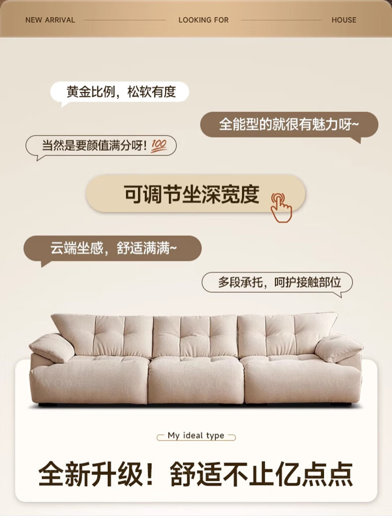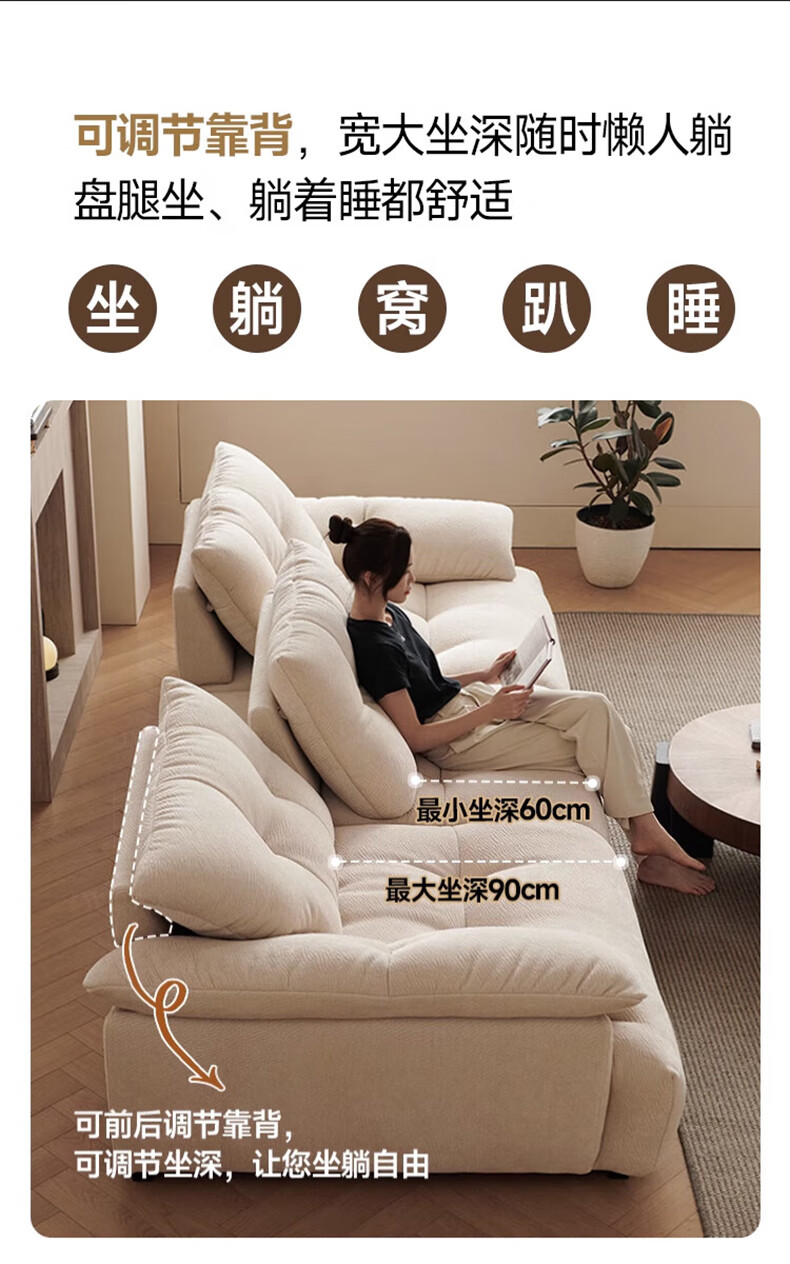 Gray National Subsidy Fabric Sofa Chenille Bud Sofa High Backrest Adjustable Seat Depth Removable and Washable Cloud Sofa Adjustable Seat Depth 3.0 Meters Large Five-Seater (Removable and Washable) Comfort Version Imported from Belgium Chenille Velvet - Latex + Sponge