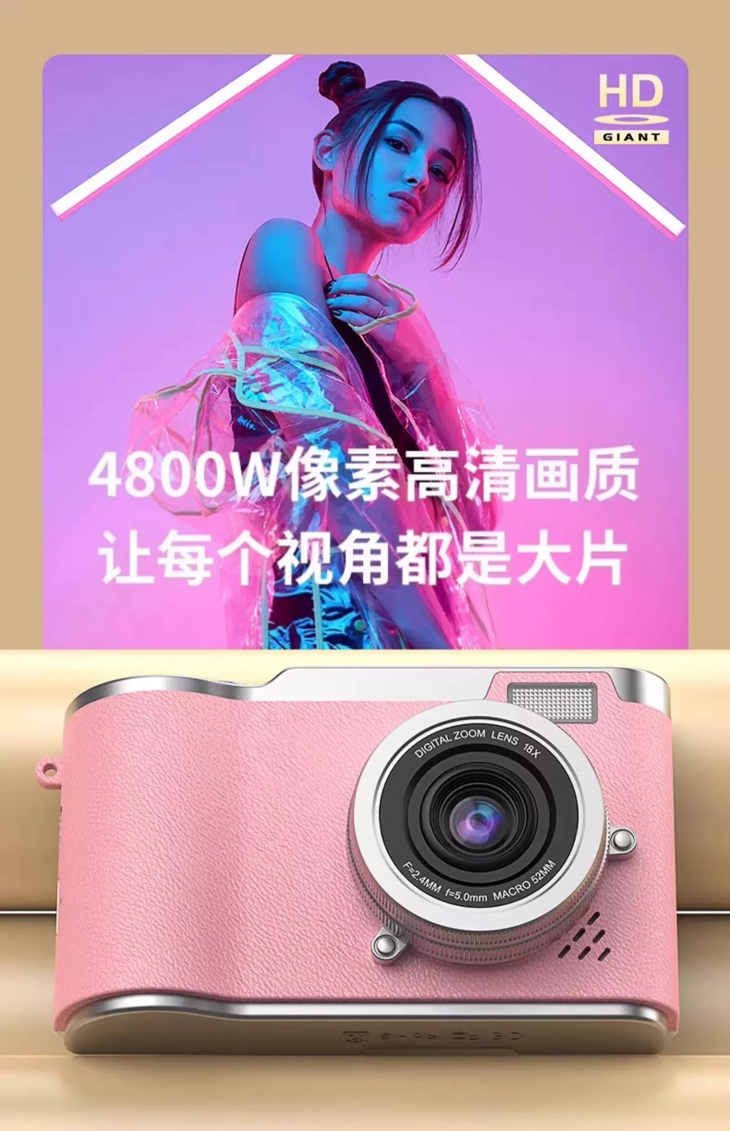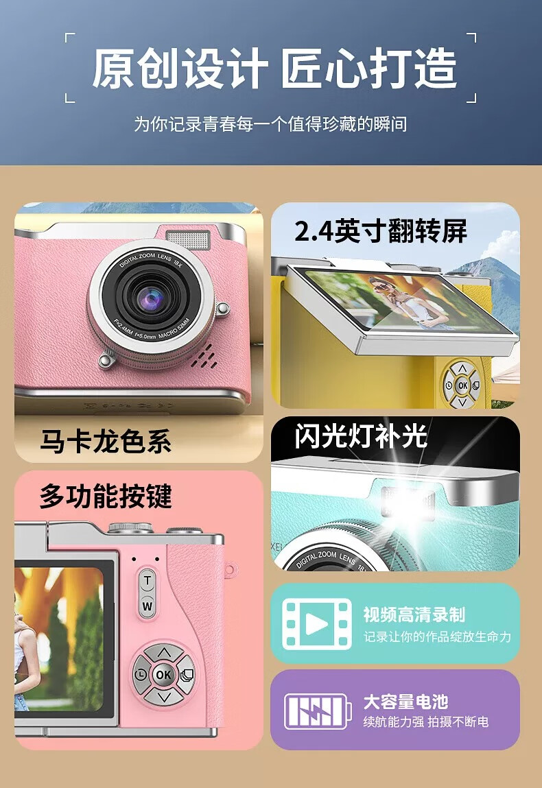 Flip screen CCD student entry-level digital camera Hello kitty digital camera for girlfriend Valentine's Day and New Year Flip cover white 128g + birthday gift box gift bag